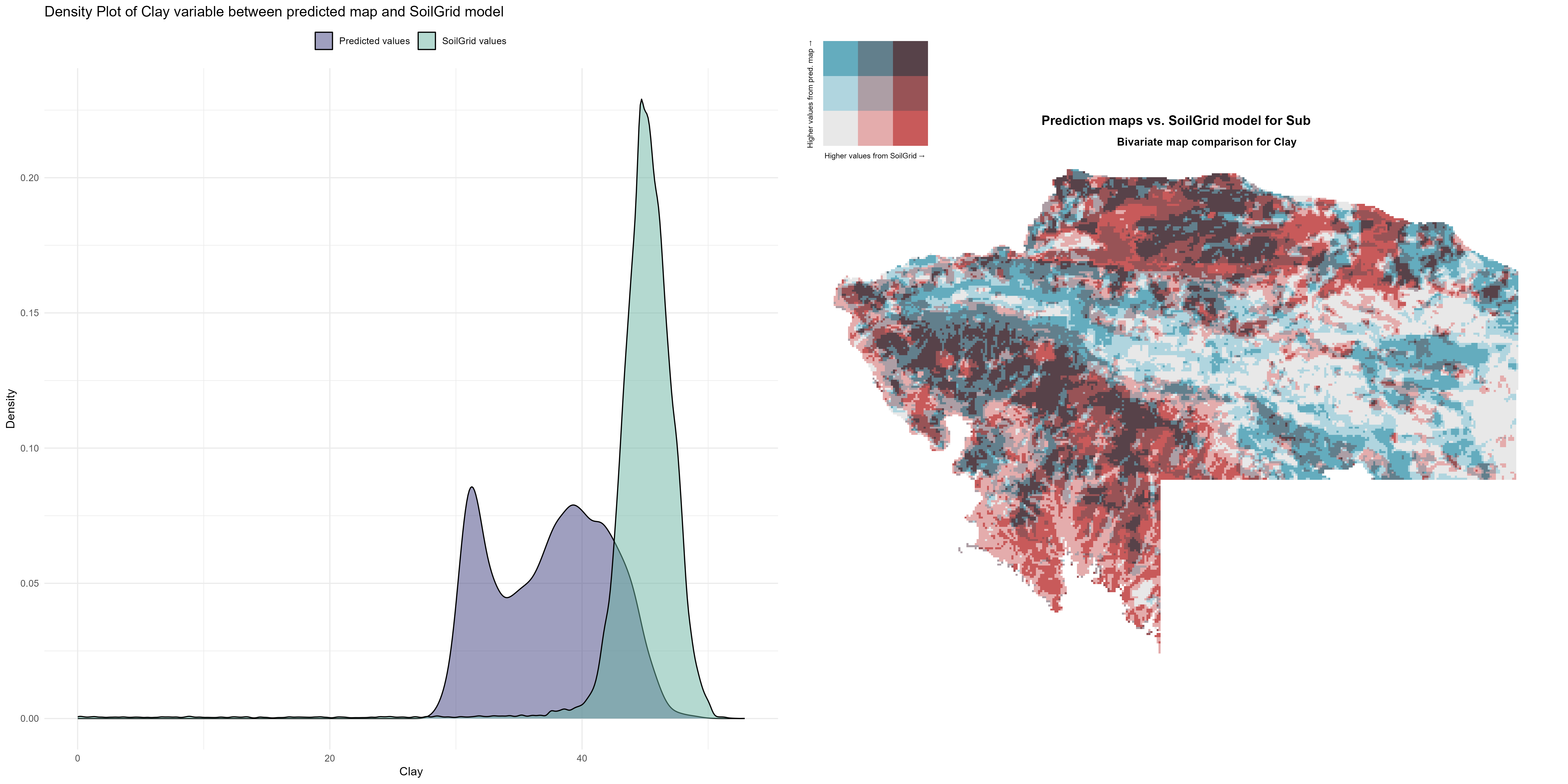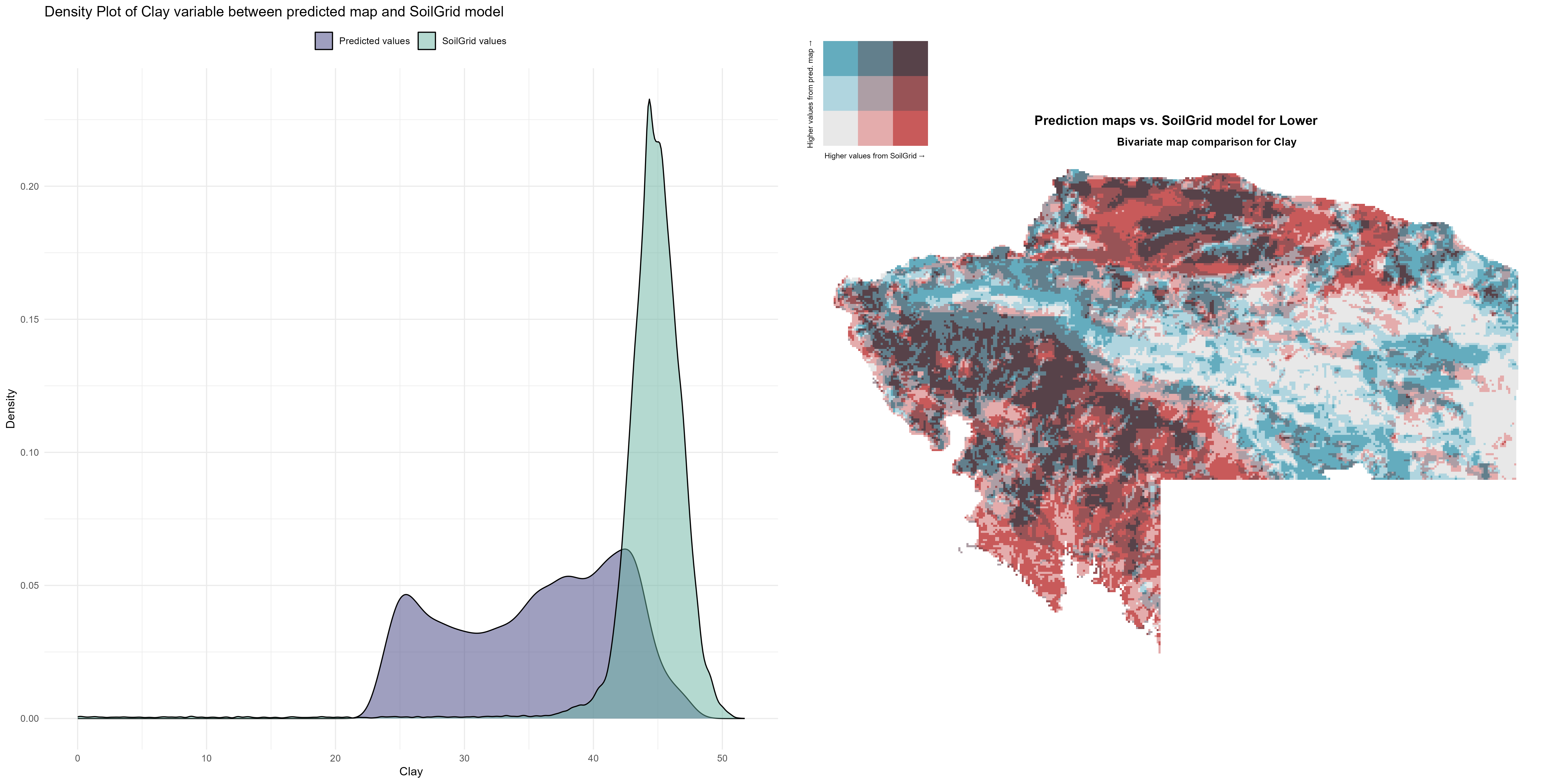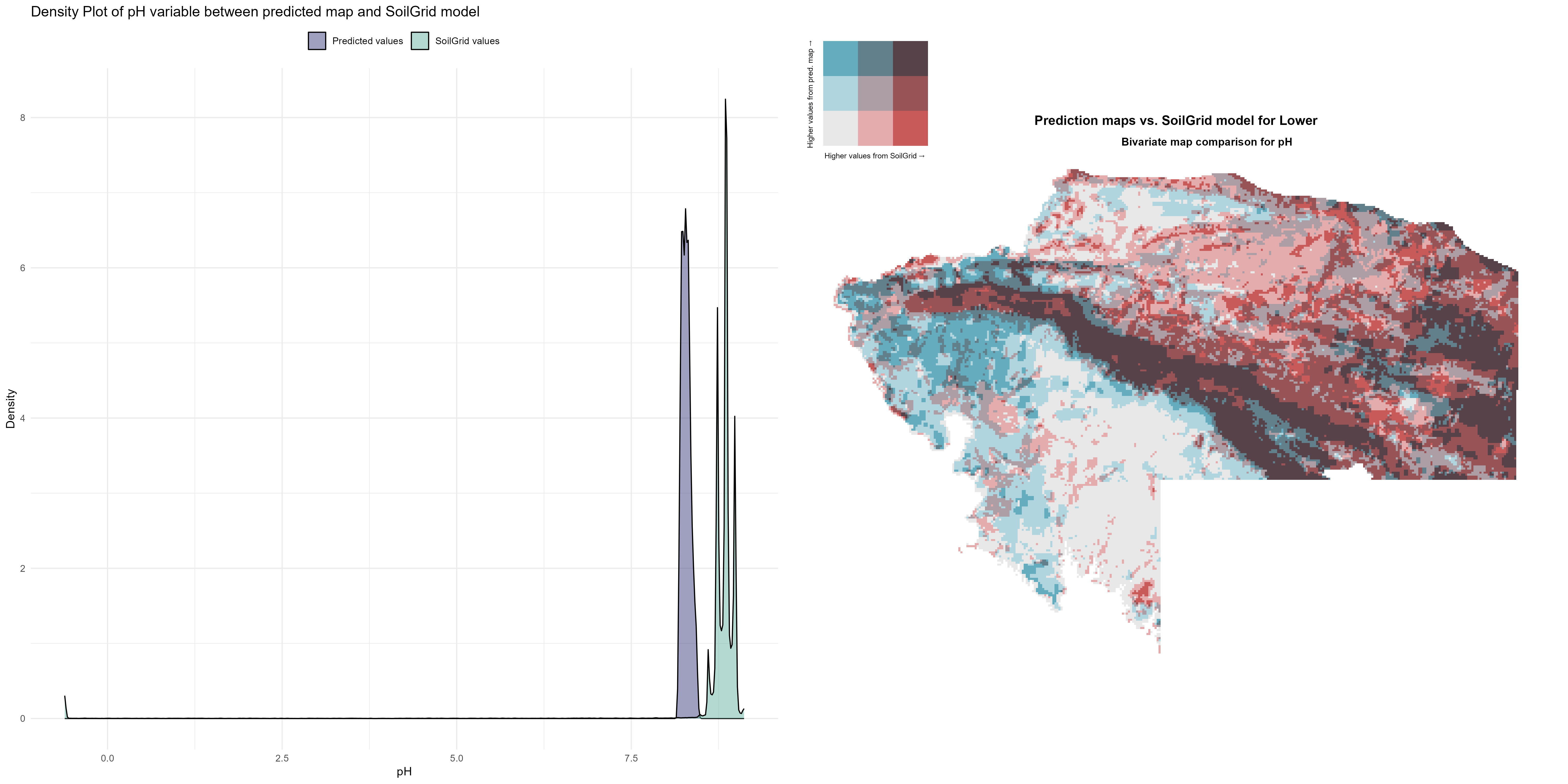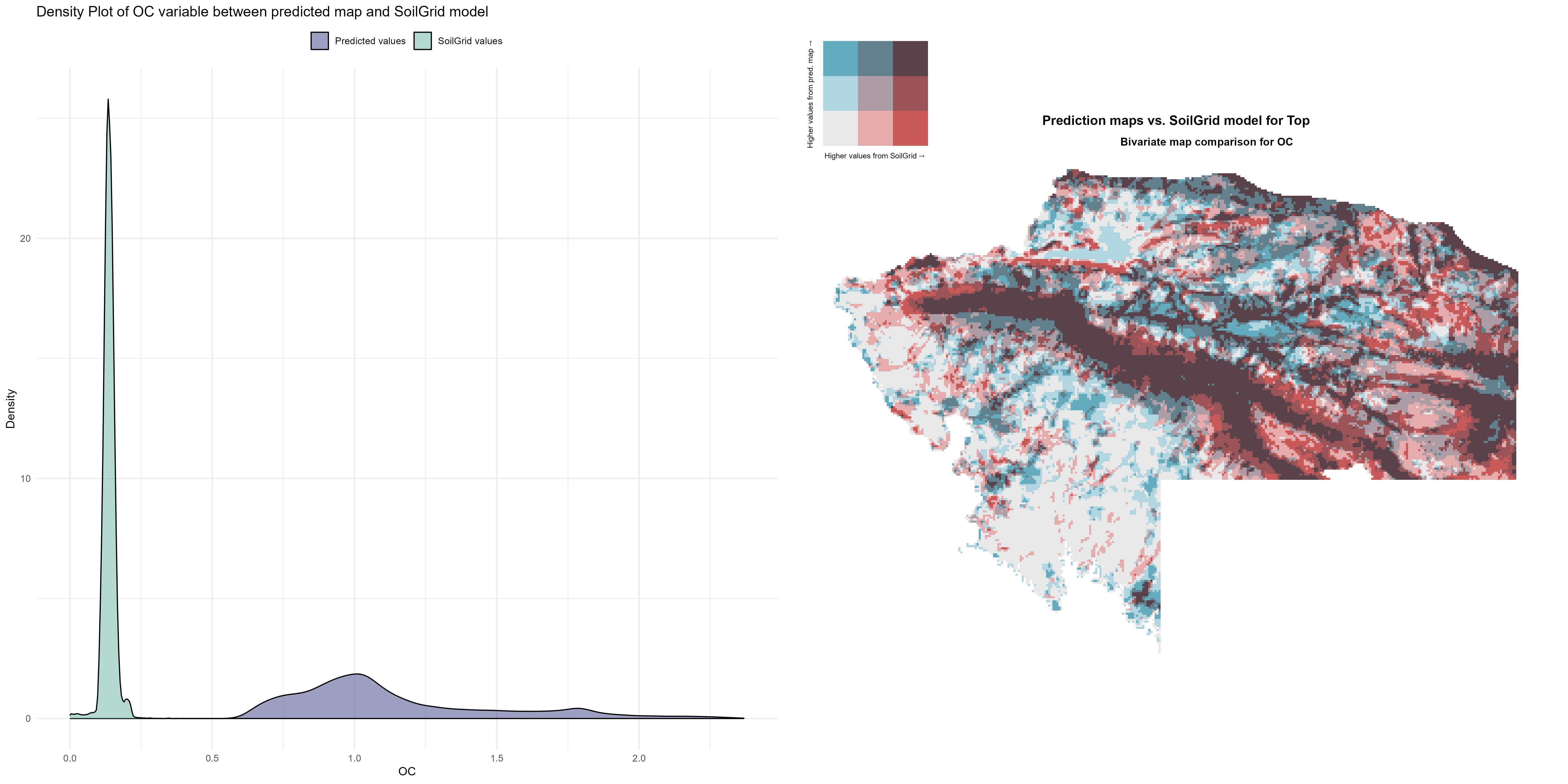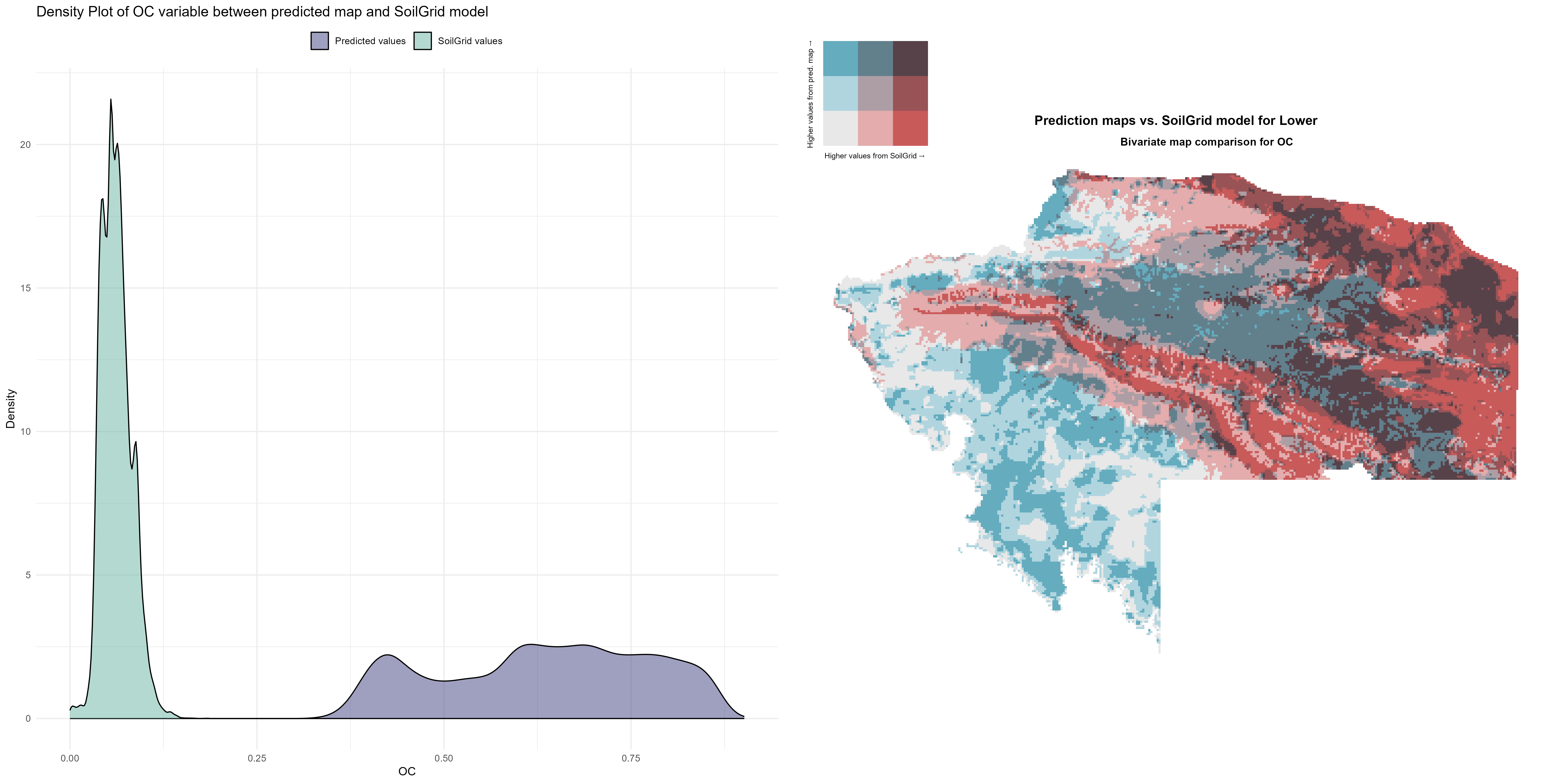 top = textGrob("Bivariate maps of predicted vs. SoilGrid values", gp = gpar(fontsize = 10, fontface = "bold")))