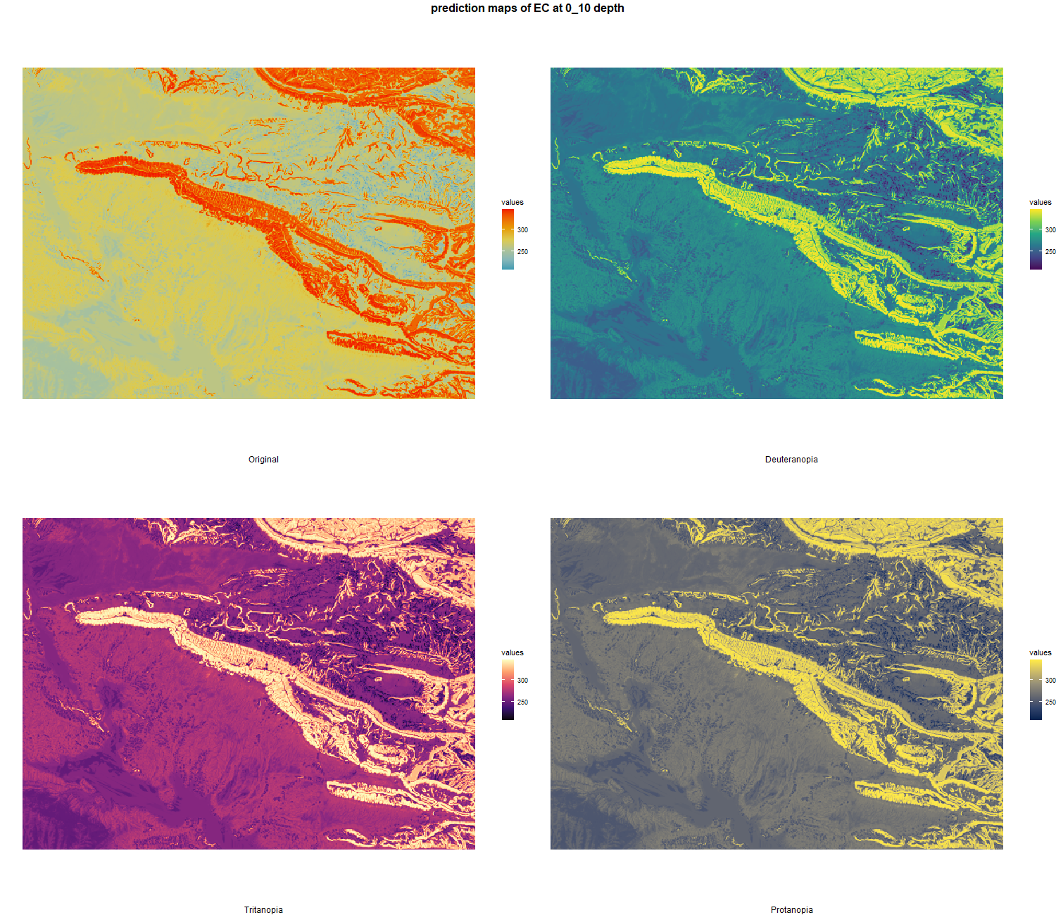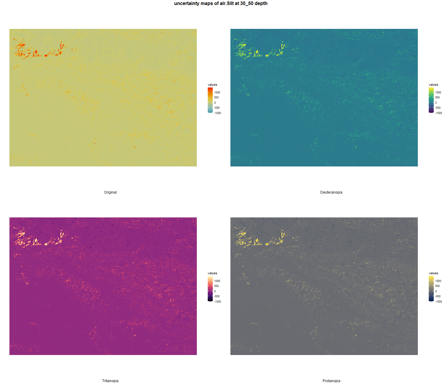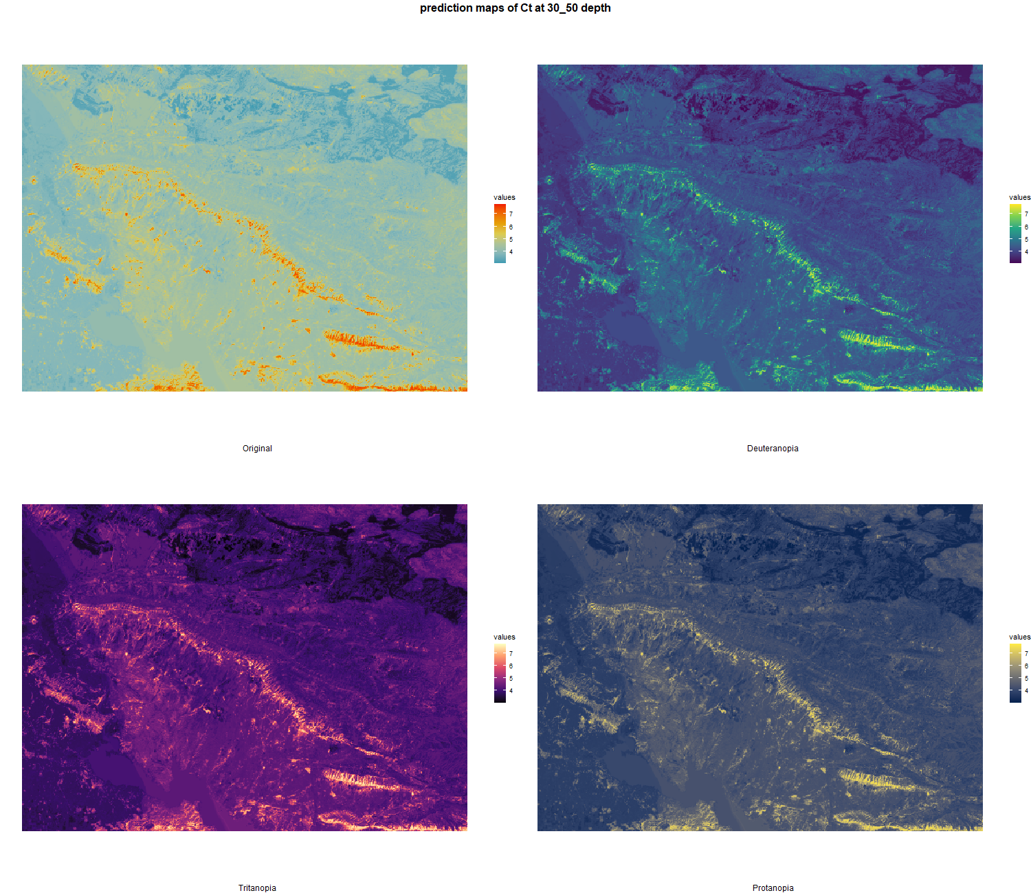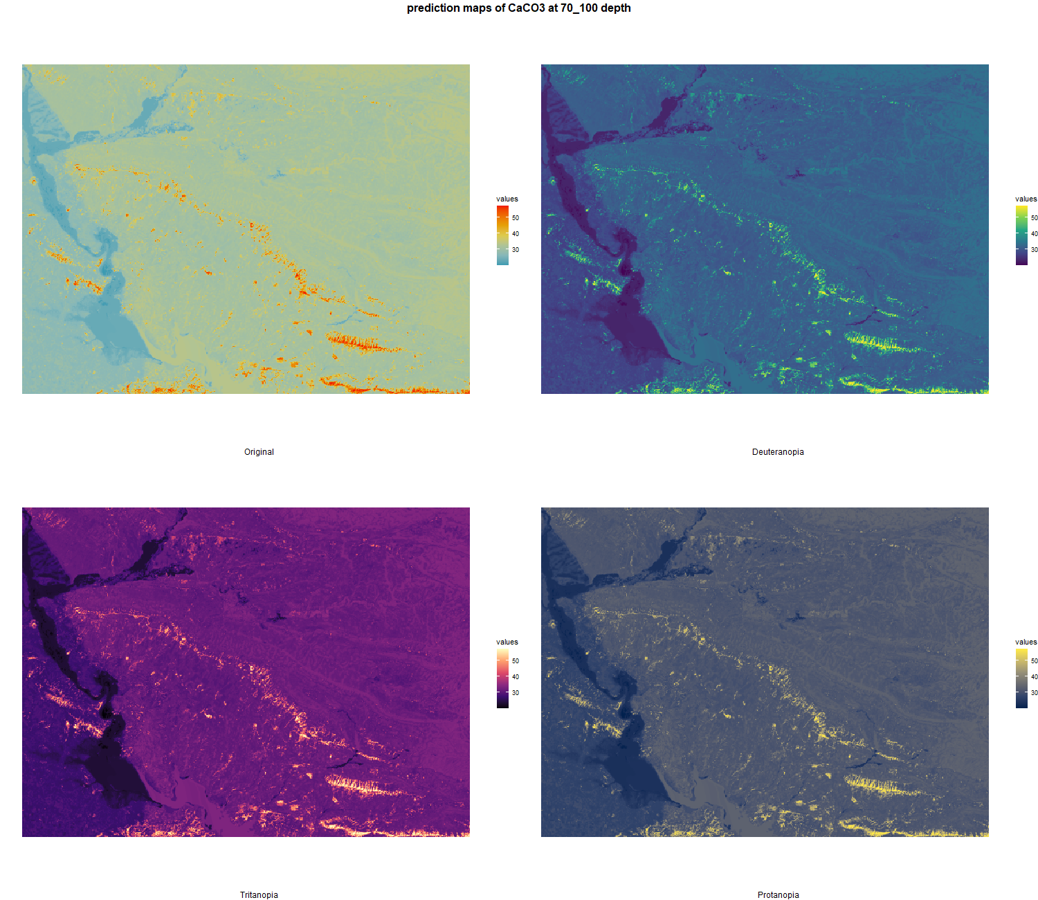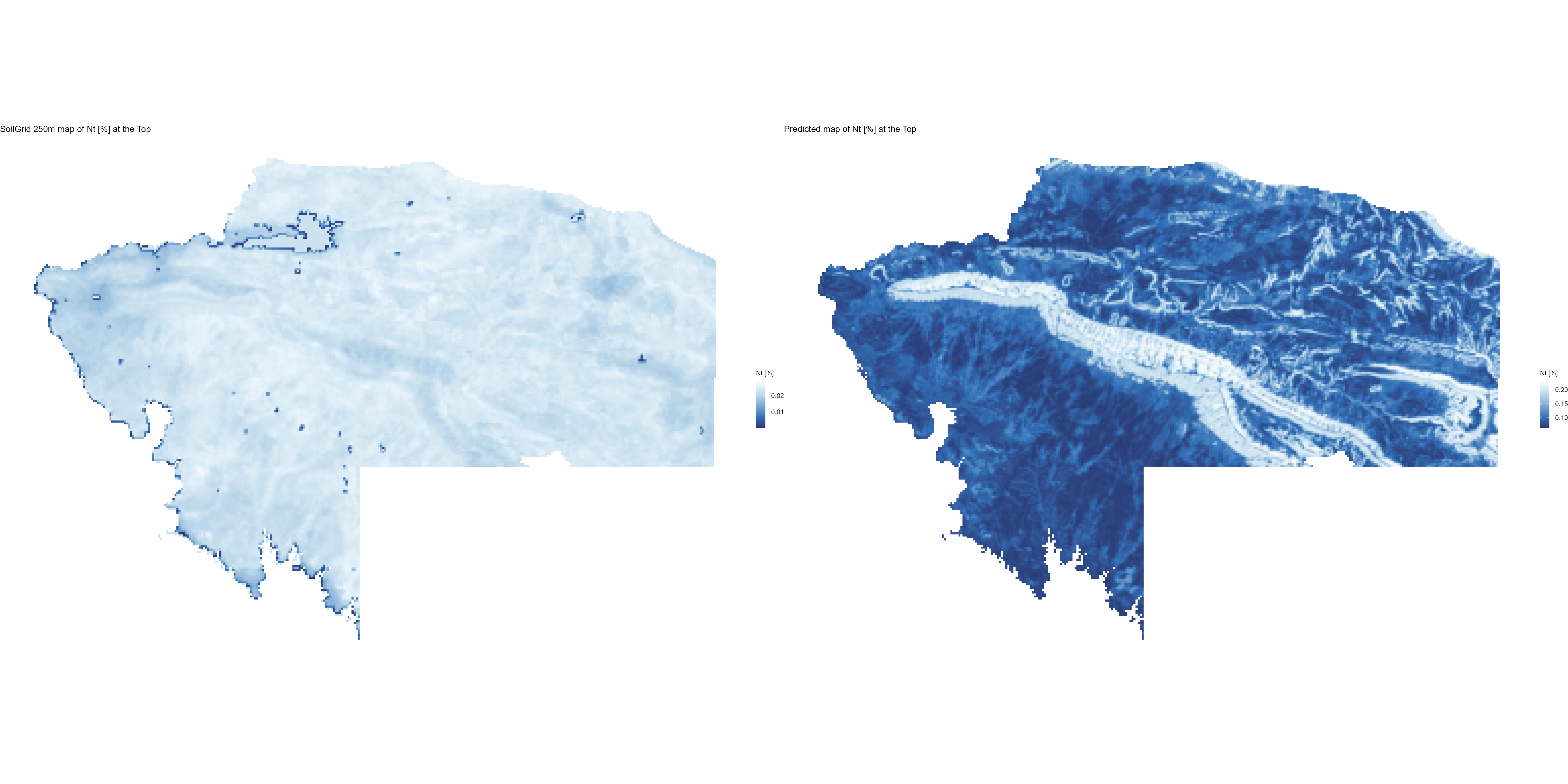 top = textGrob("Bivariate maps of predicted vs. SoilGrid values", gp = gpar(fontsize = 10, fontface = "bold")))