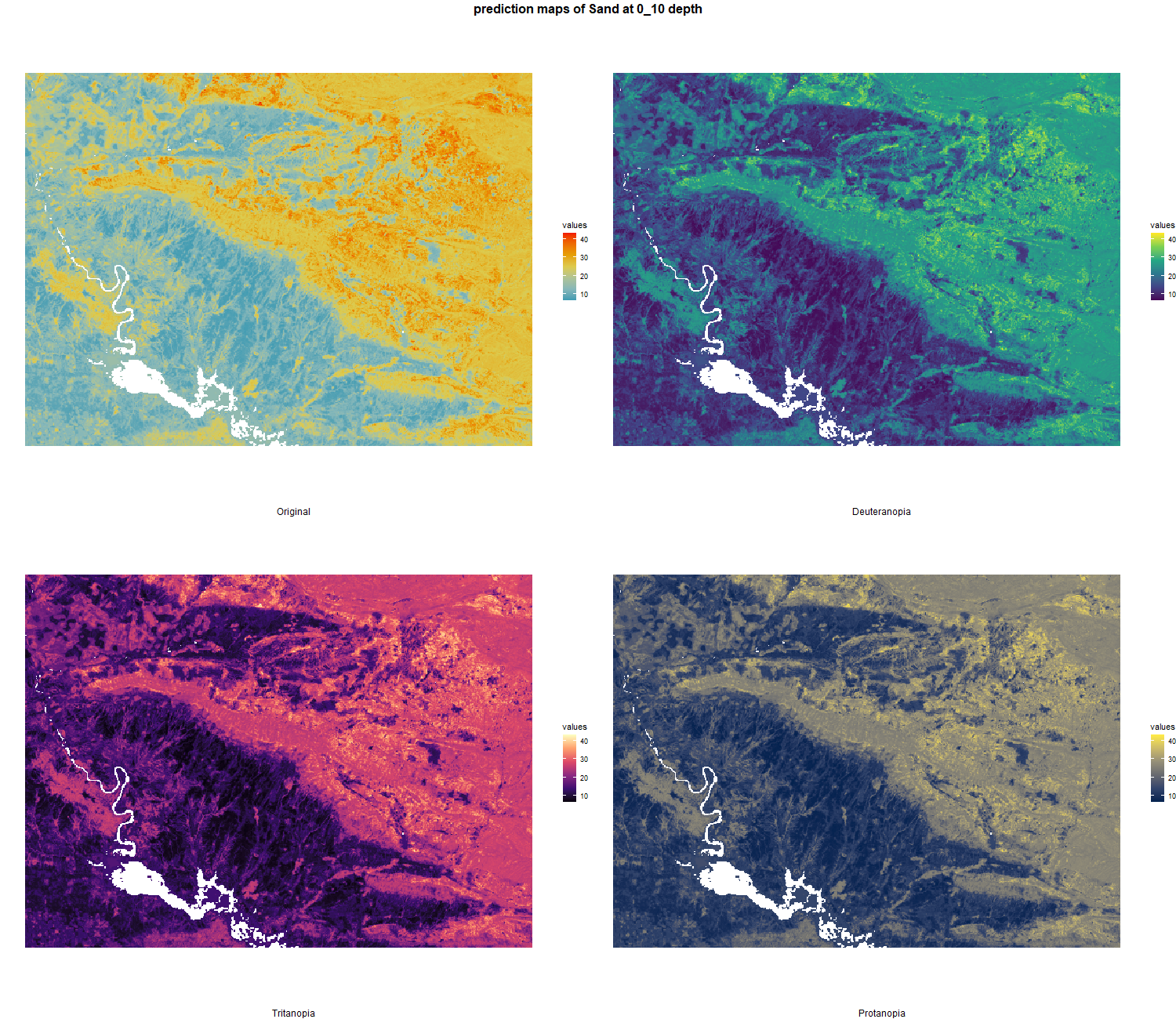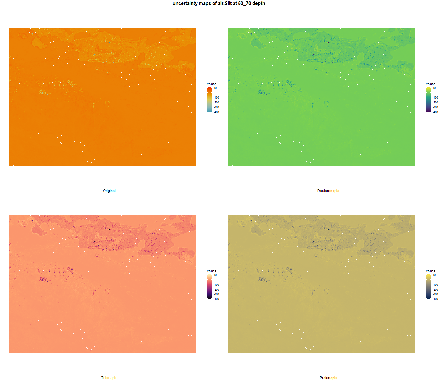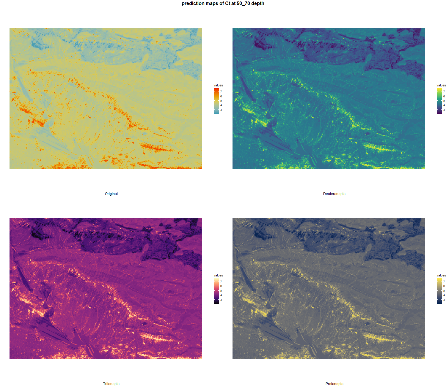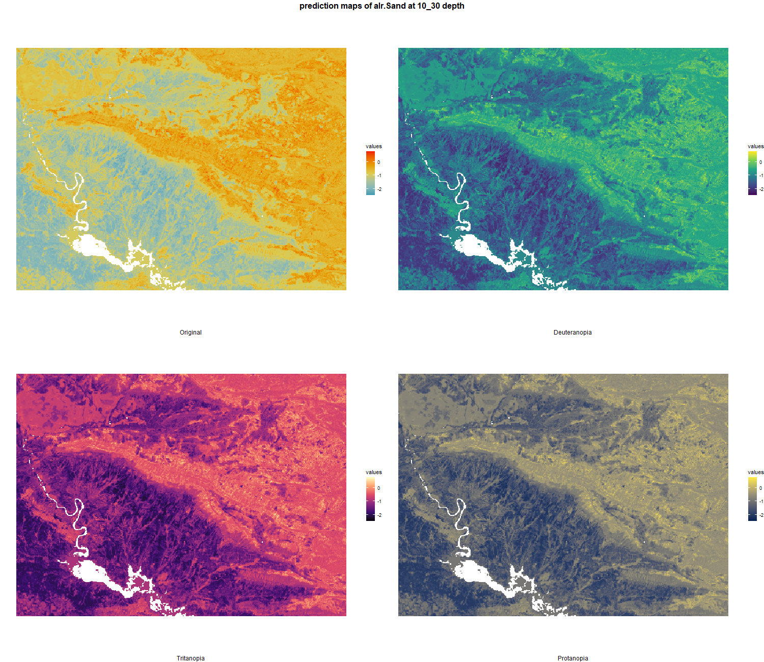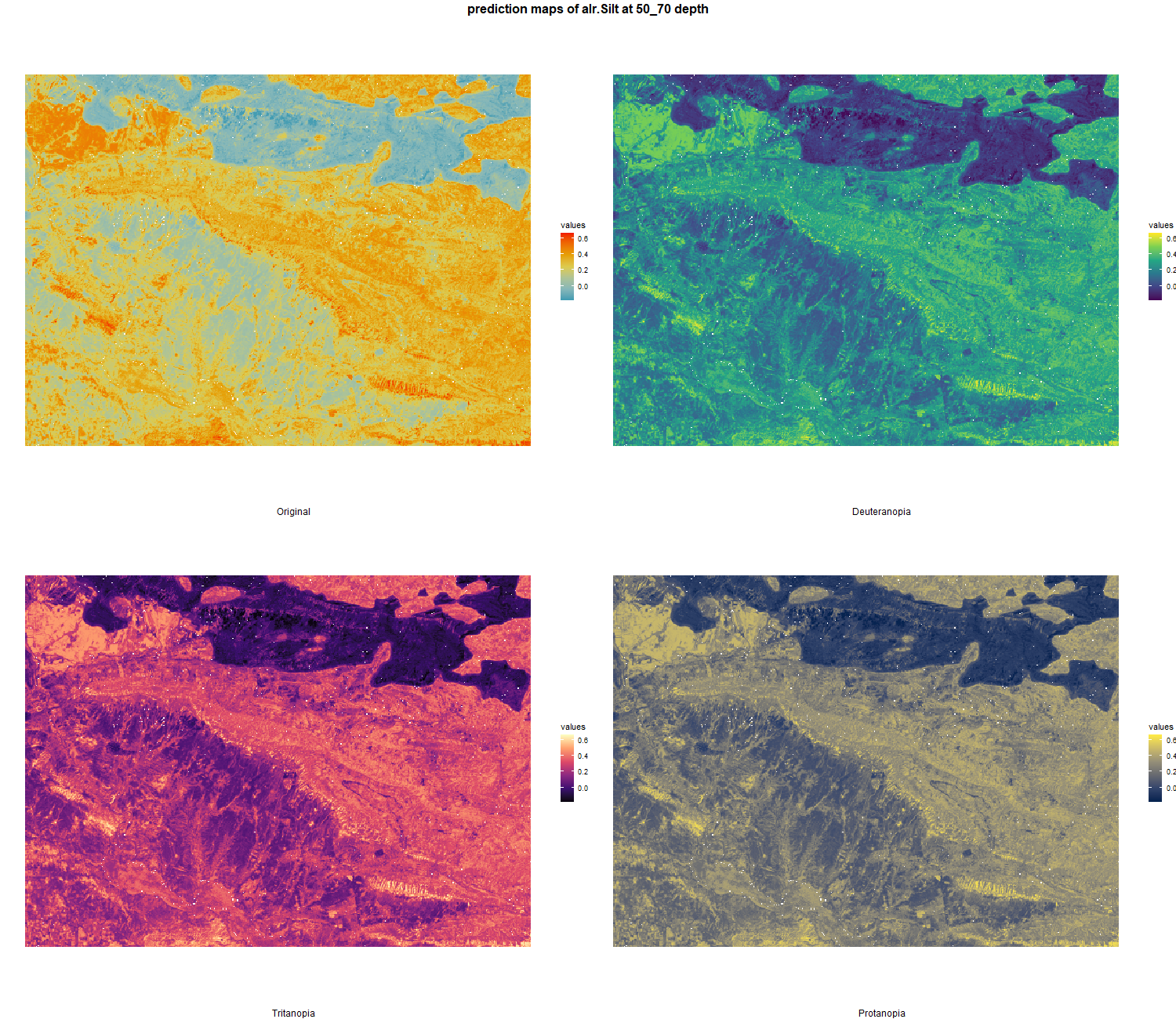 top = textGrob("Bivariate maps of predicted vs. SoilGrid values", gp = gpar(fontsize = 10, fontface = "bold")))