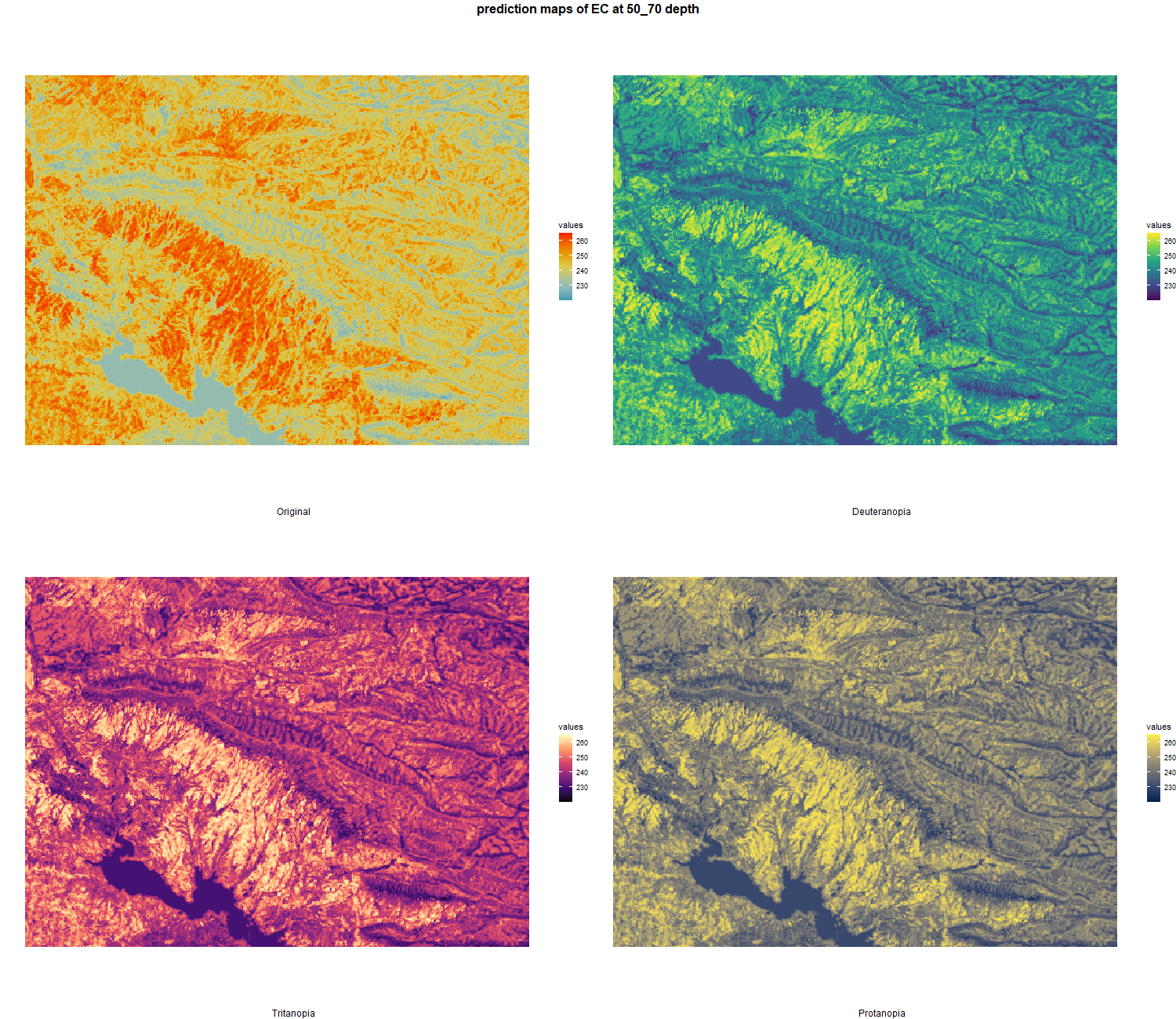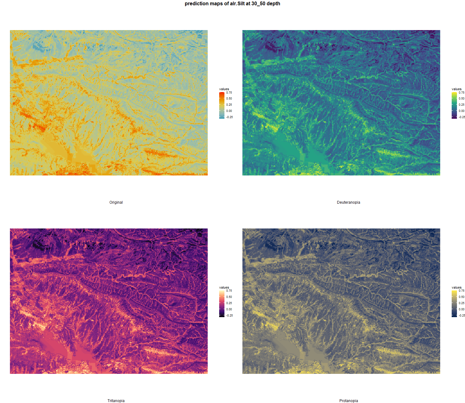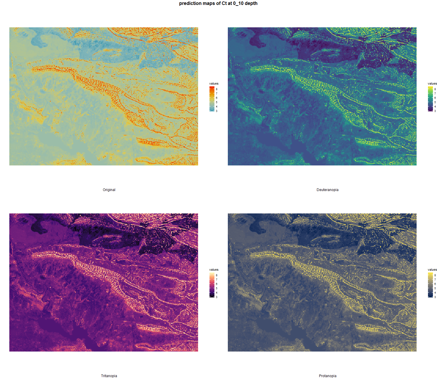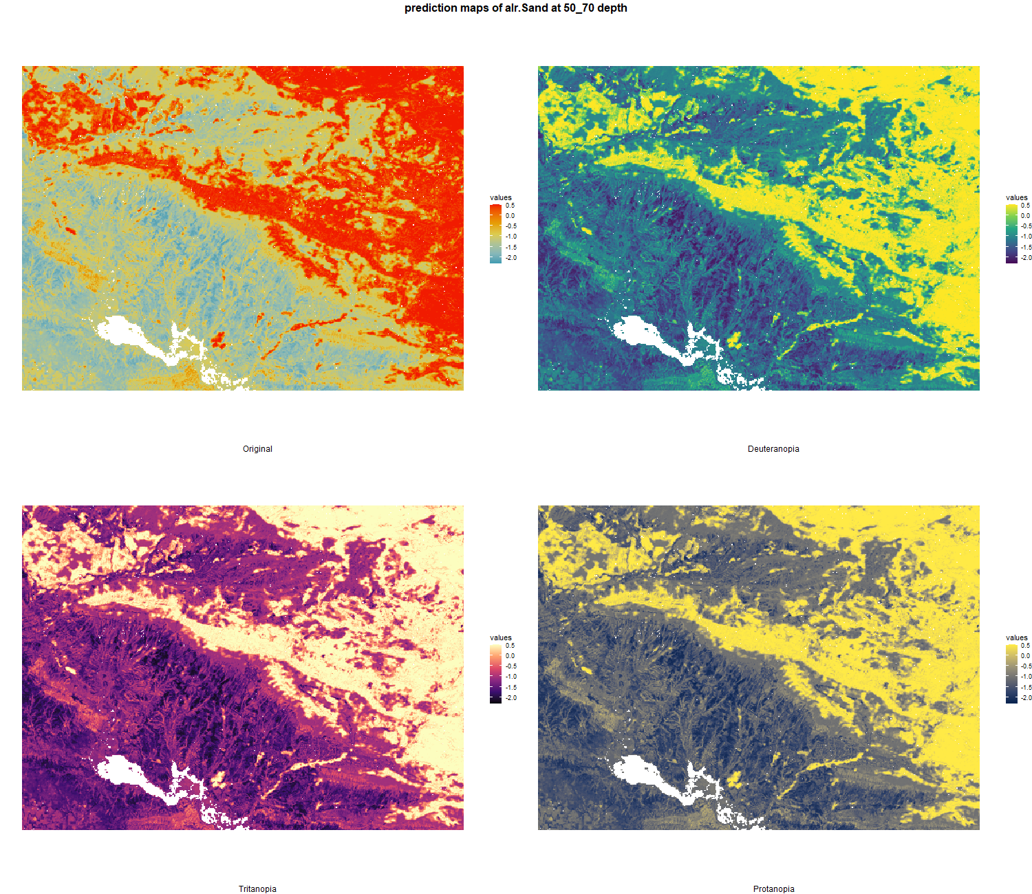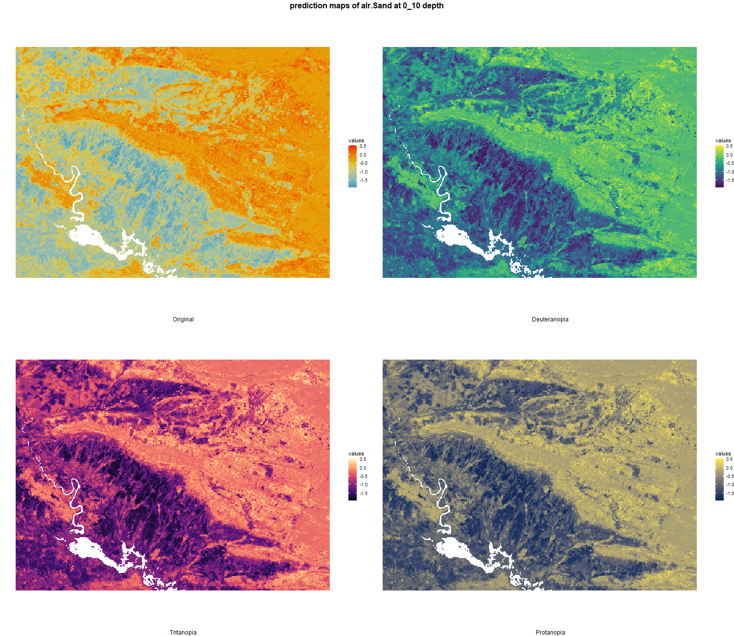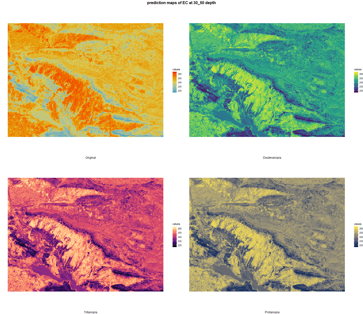 top = textGrob("Bivariate maps of predicted vs. SoilGrid values", gp = gpar(fontsize = 10, fontface = "bold")))