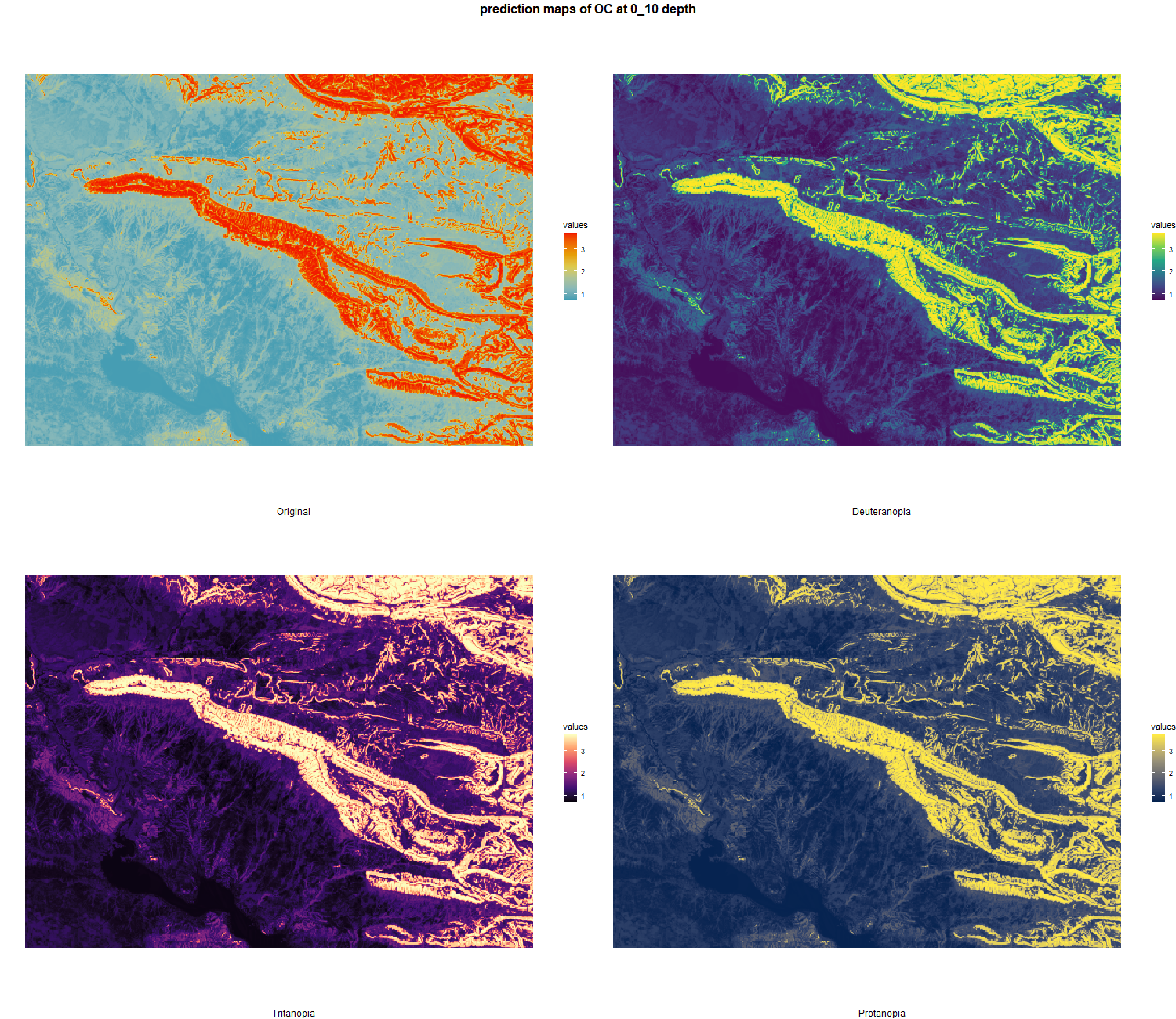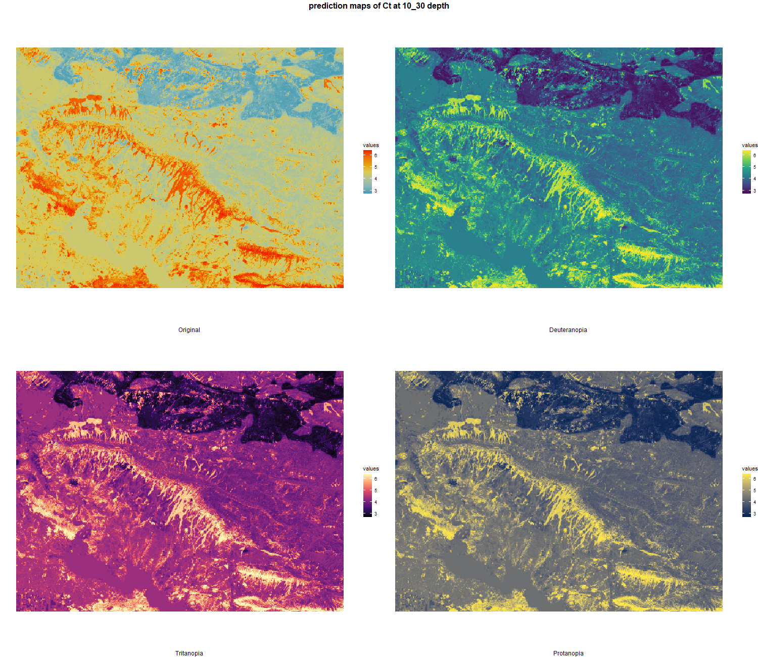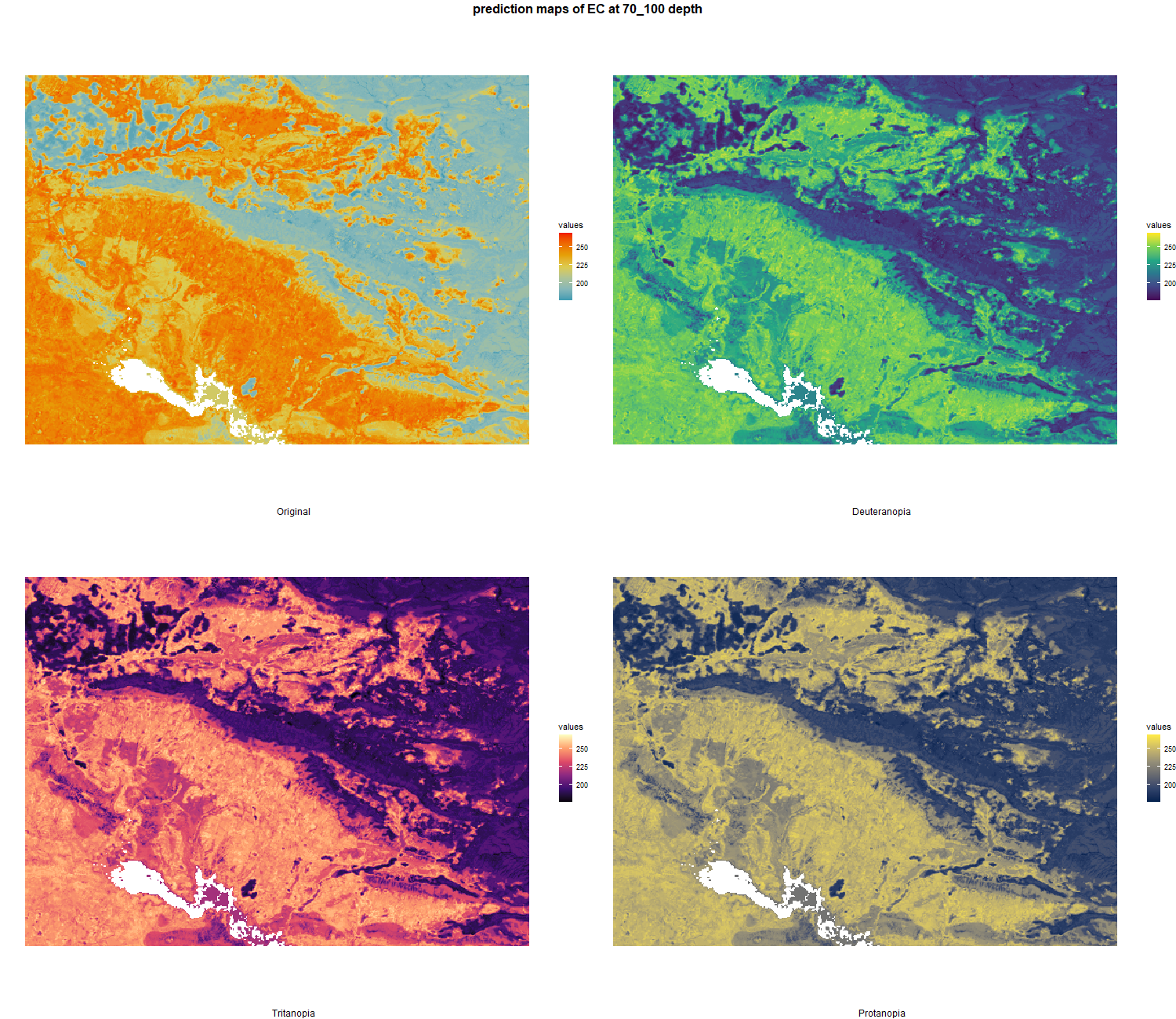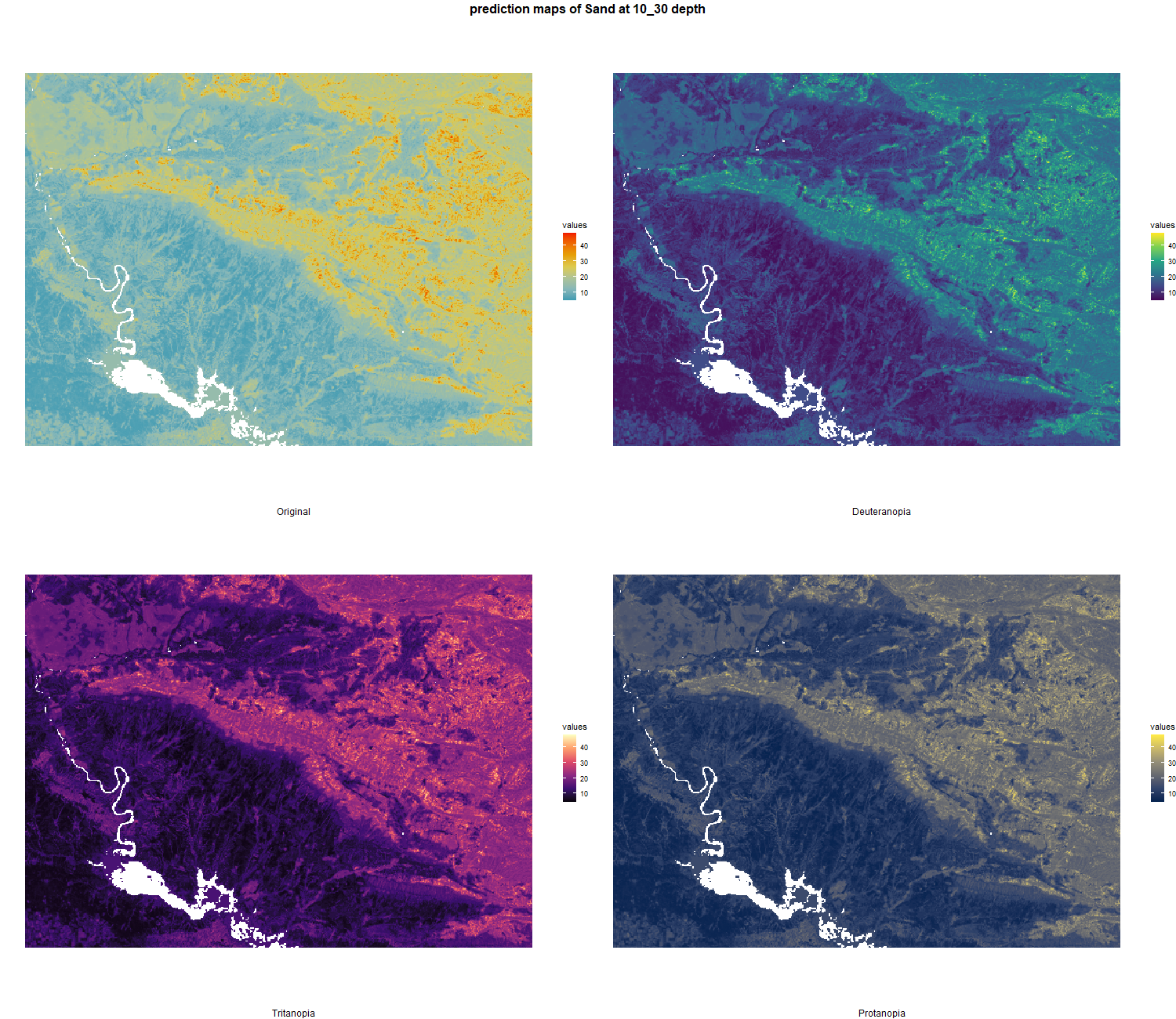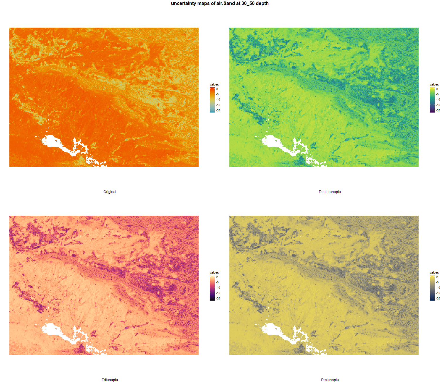 top = textGrob("Bivariate maps of predicted vs. SoilGrid values", gp = gpar(fontsize = 10, fontface = "bold")))