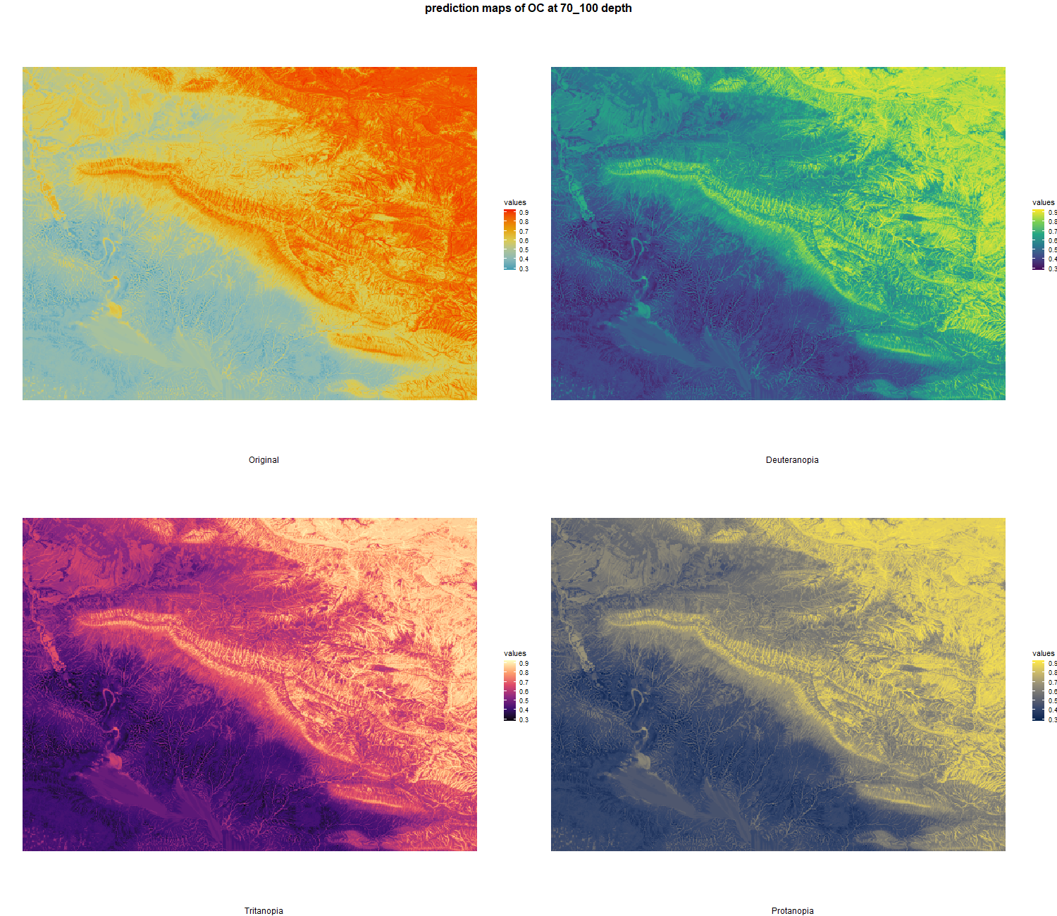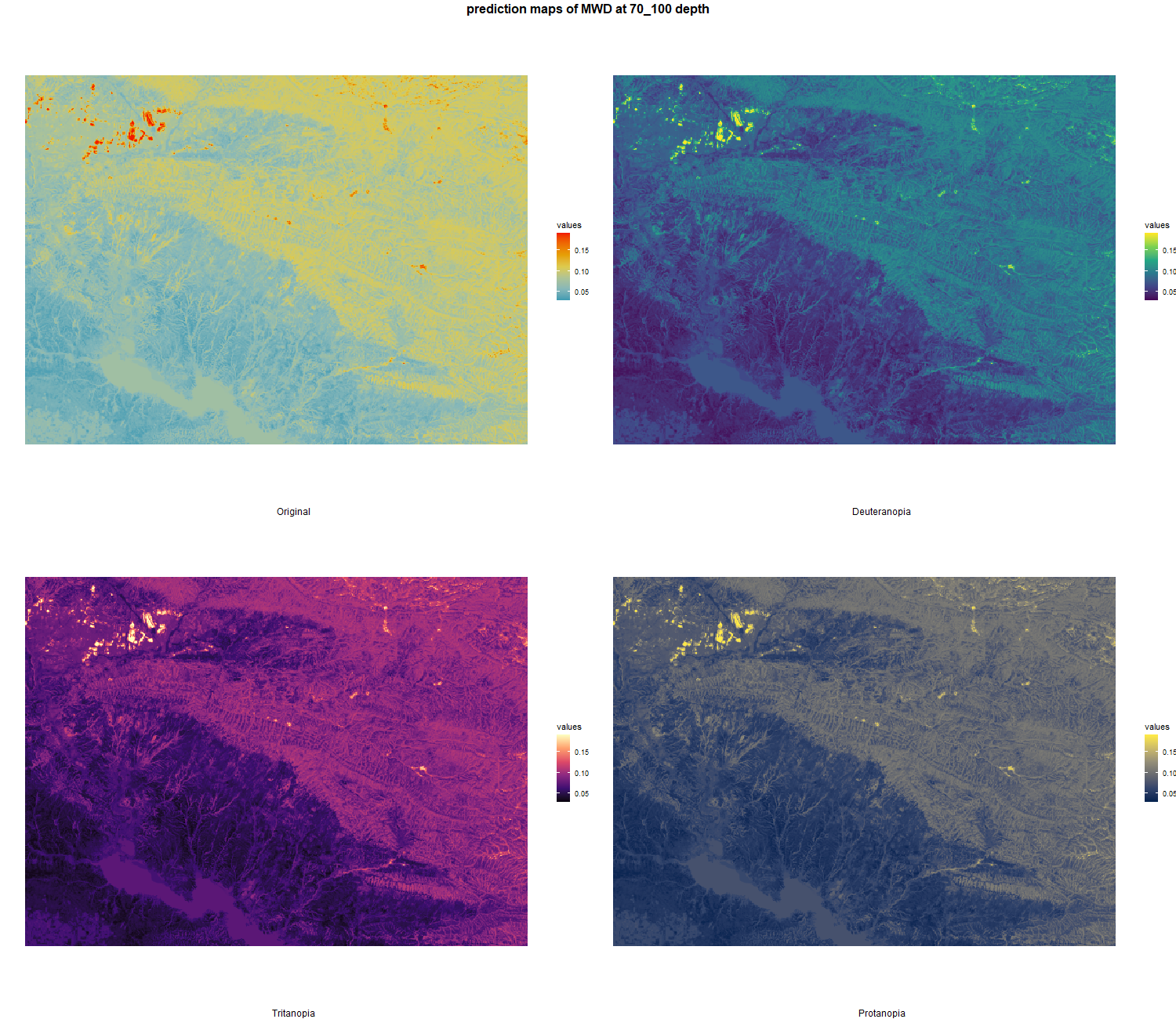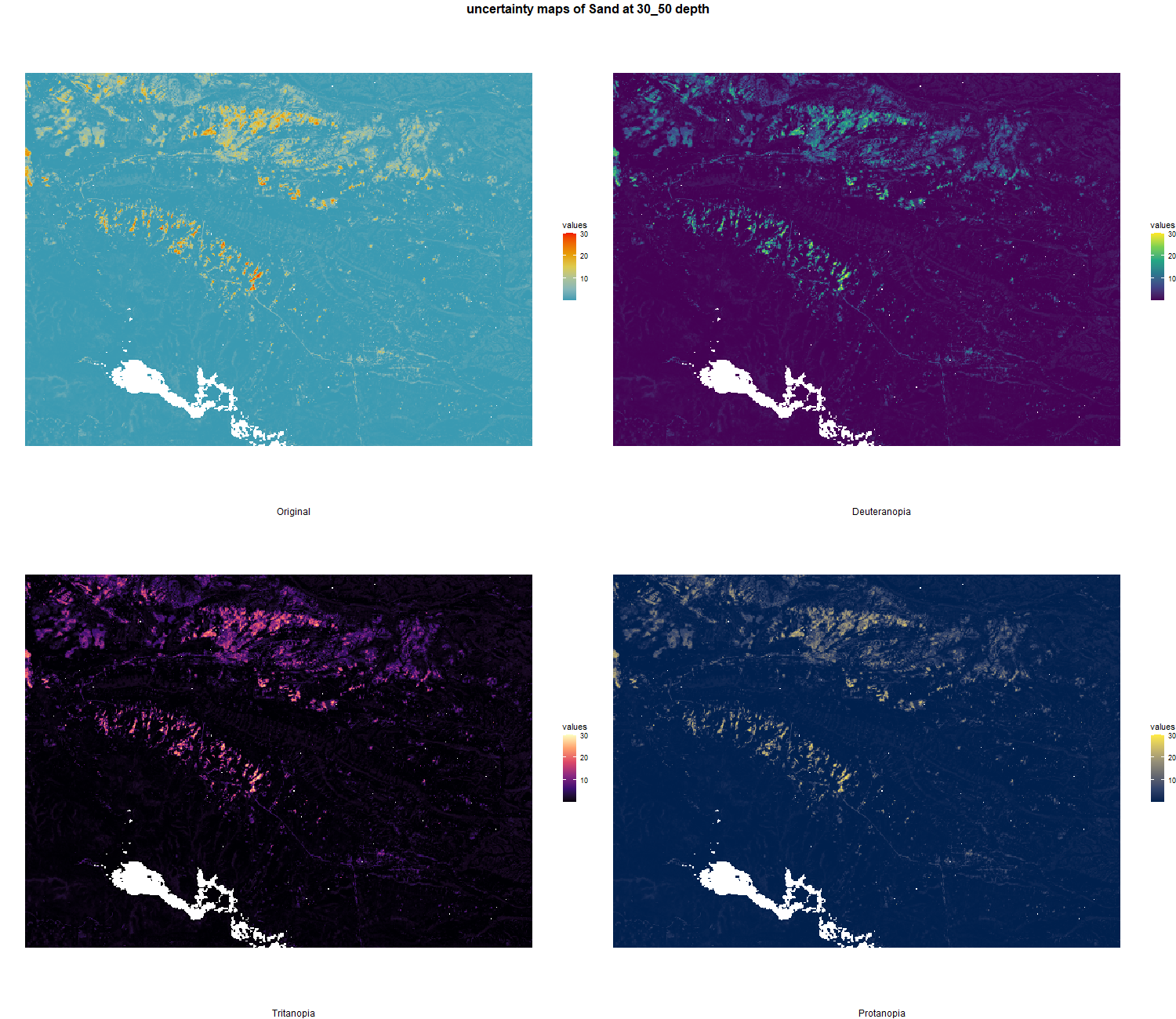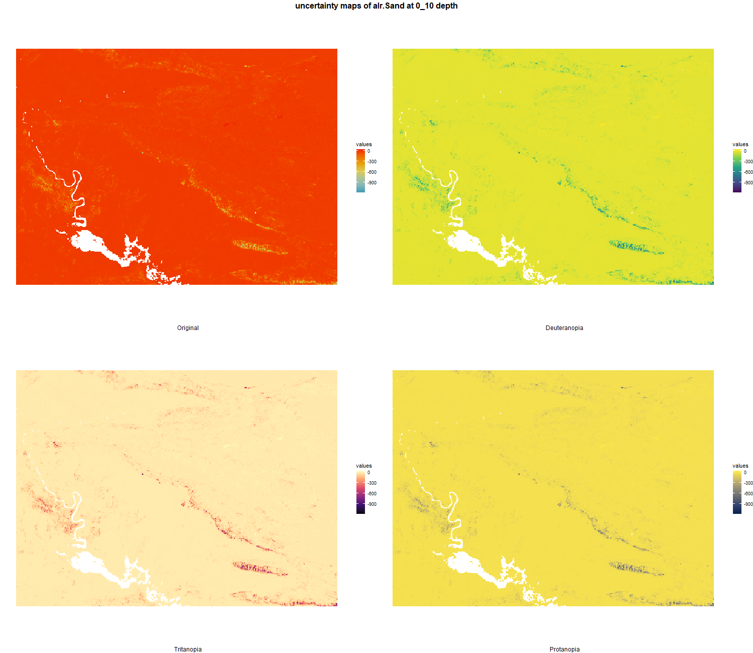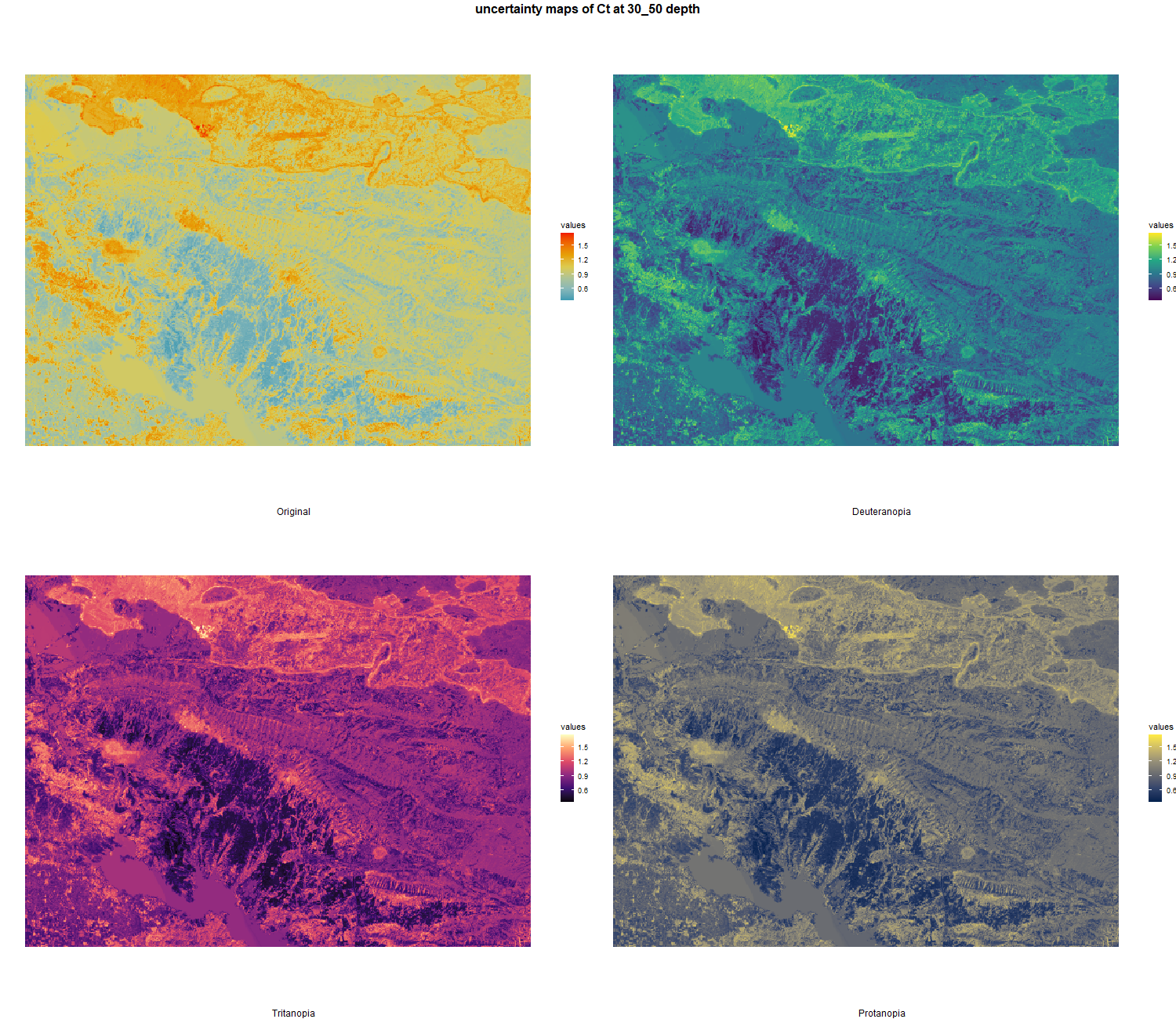top = textGrob("Bivariate maps of predicted vs. SoilGrid values", gp = gpar(fontsize = 10, fontface = "bold")))