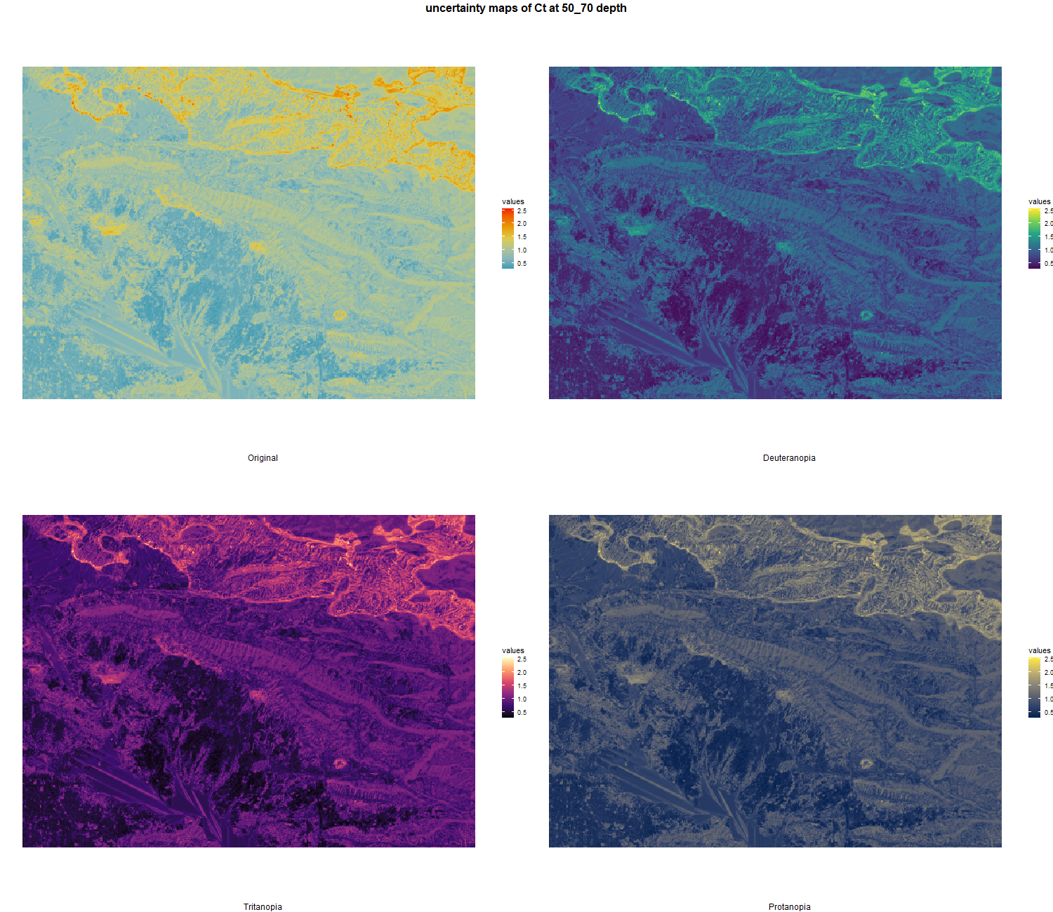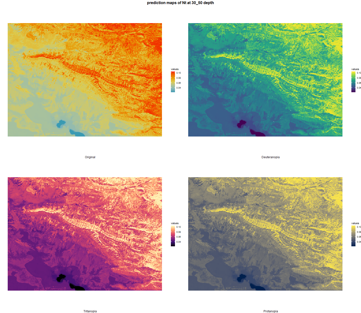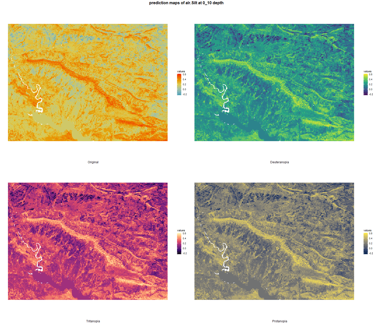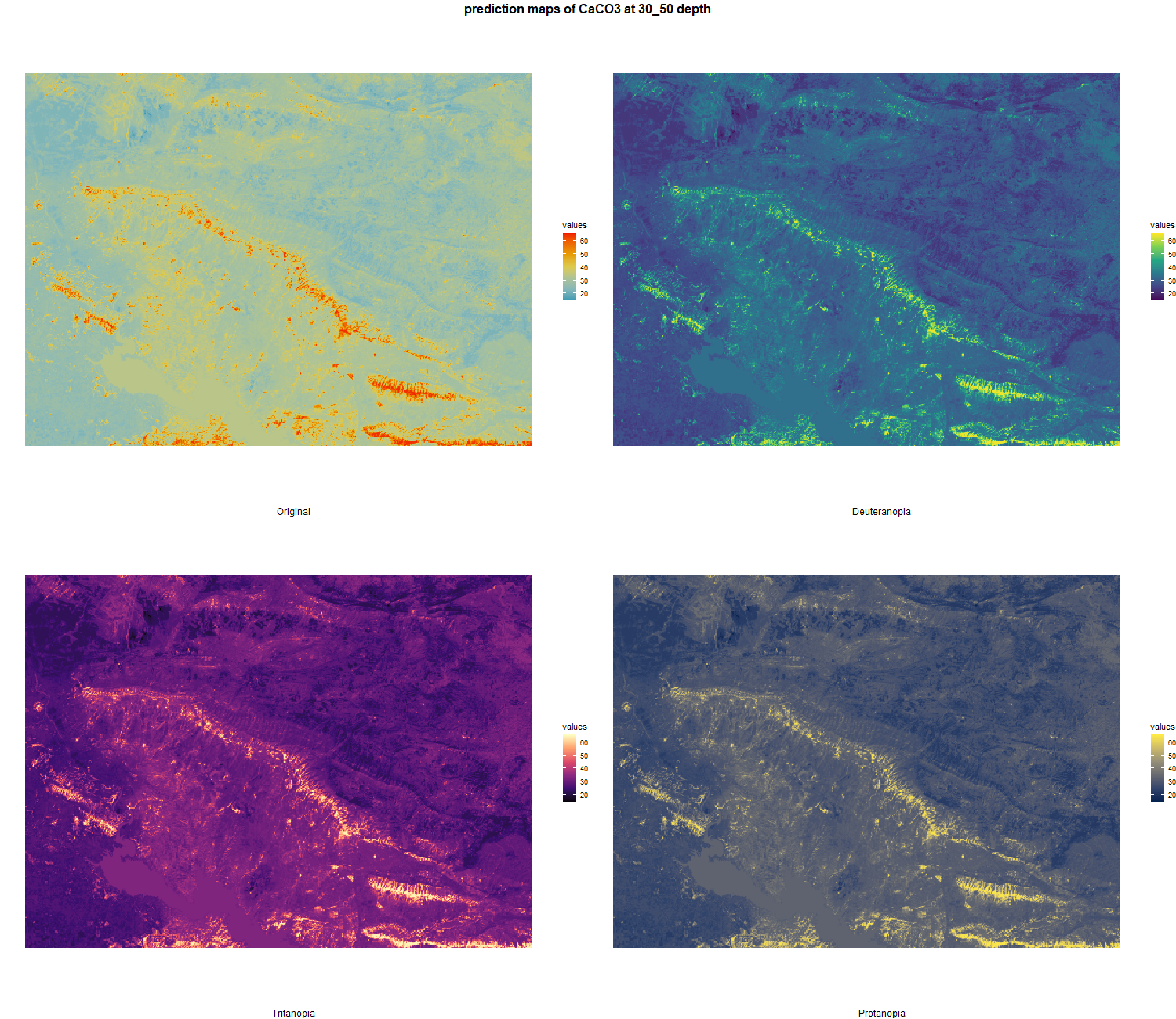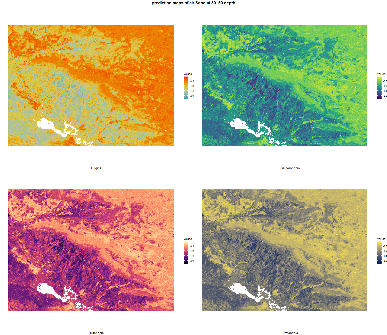 top = textGrob("Bivariate maps of predicted vs. SoilGrid values", gp = gpar(fontsize = 10, fontface = "bold")))