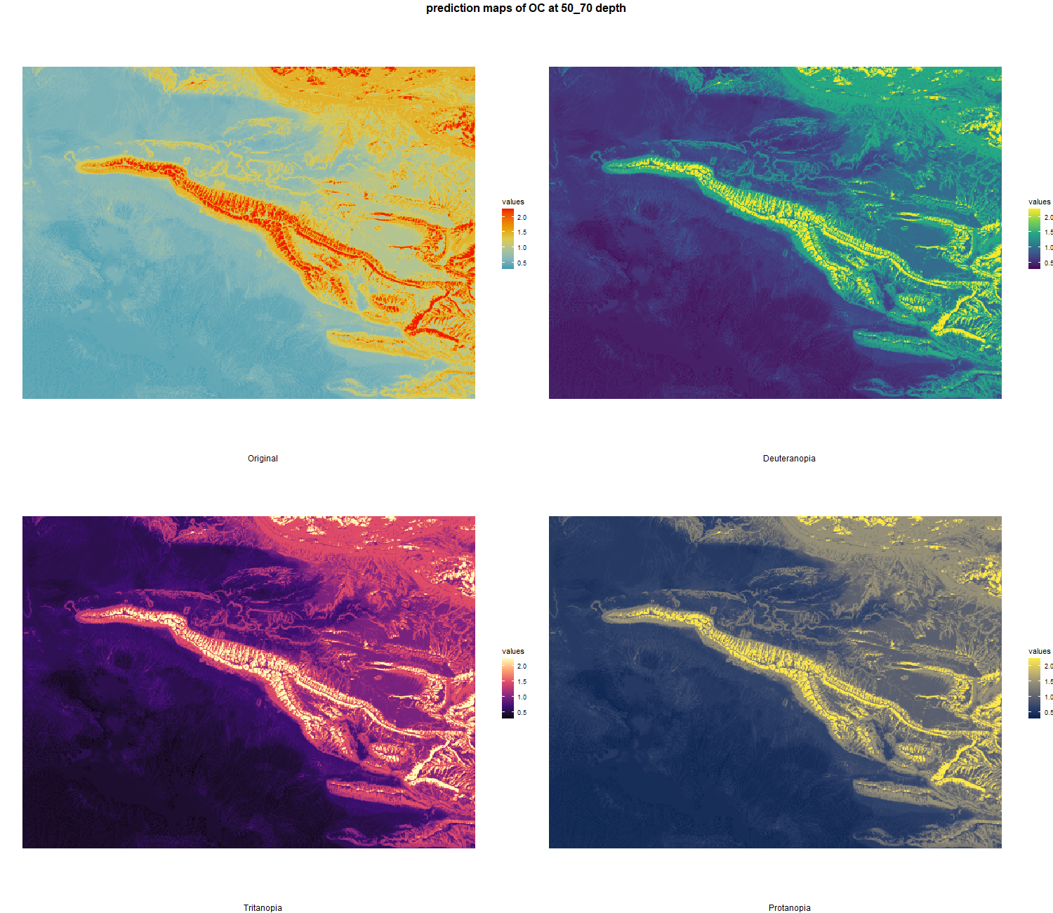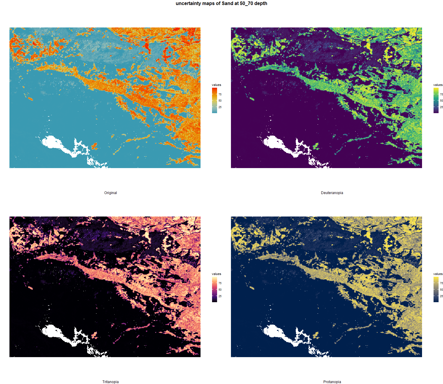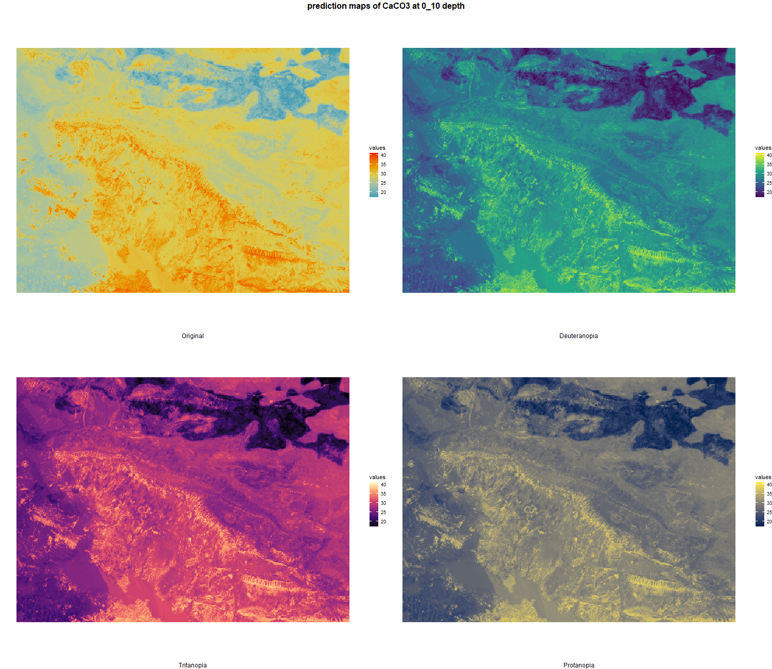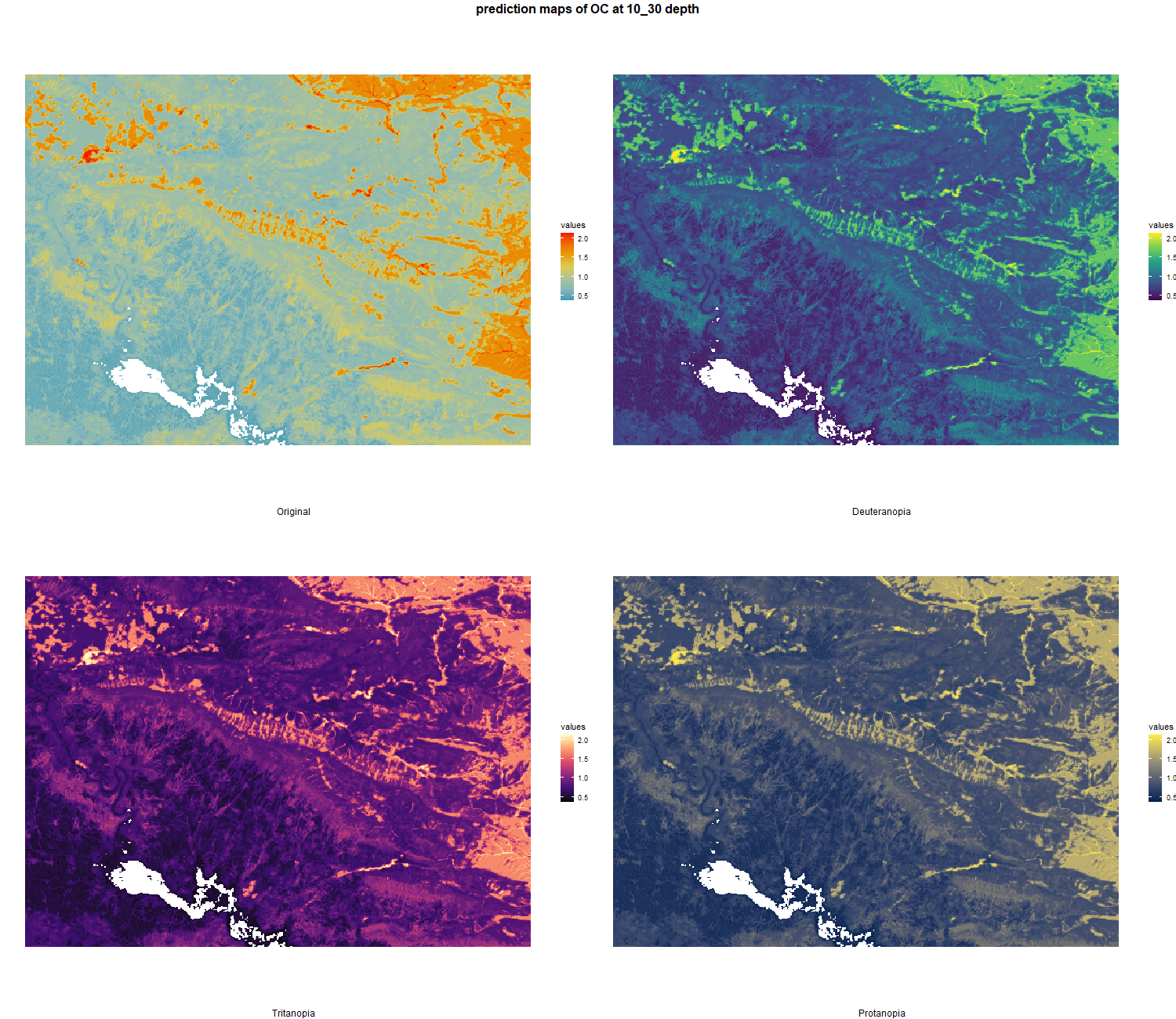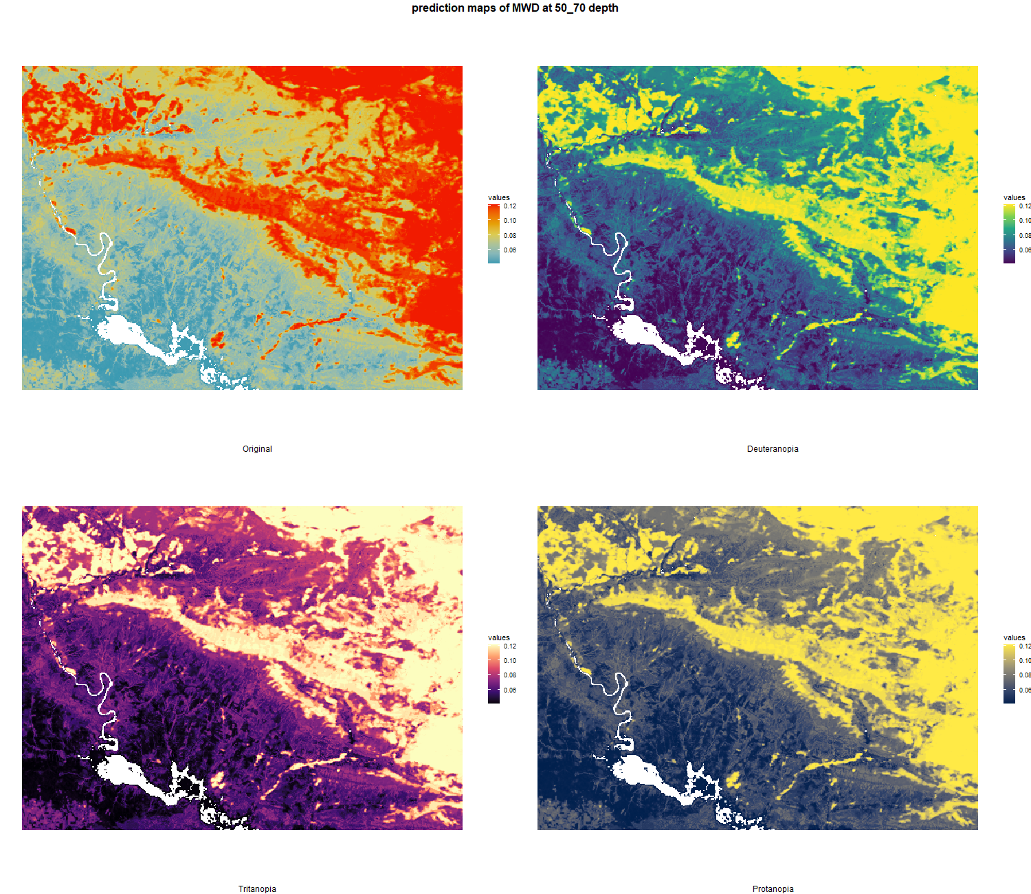 top = textGrob("Bivariate maps of predicted vs. SoilGrid values", gp = gpar(fontsize = 10, fontface = "bold")))