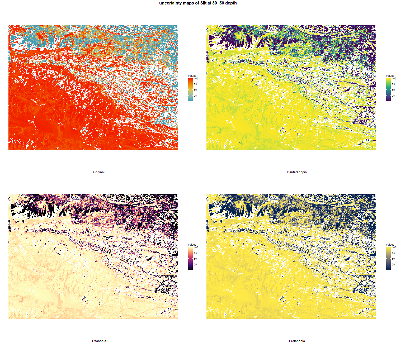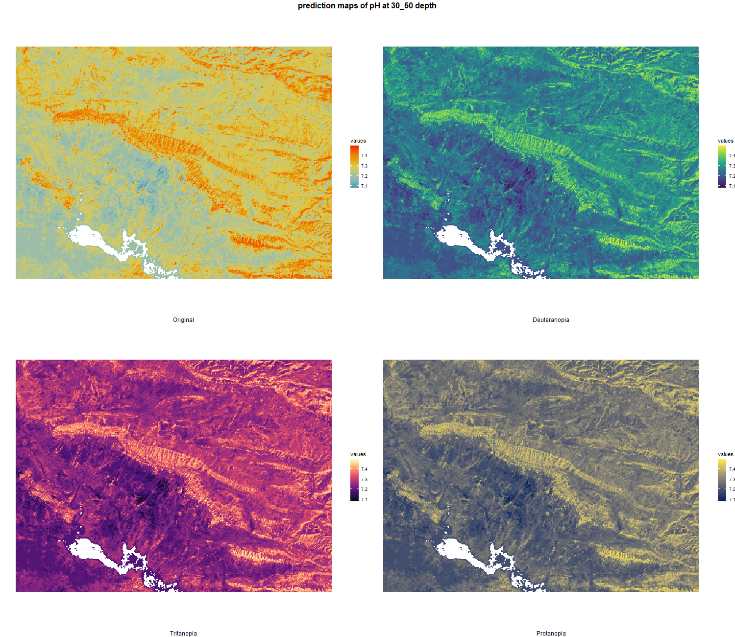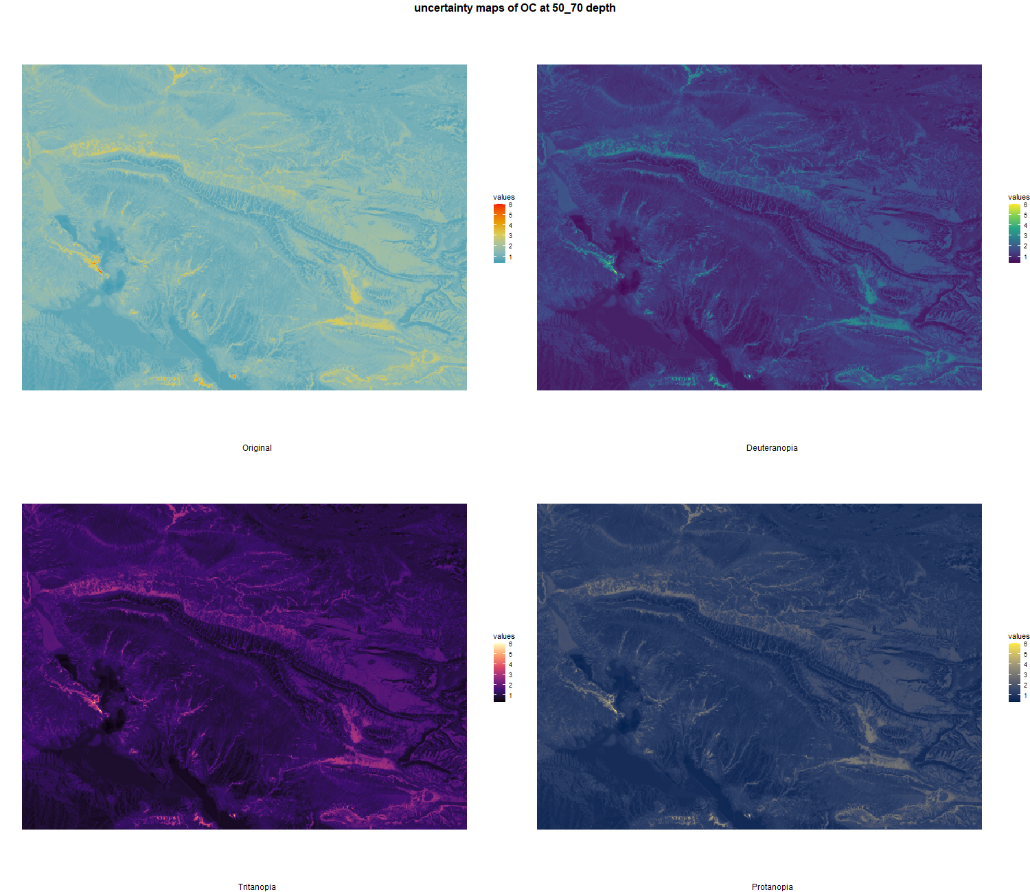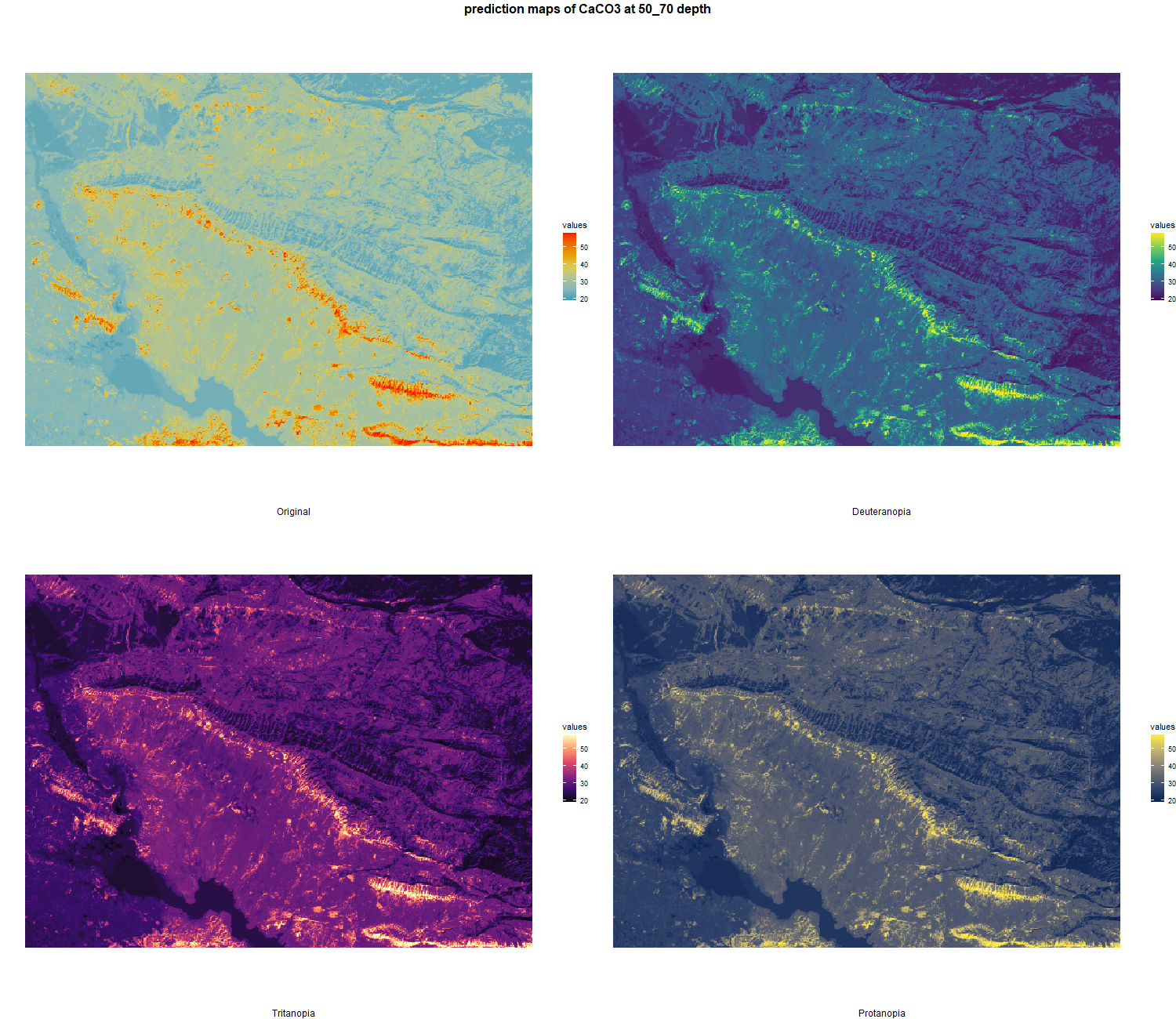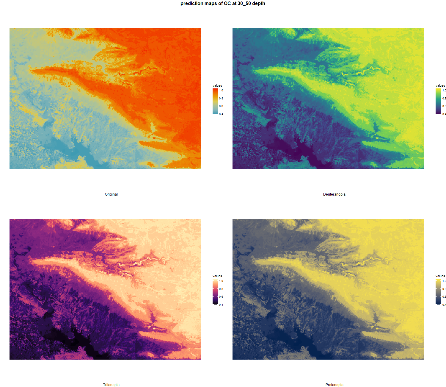 top = textGrob("Bivariate maps of predicted vs. SoilGrid values", gp = gpar(fontsize = 10, fontface = "bold")))