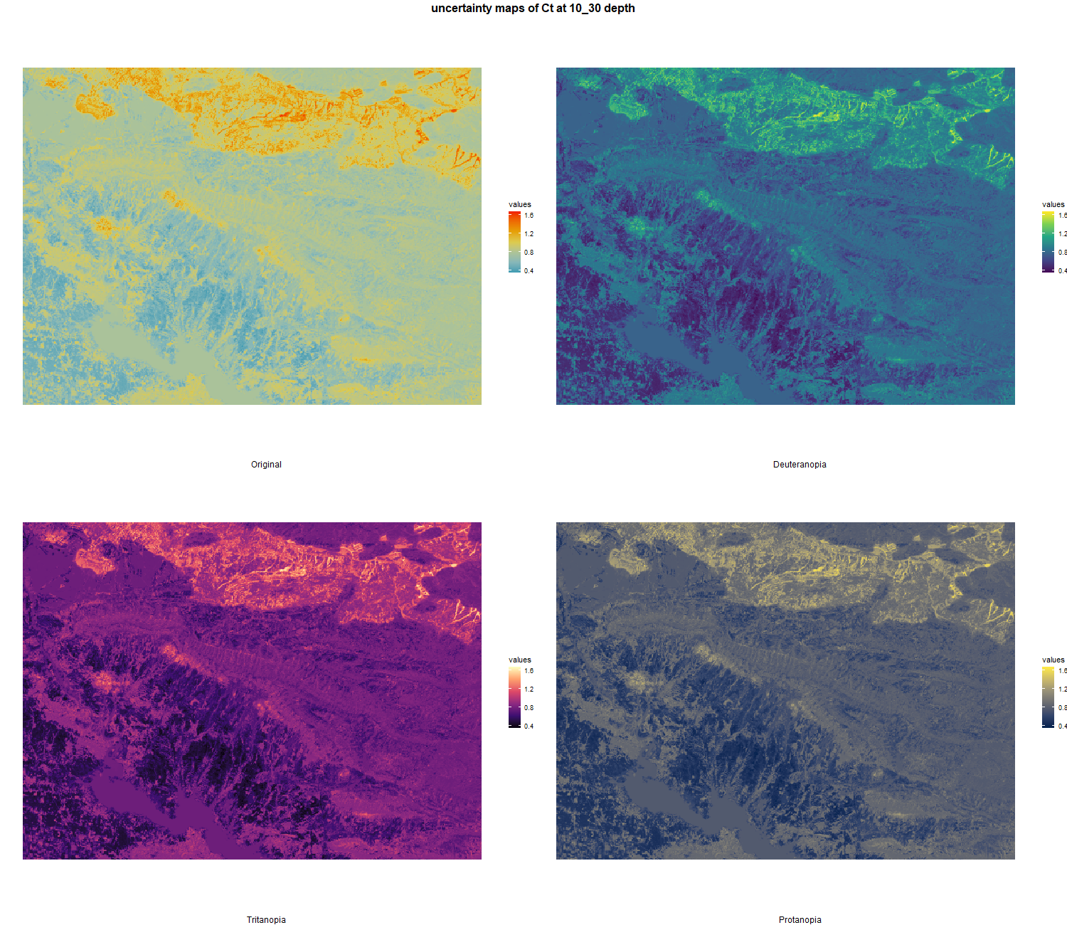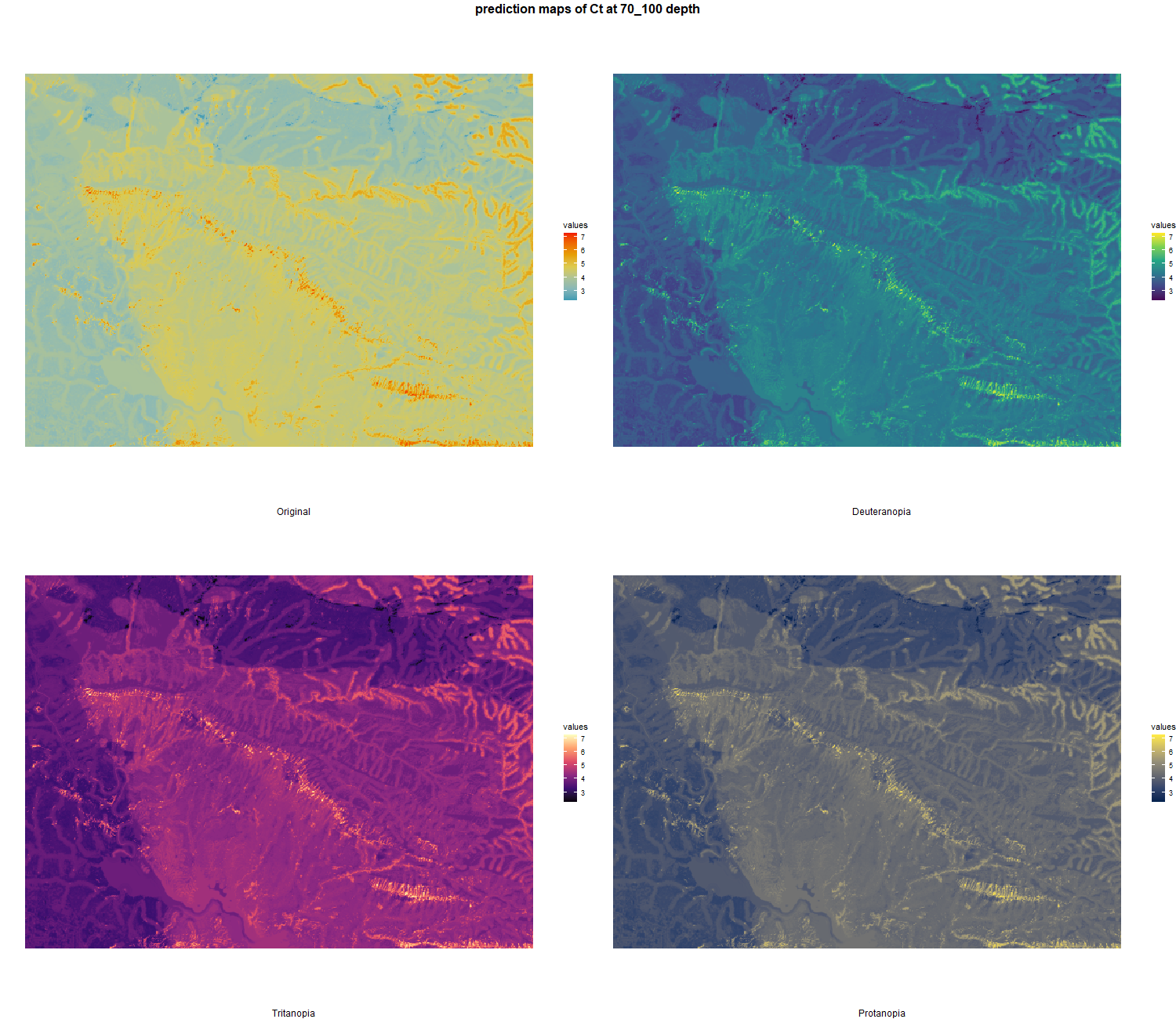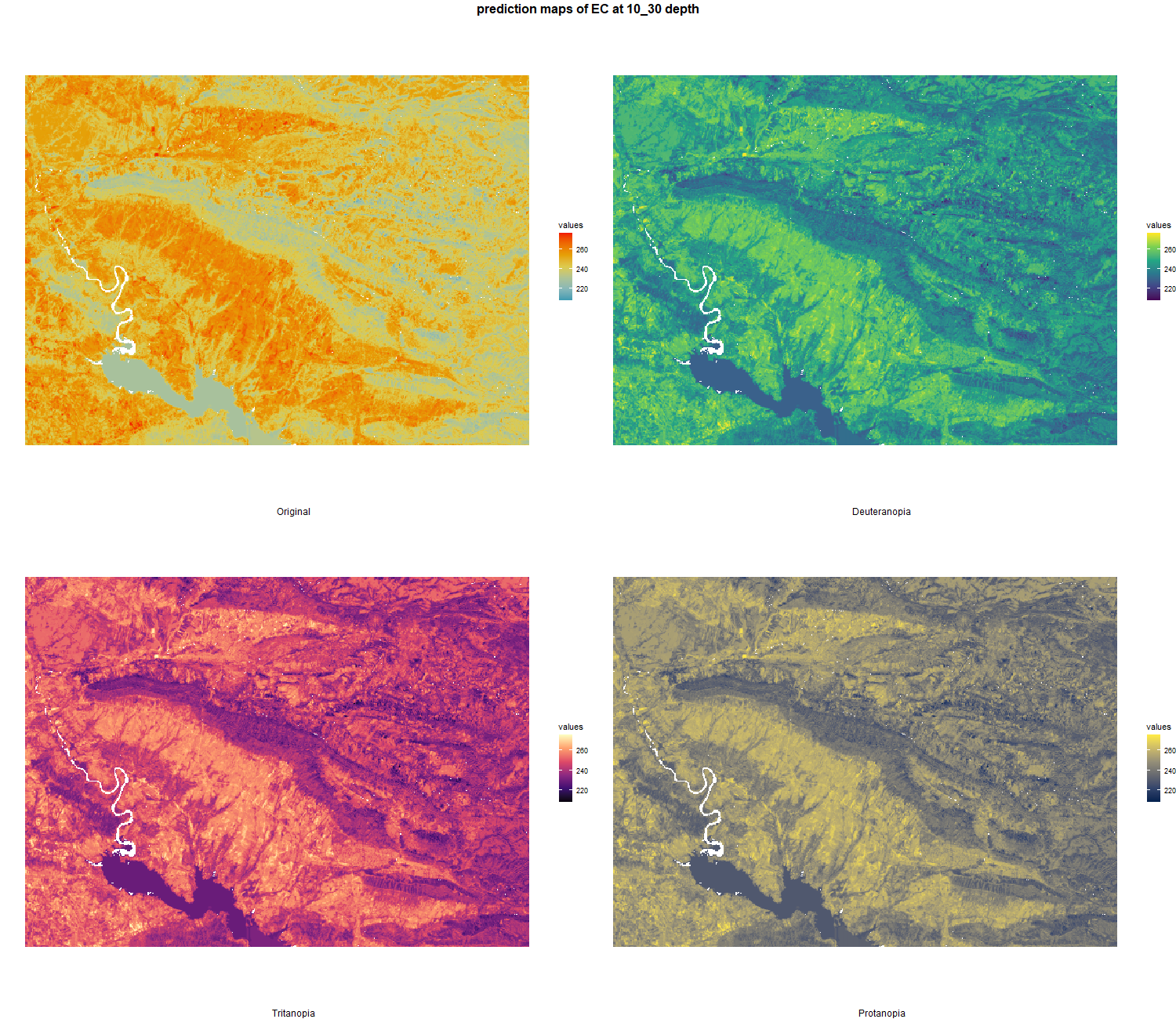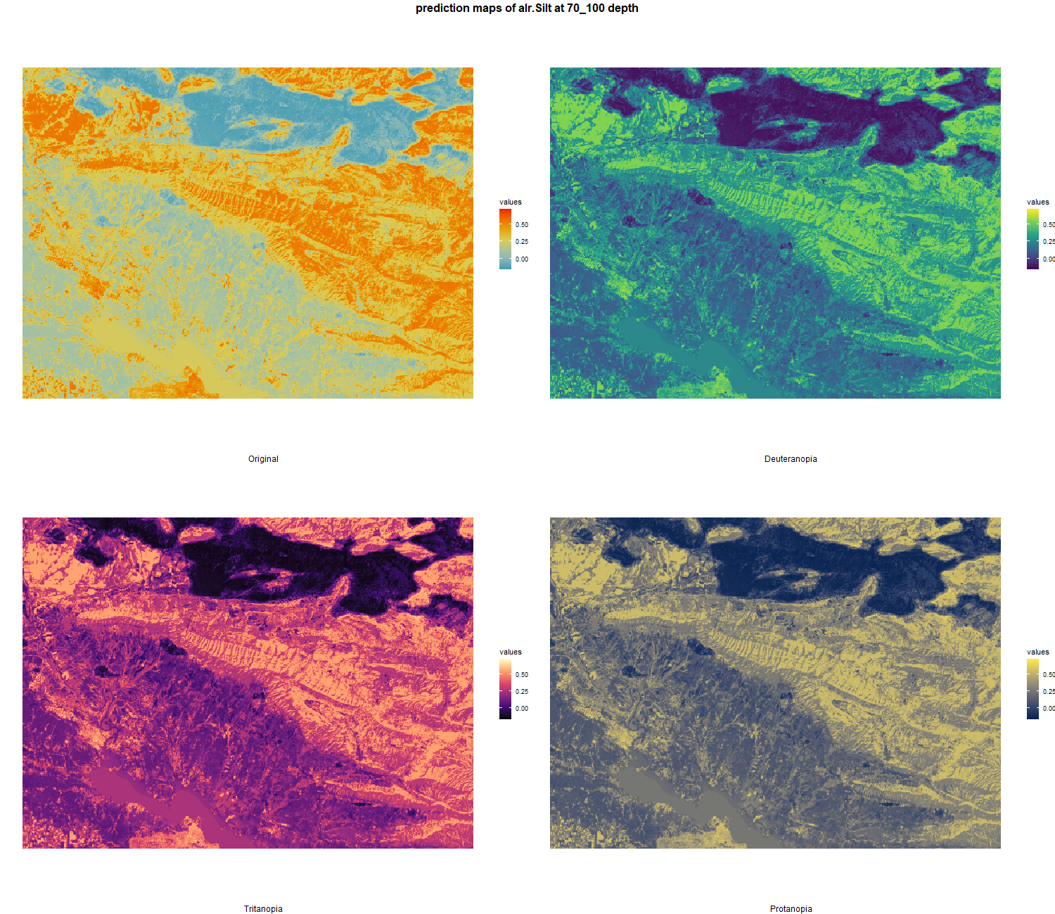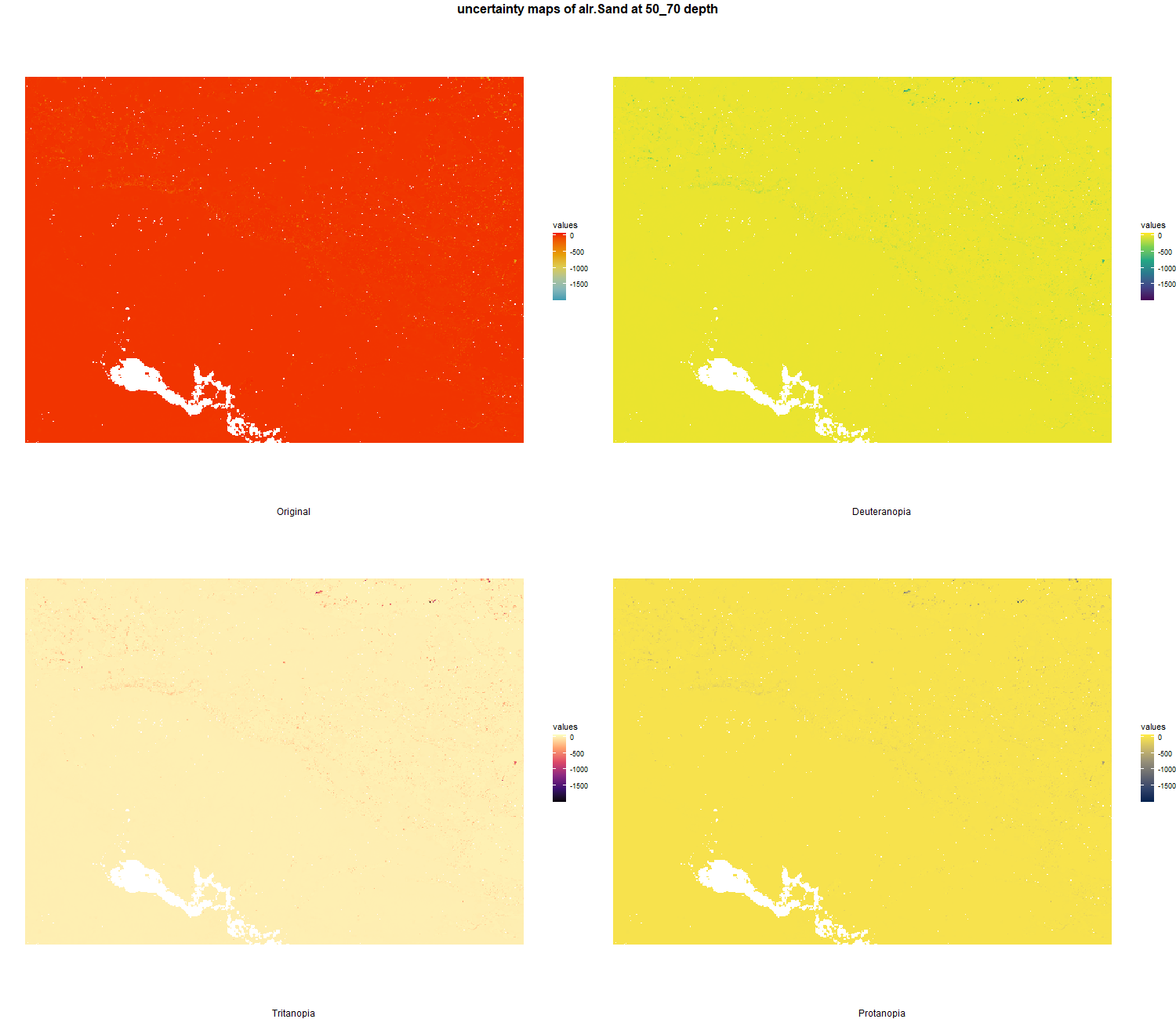 top = textGrob("Bivariate maps of predicted vs. SoilGrid values", gp = gpar(fontsize = 10, fontface = "bold")))