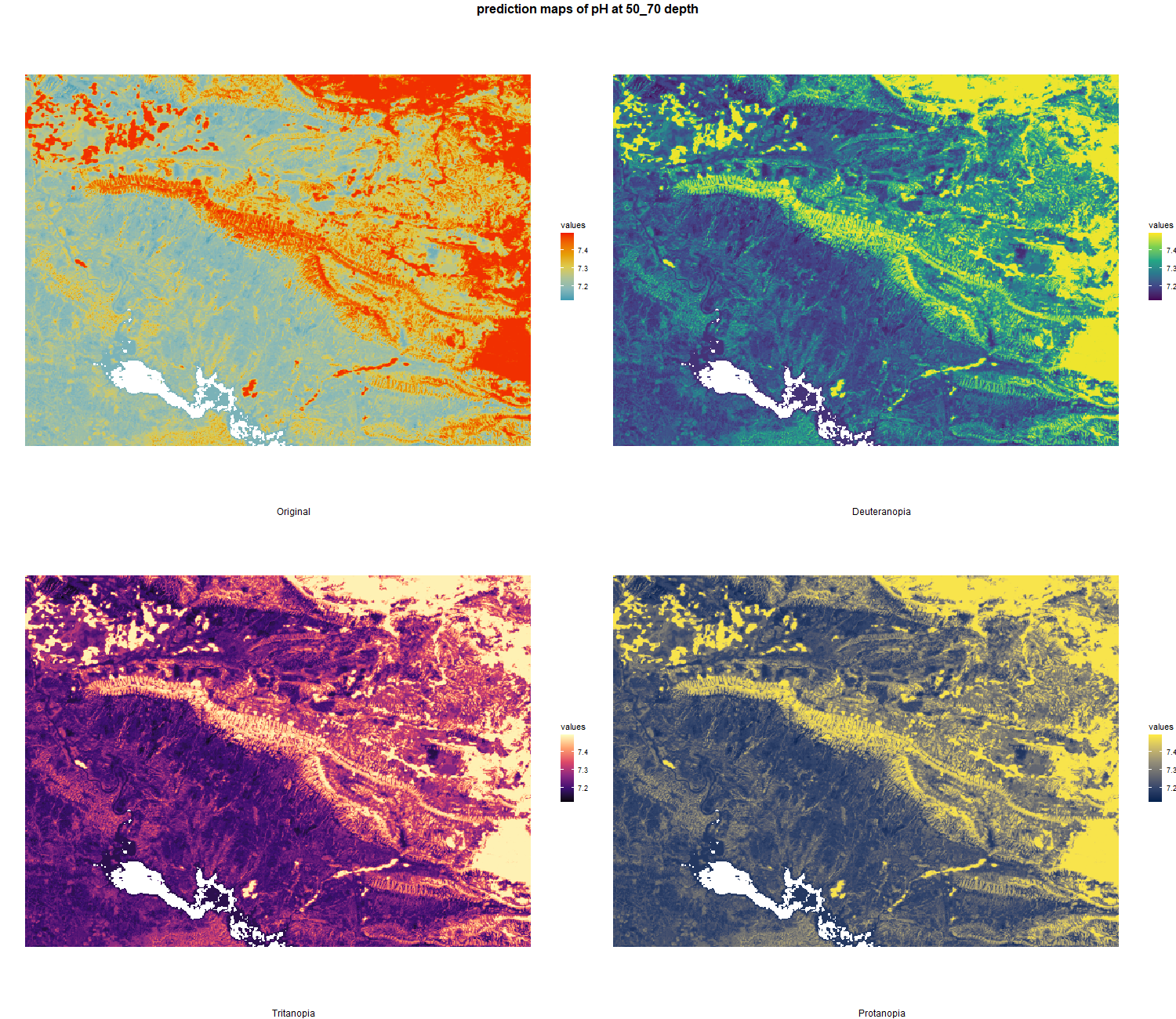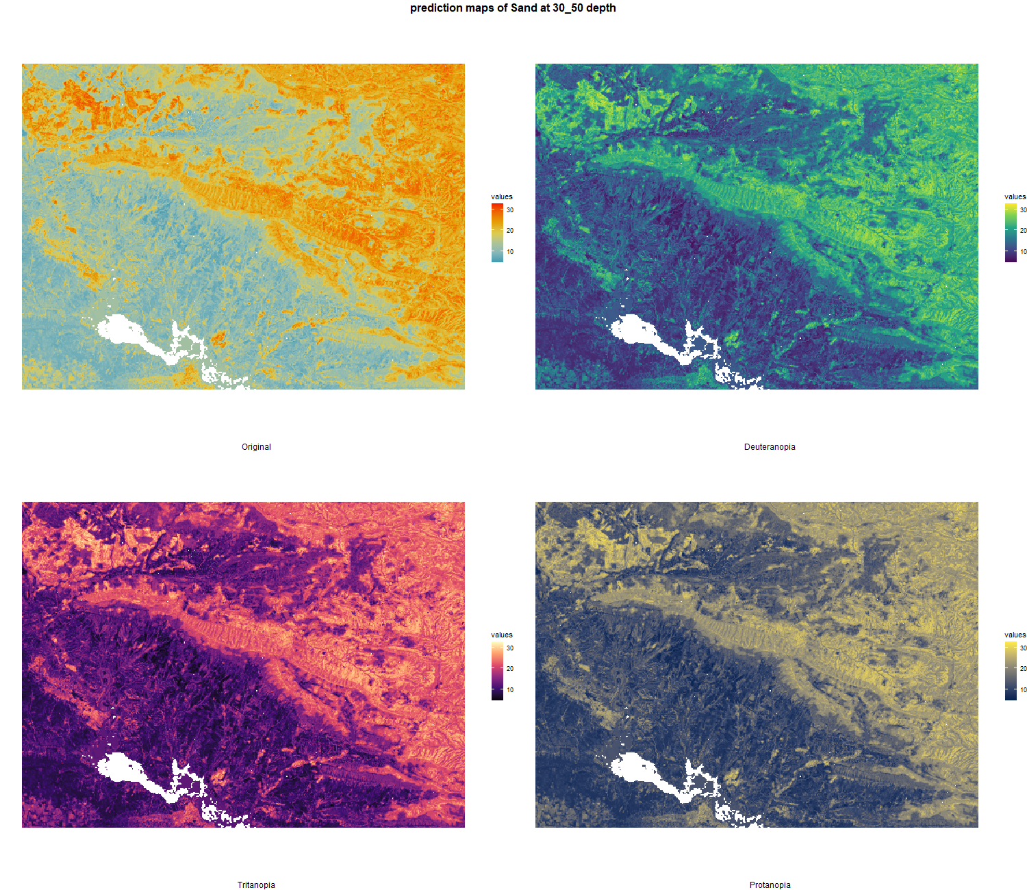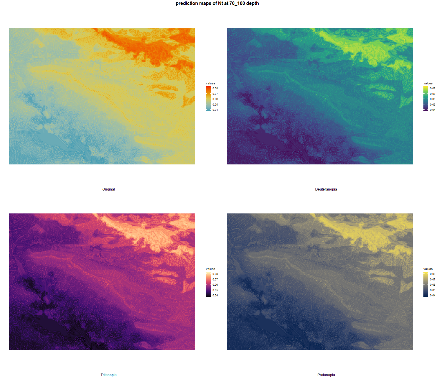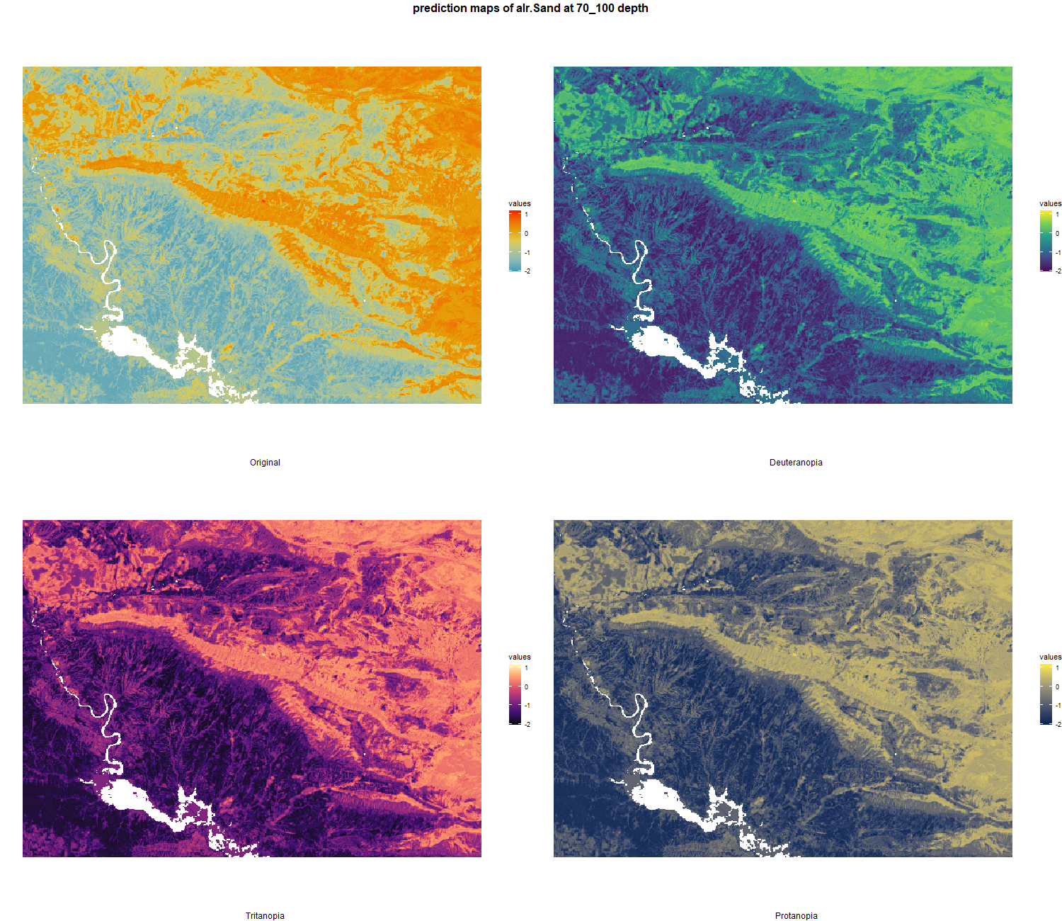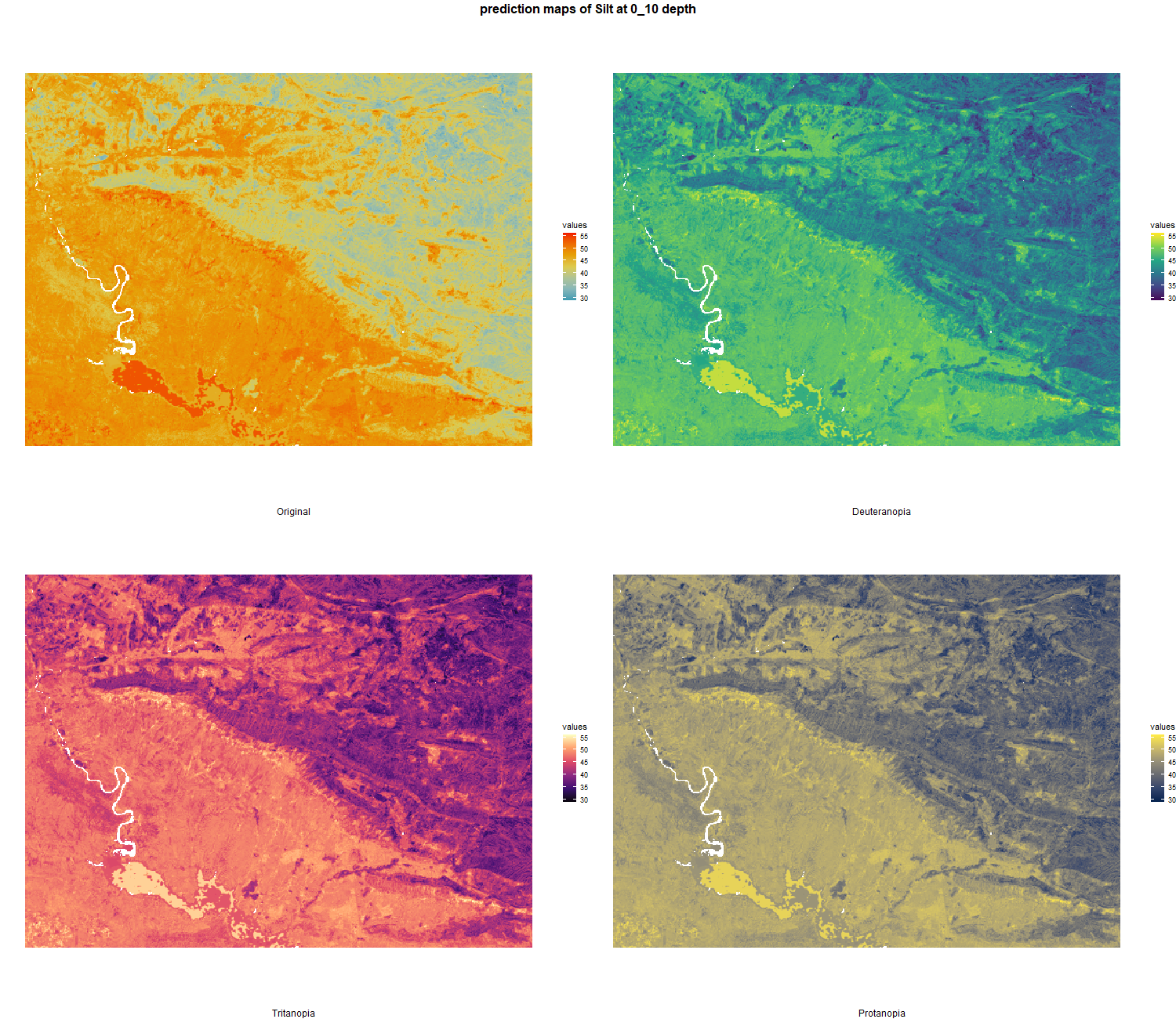 top = textGrob("Bivariate maps of predicted vs. SoilGrid values", gp = gpar(fontsize = 10, fontface = "bold")))