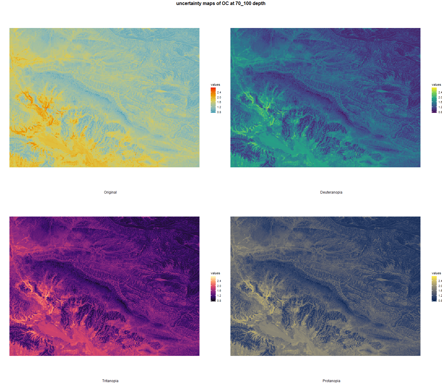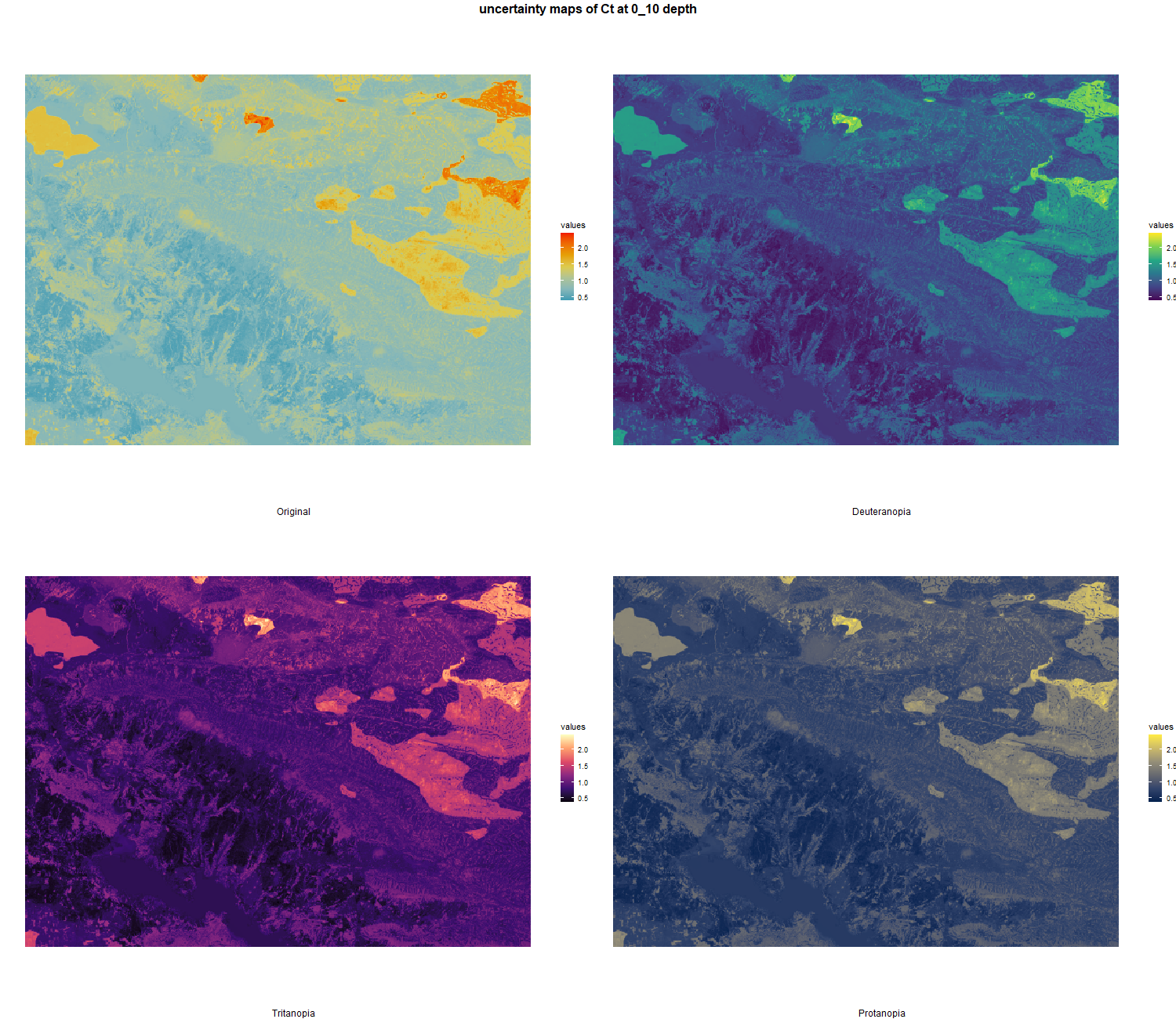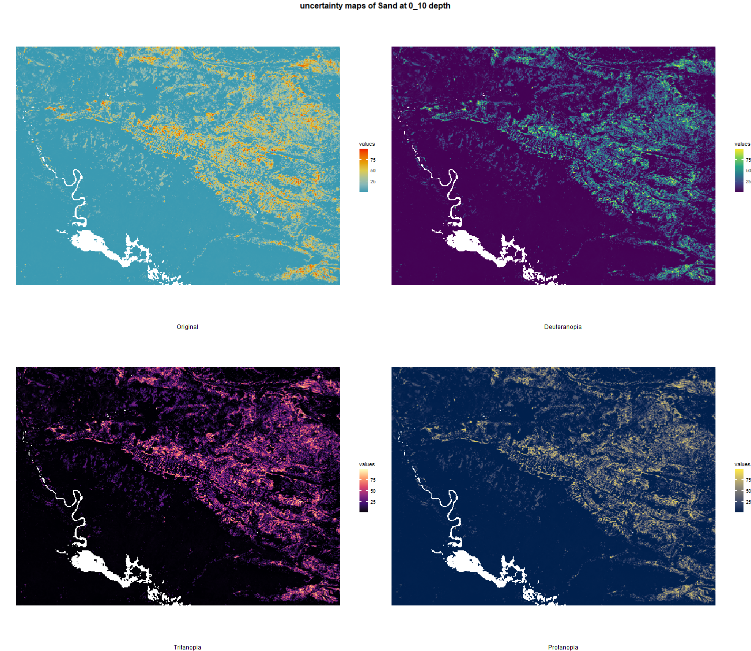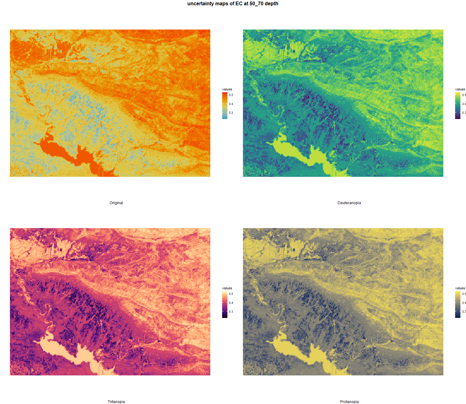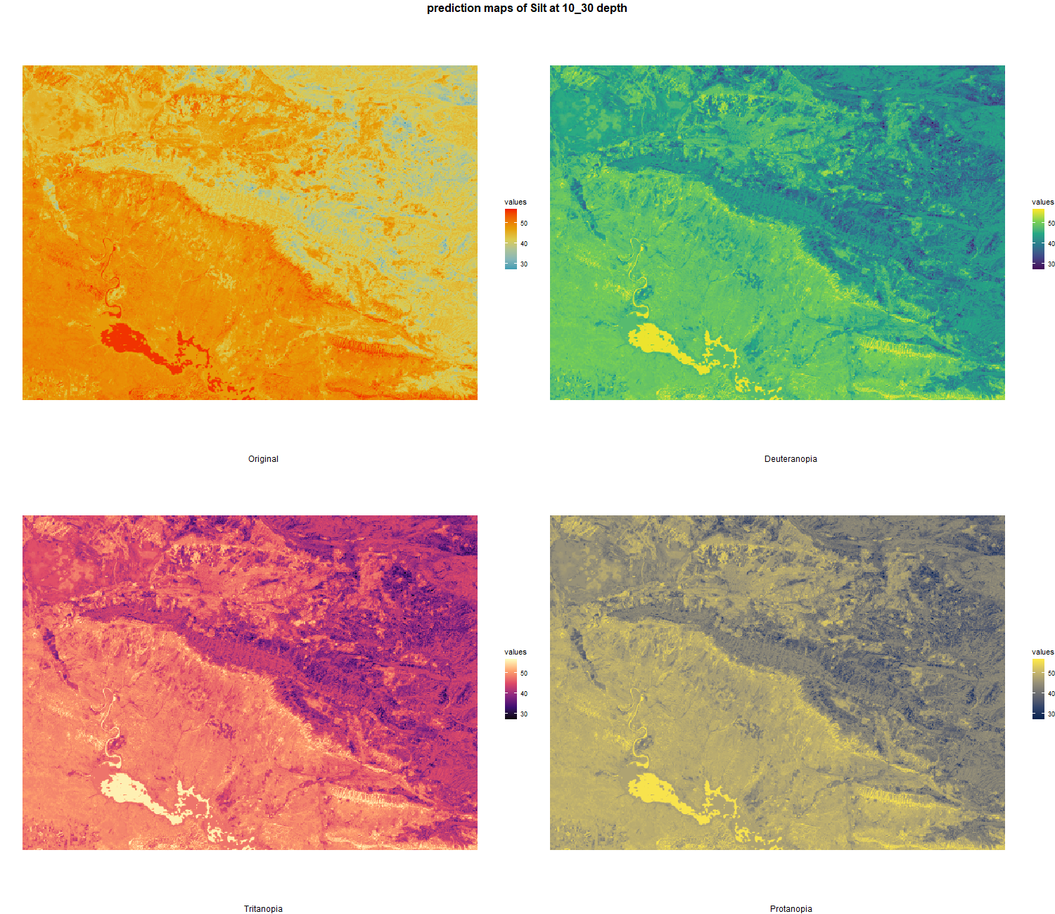 top = textGrob("Bivariate maps of predicted vs. SoilGrid values", gp = gpar(fontsize = 10, fontface = "bold")))