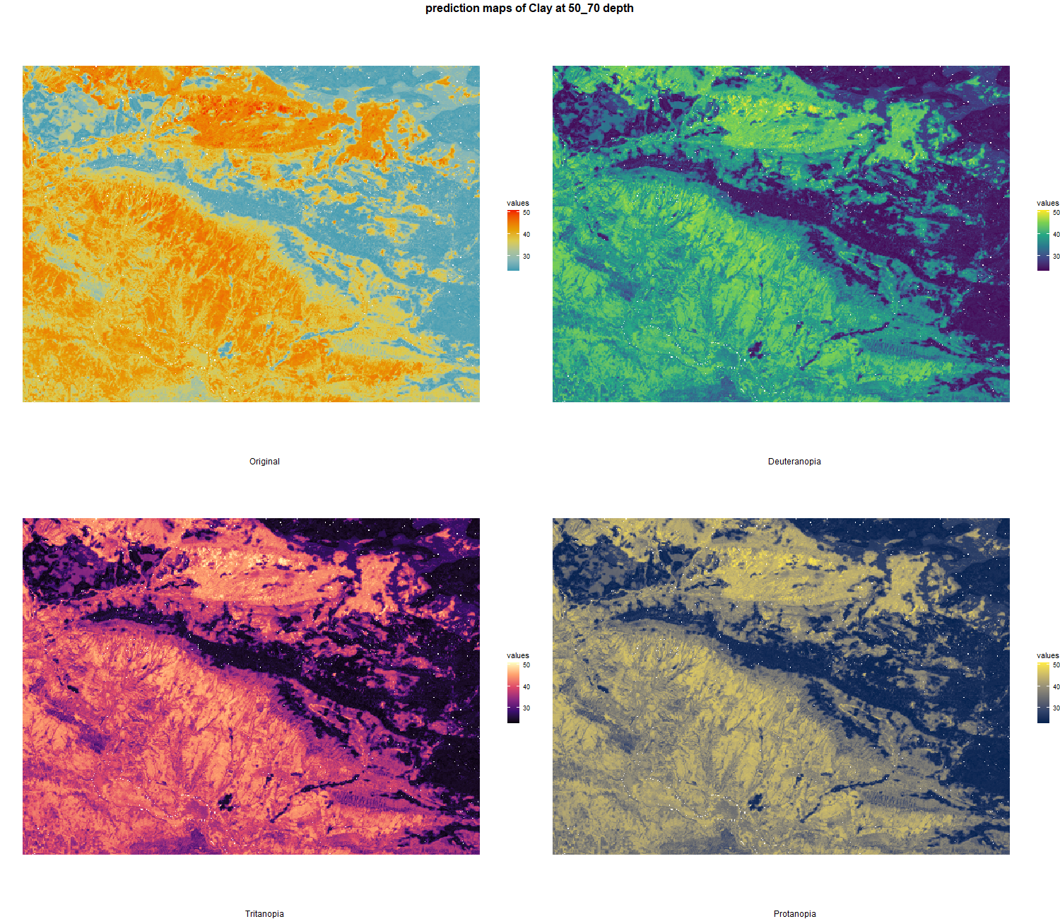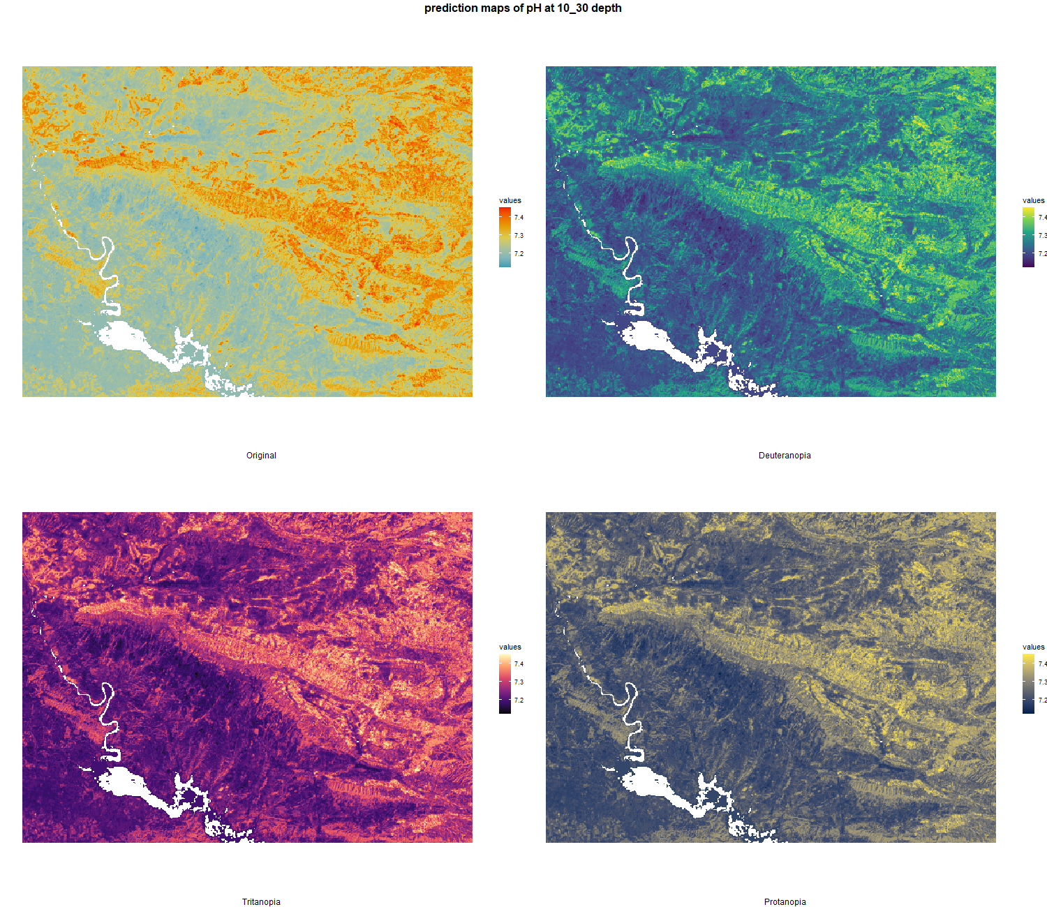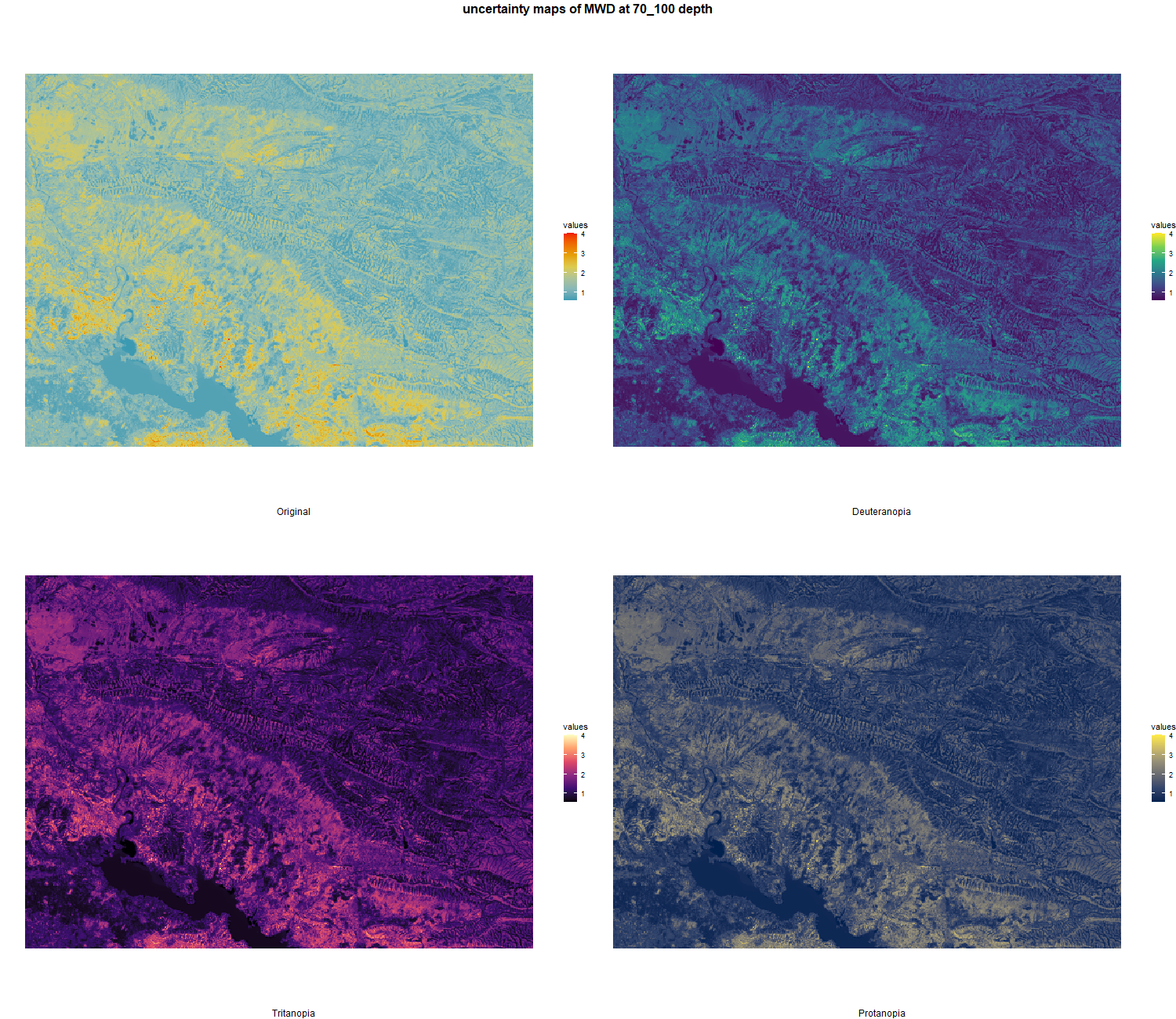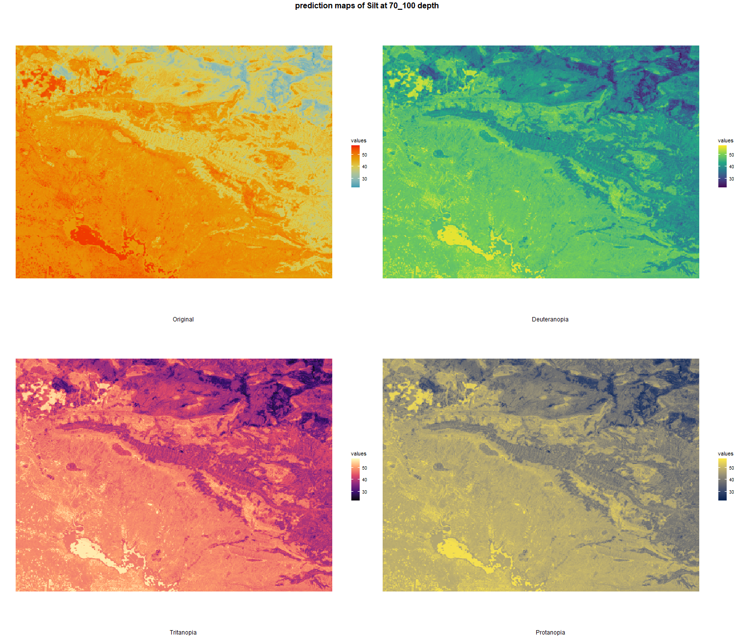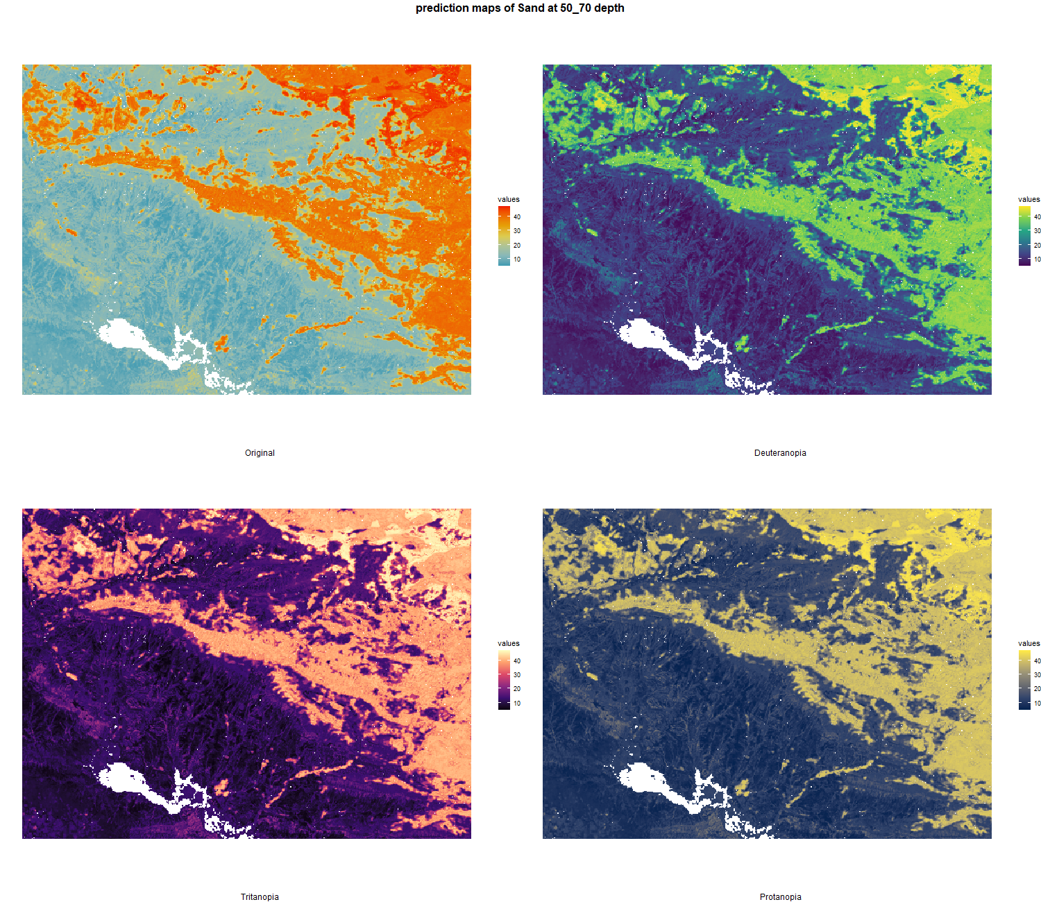top = textGrob("Bivariate maps of predicted vs. SoilGrid values", gp = gpar(fontsize = 10, fontface = "bold")))