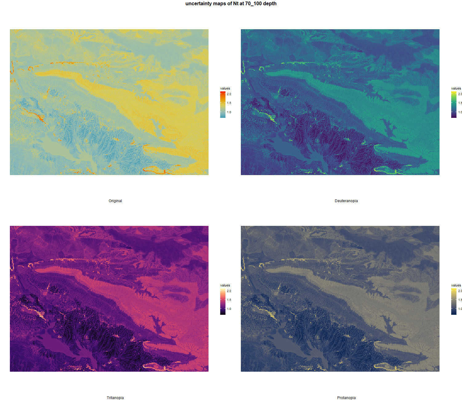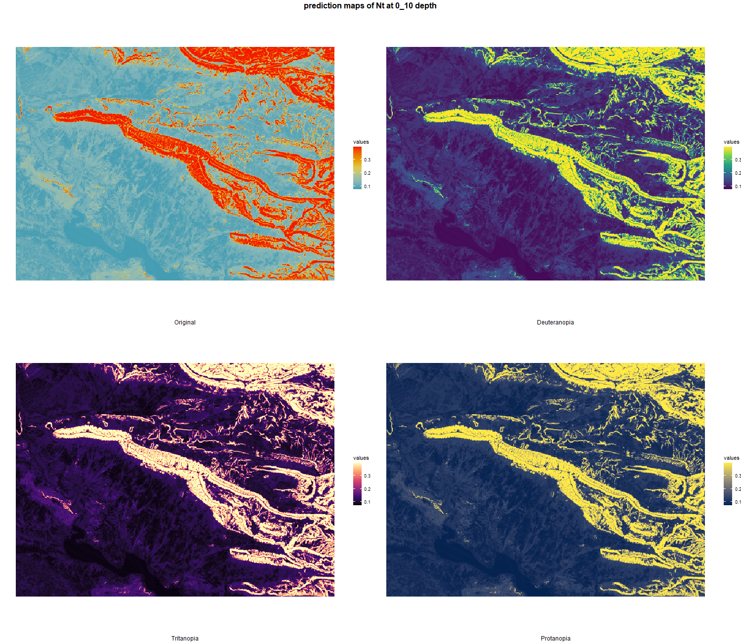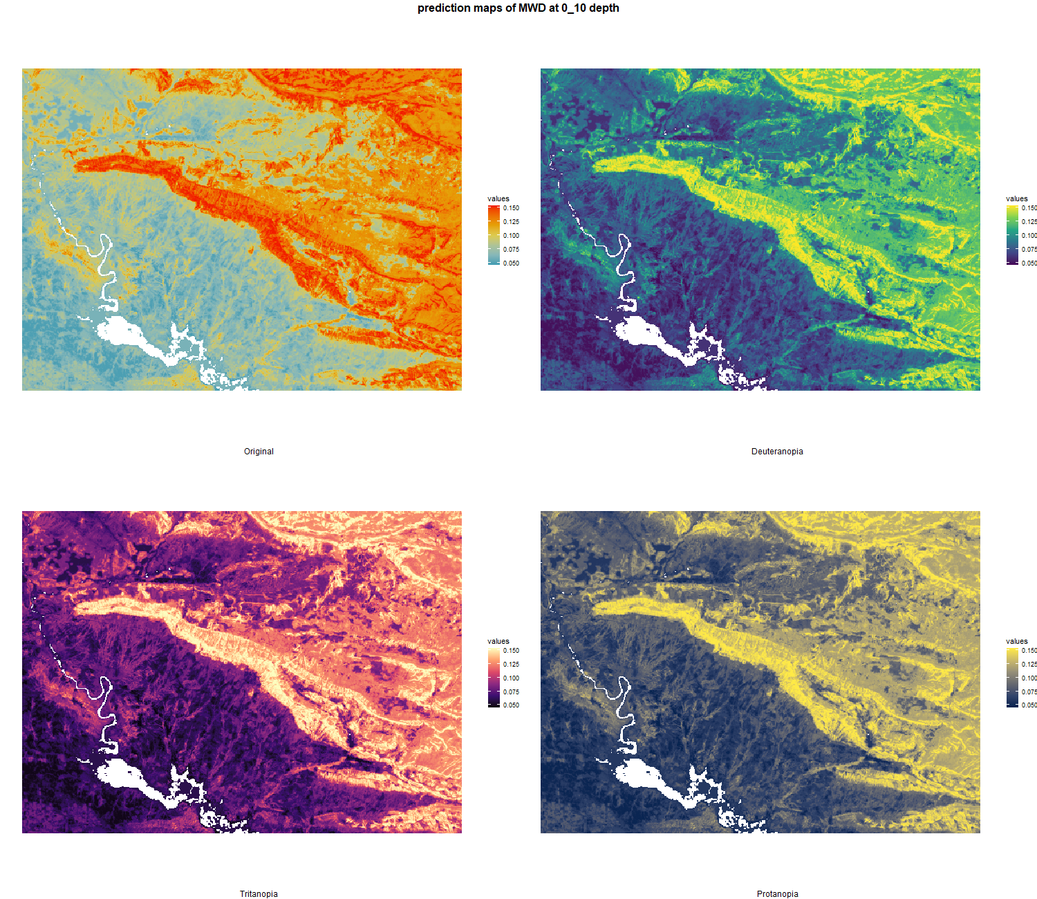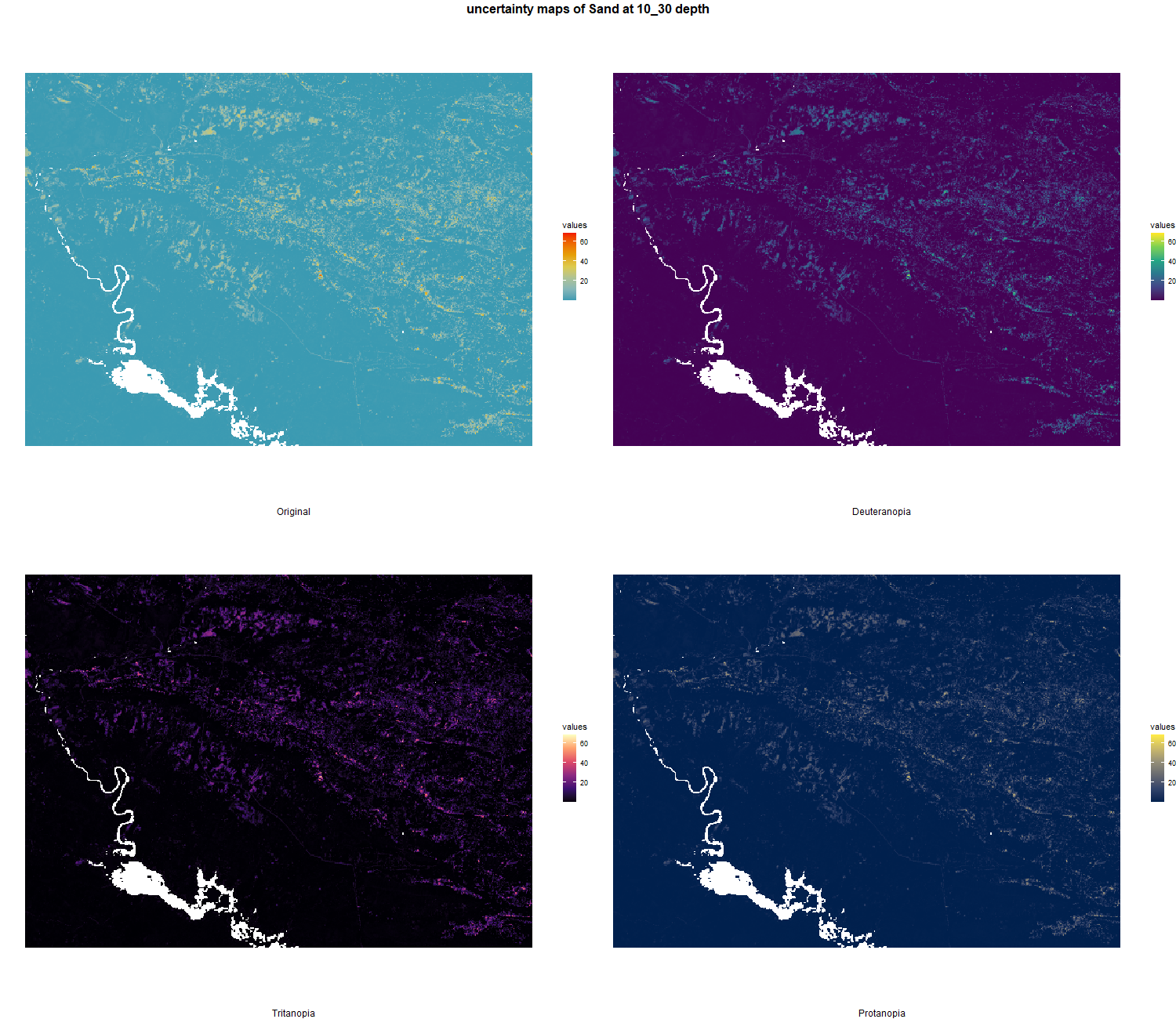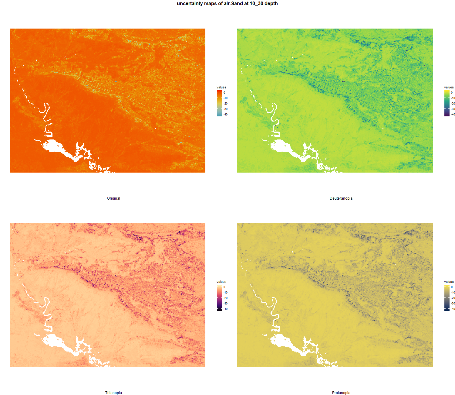 top = textGrob("Bivariate maps of predicted vs. SoilGrid values", gp = gpar(fontsize = 10, fontface = "bold")))