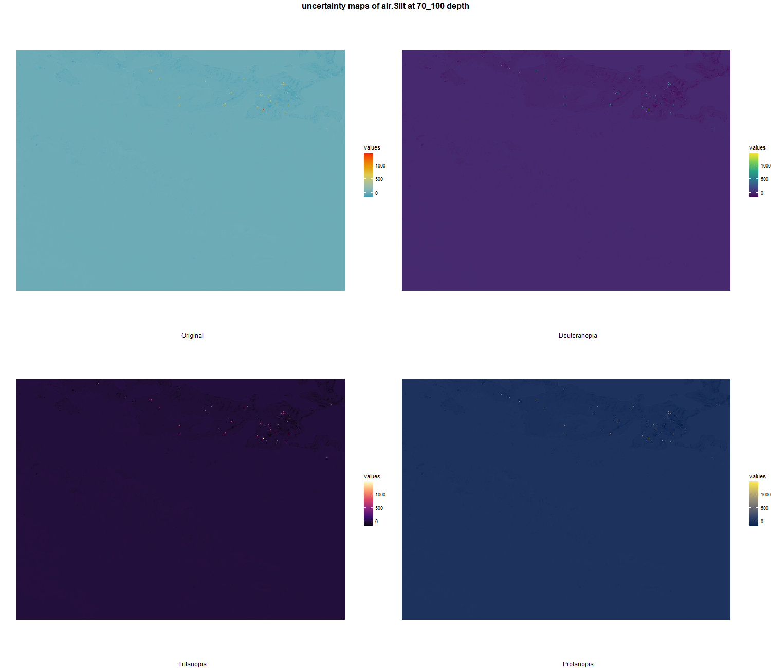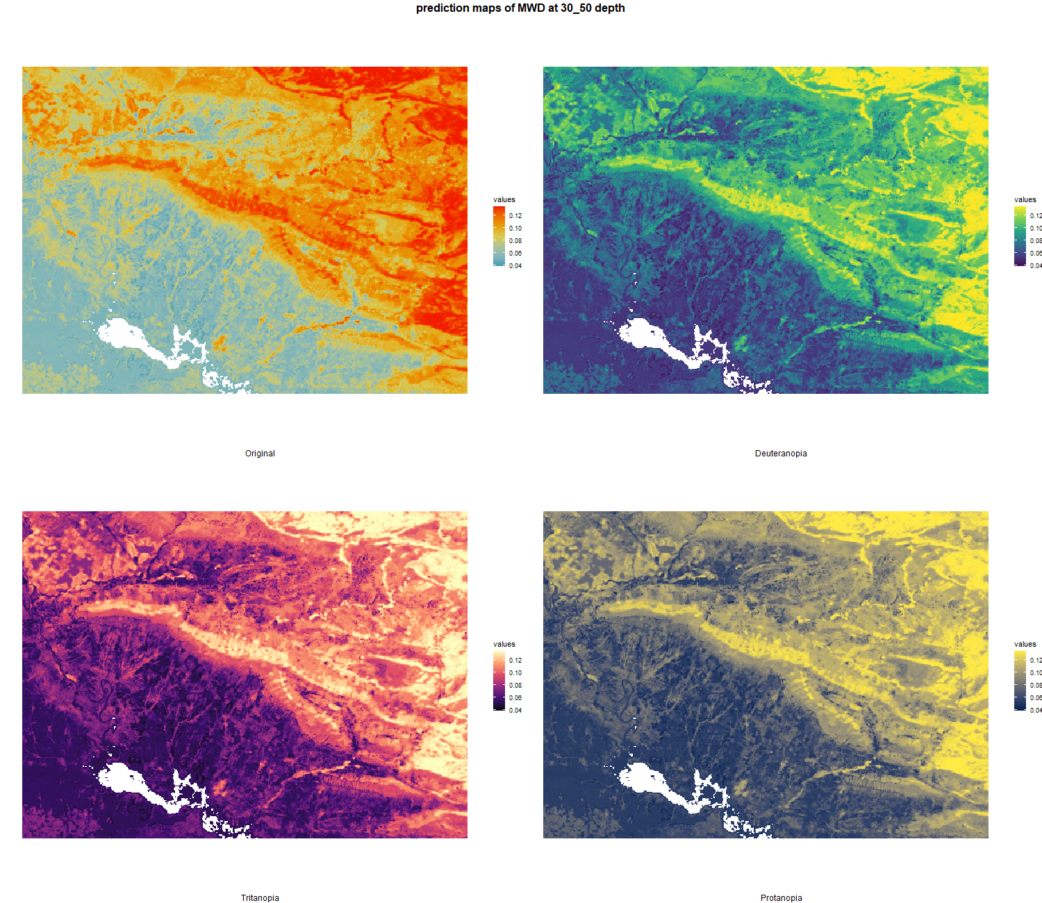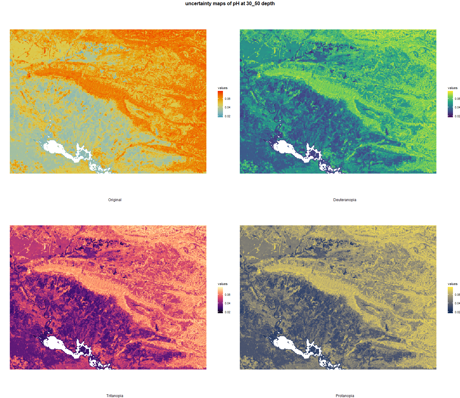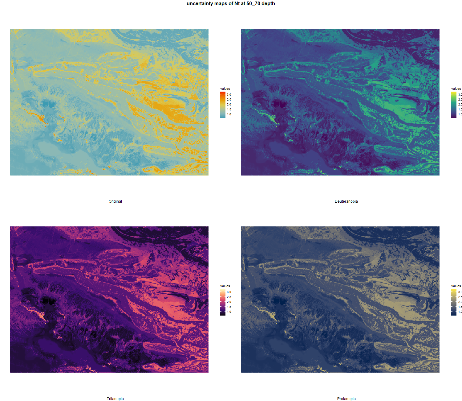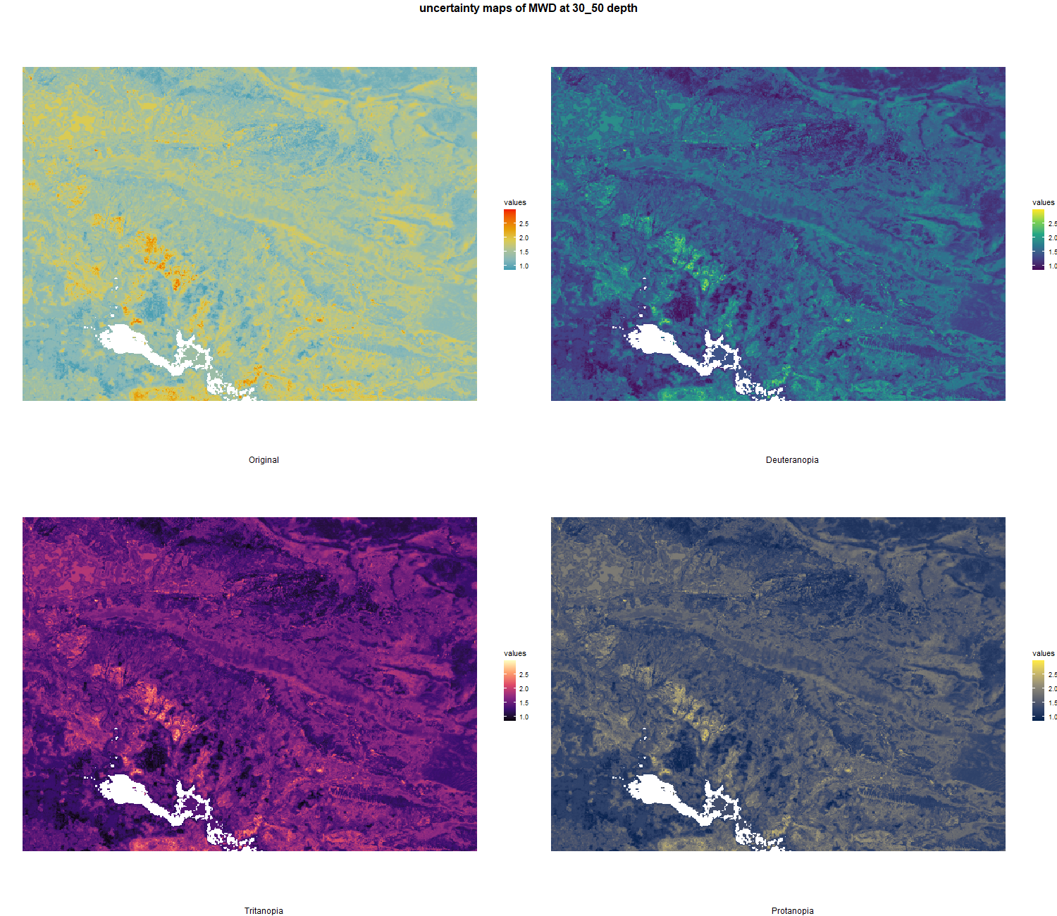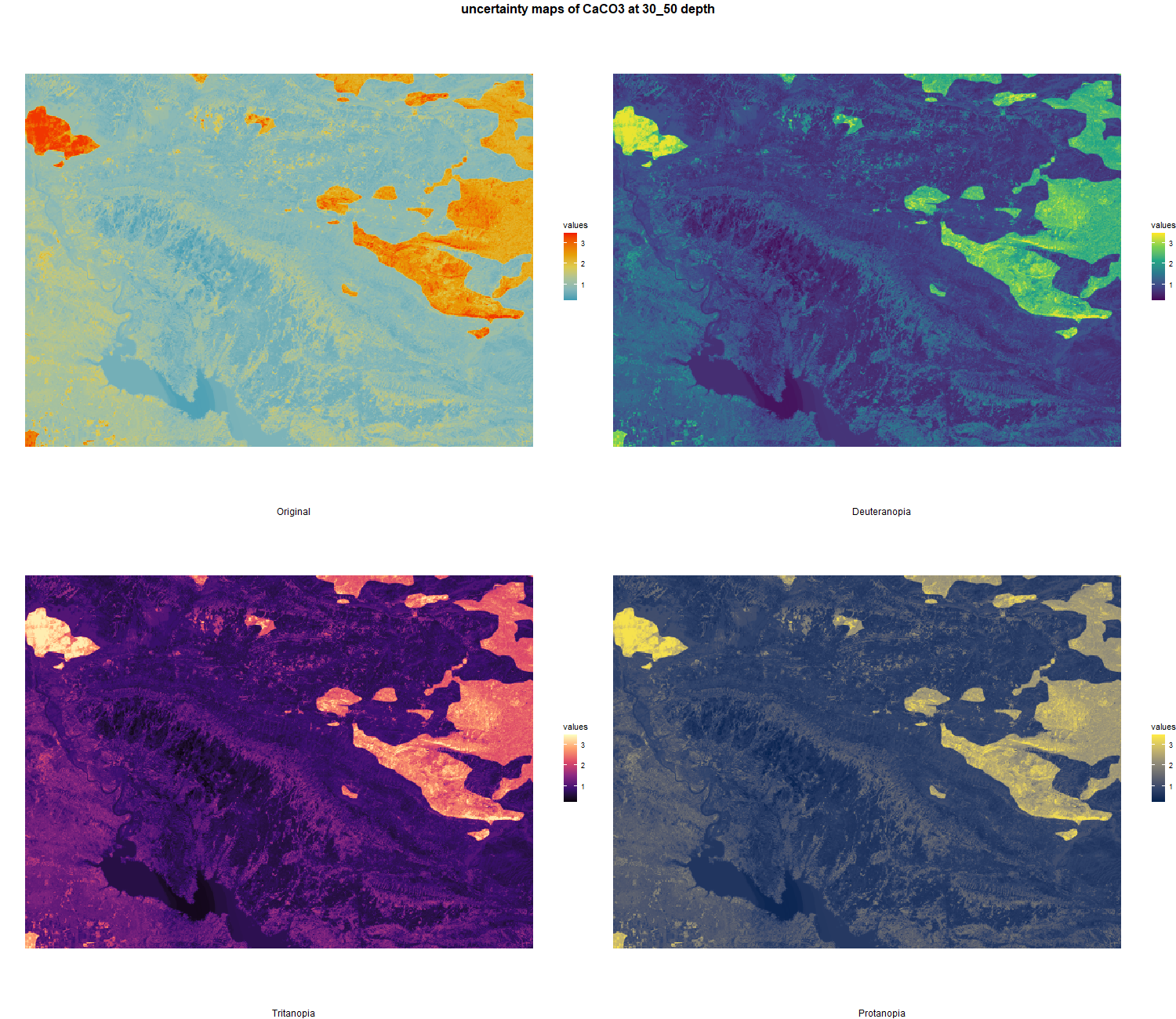 top = textGrob("Bivariate maps of predicted vs. SoilGrid values", gp = gpar(fontsize = 10, fontface = "bold")))