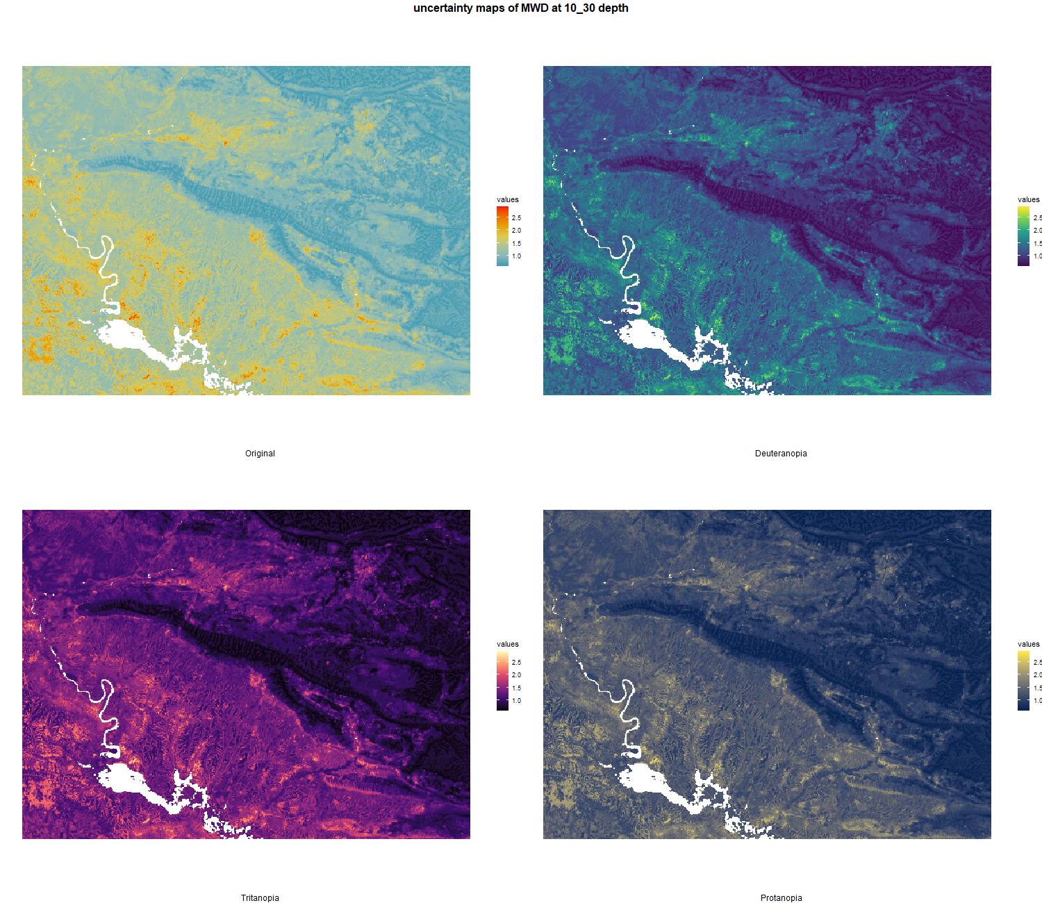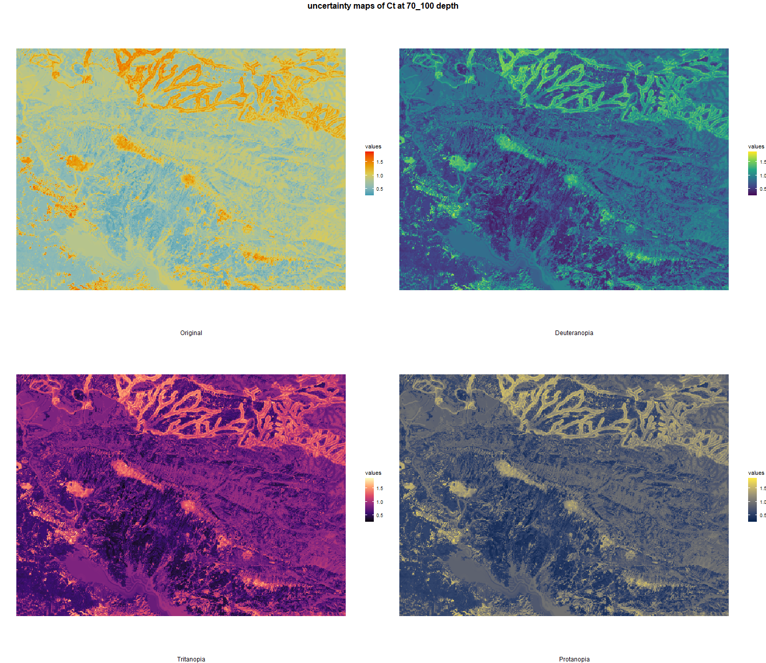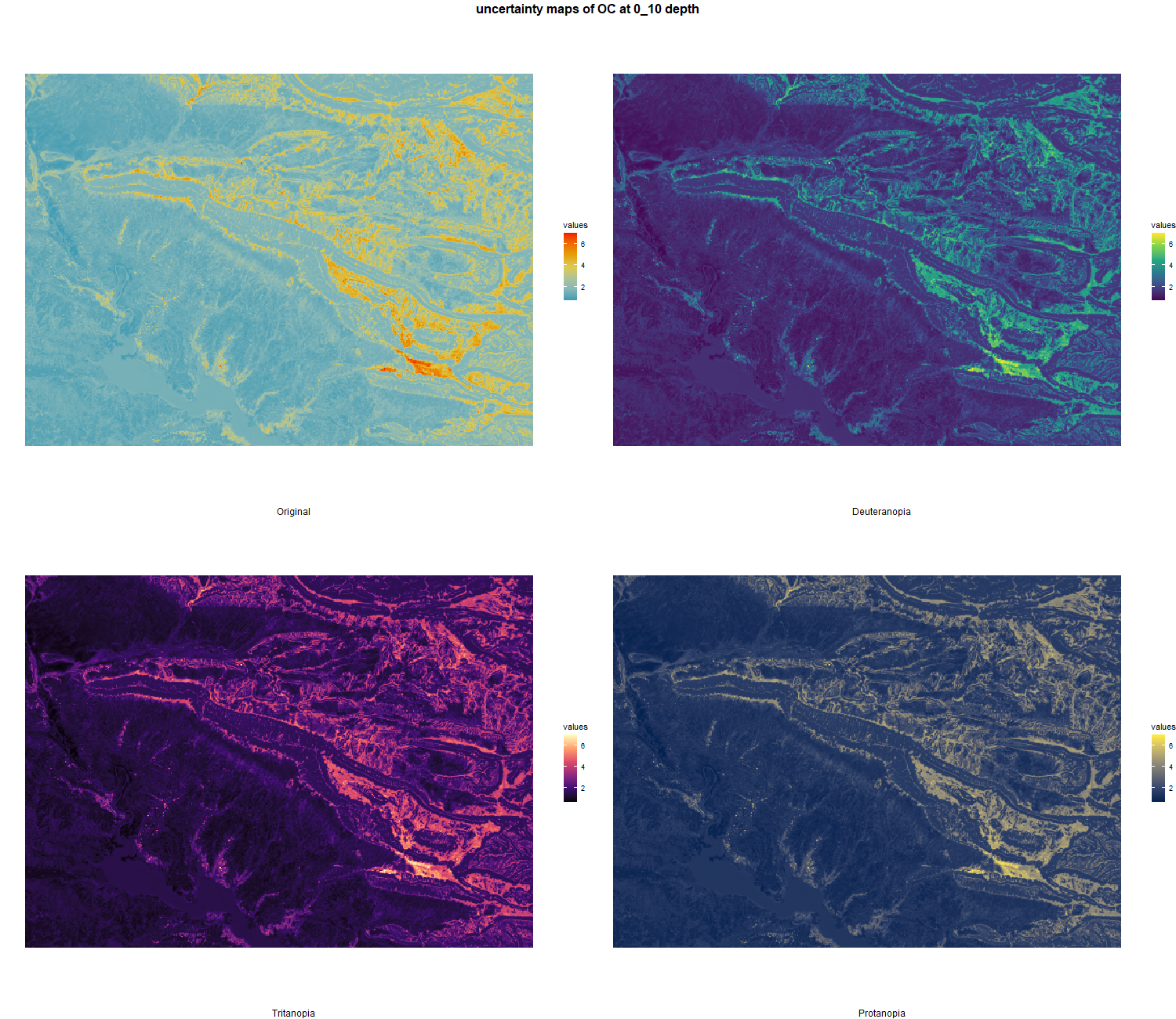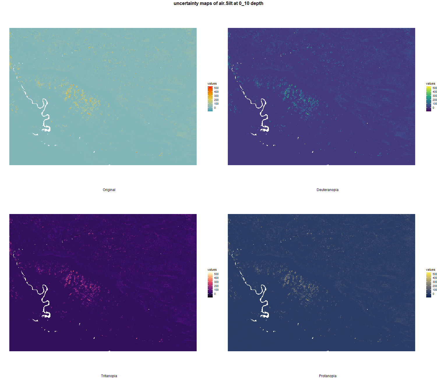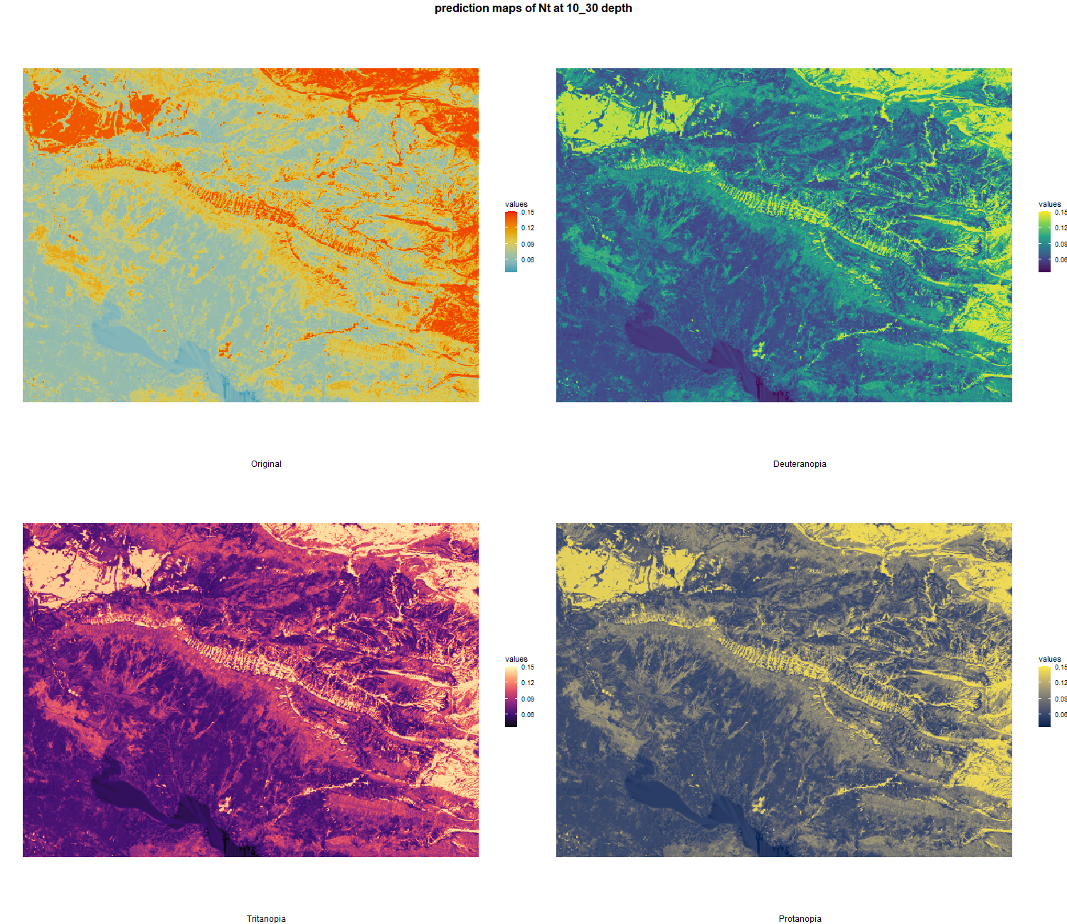 top = textGrob("Bivariate maps of predicted vs. SoilGrid values", gp = gpar(fontsize = 10, fontface = "bold")))