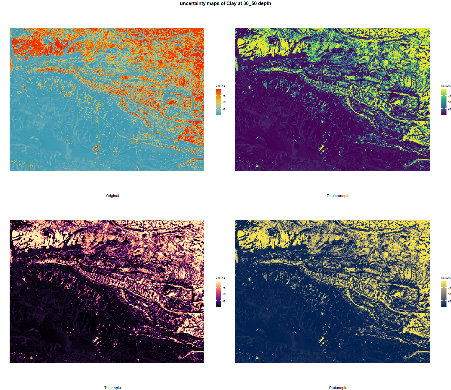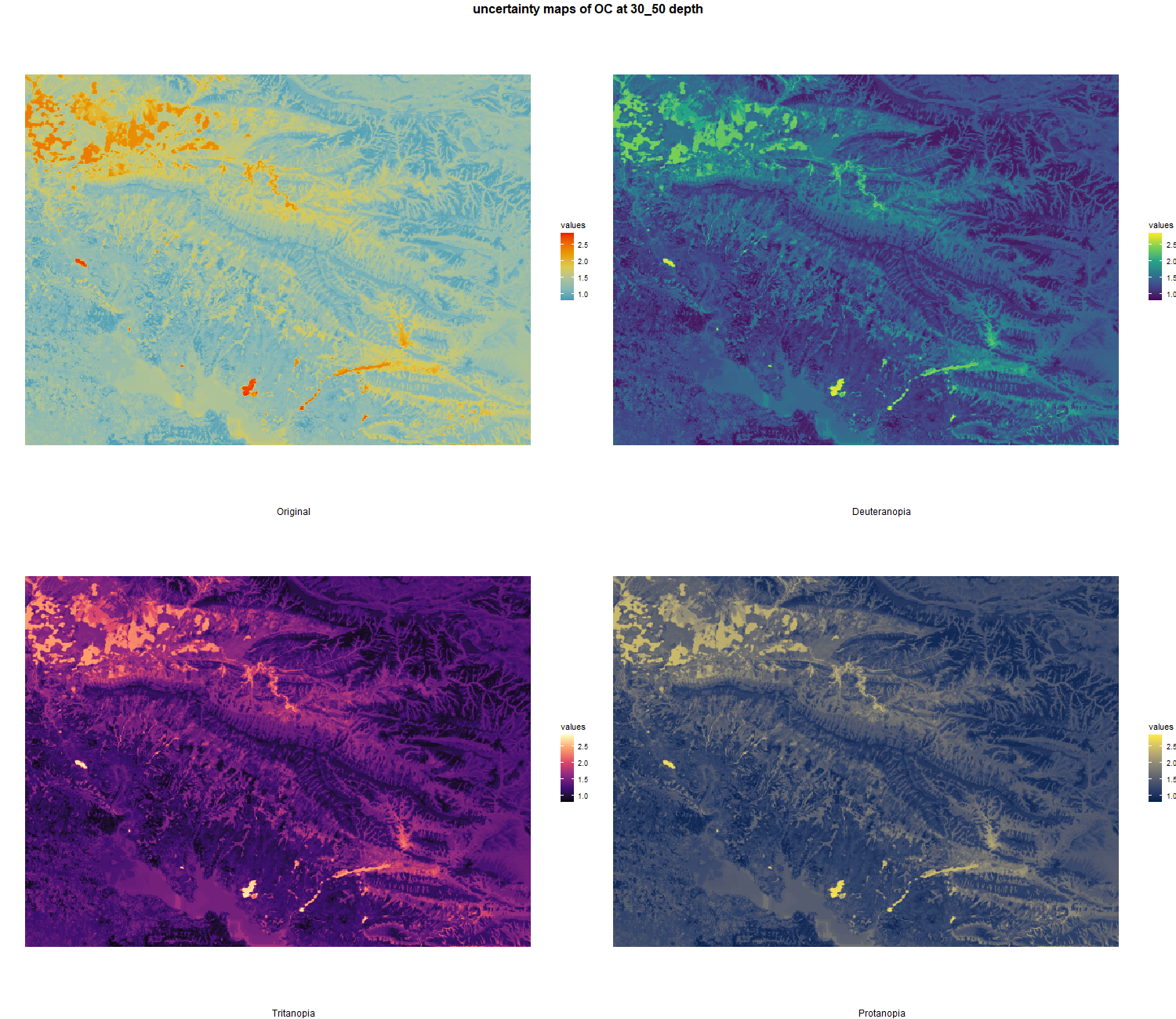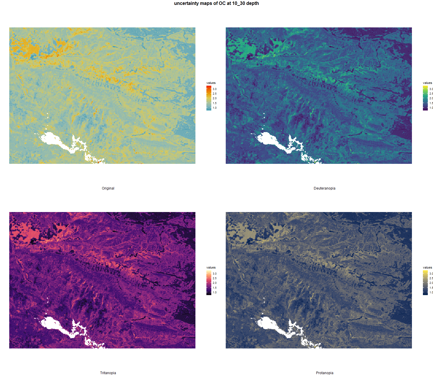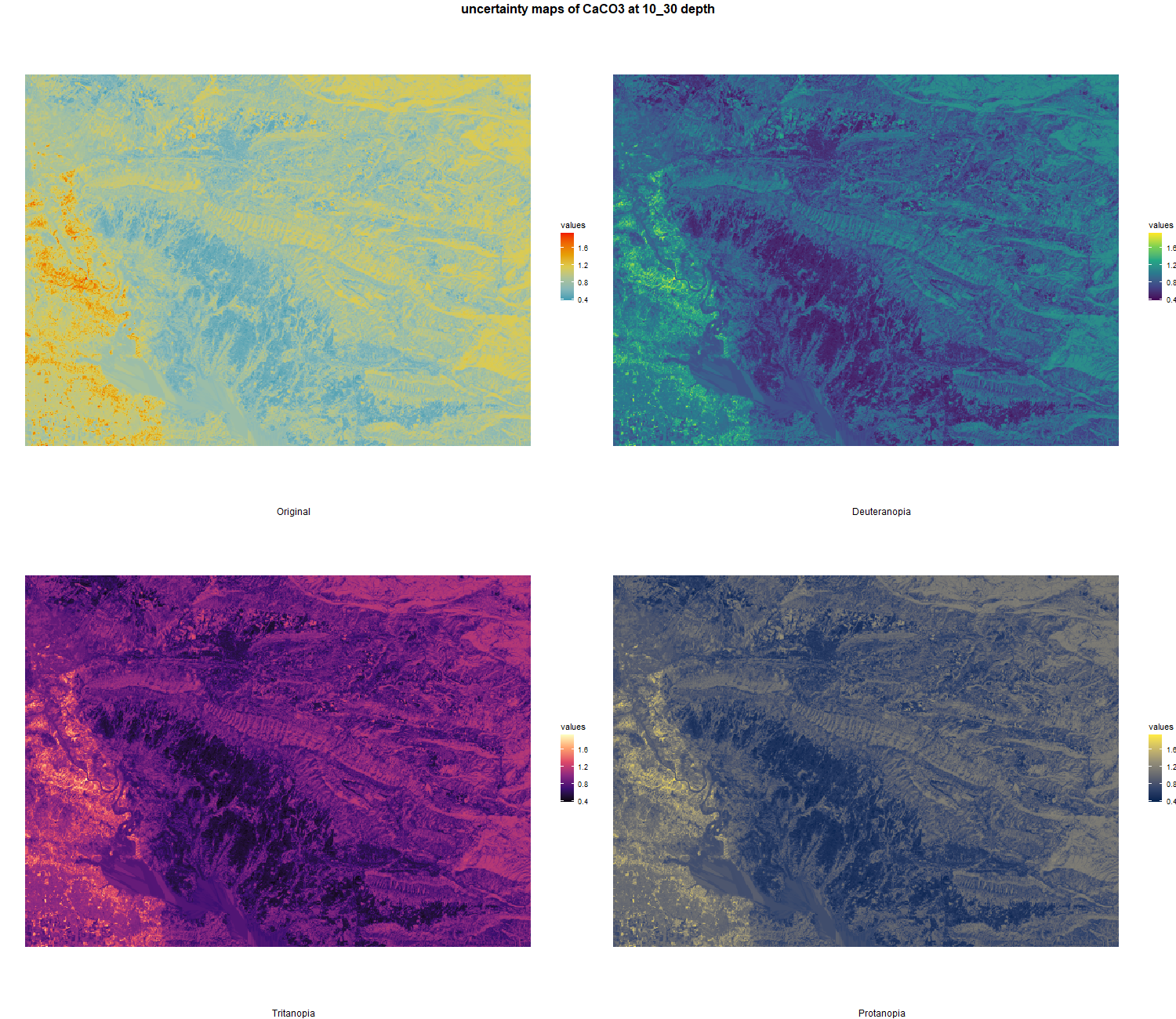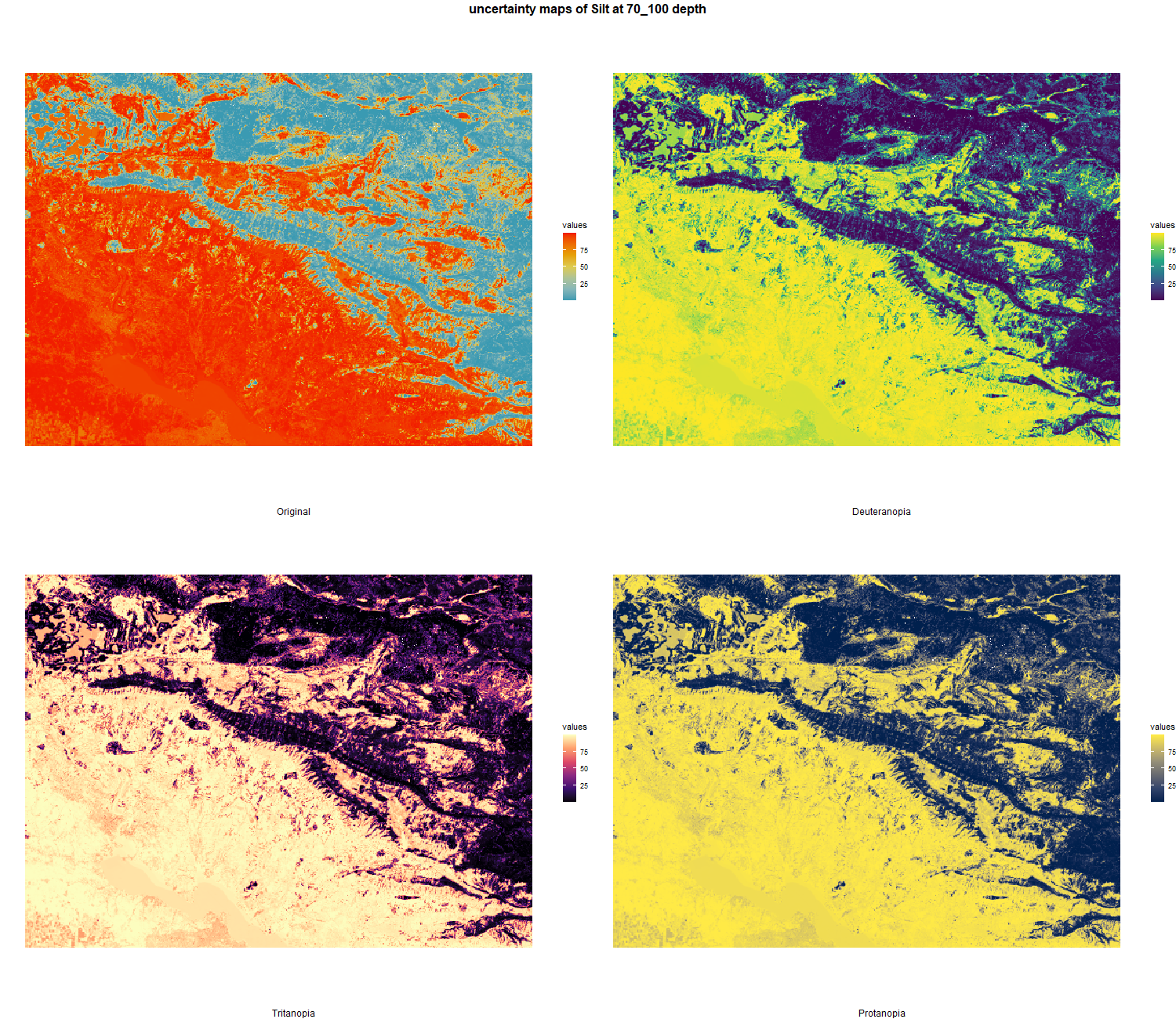 top = textGrob("Bivariate maps of predicted vs. SoilGrid values", gp = gpar(fontsize = 10, fontface = "bold")))