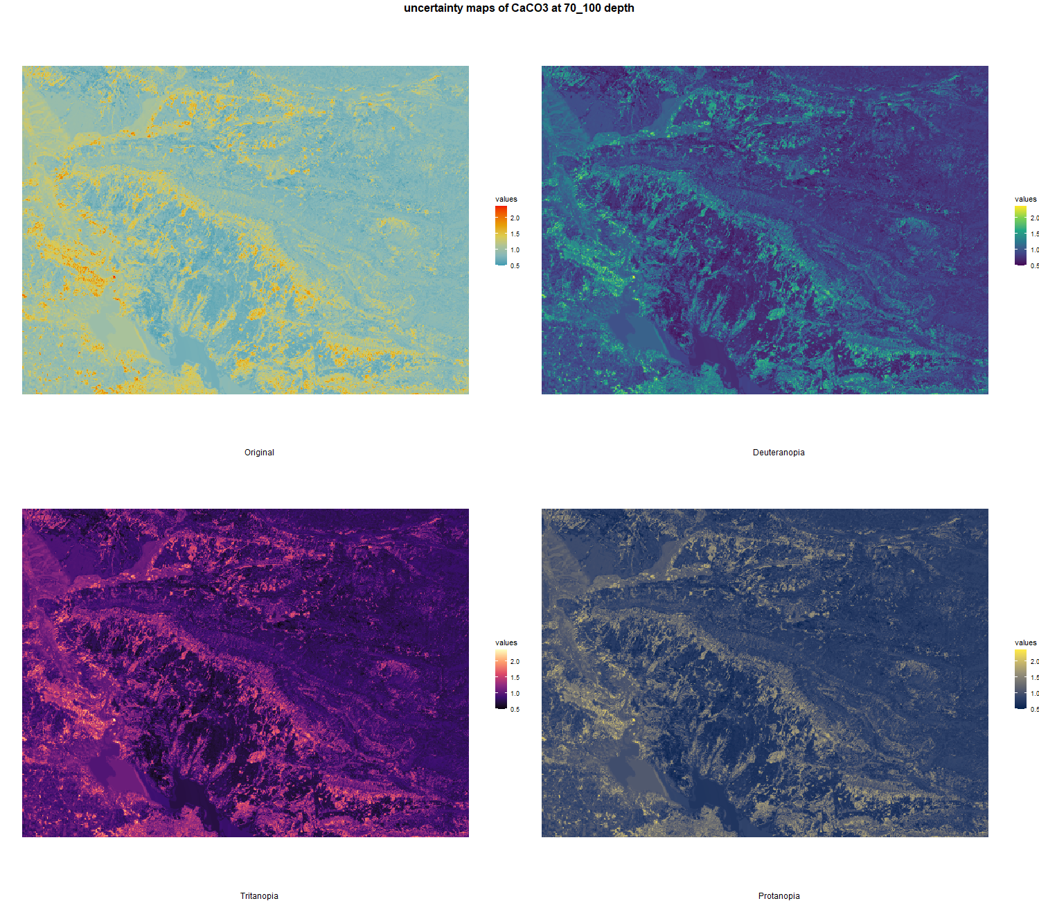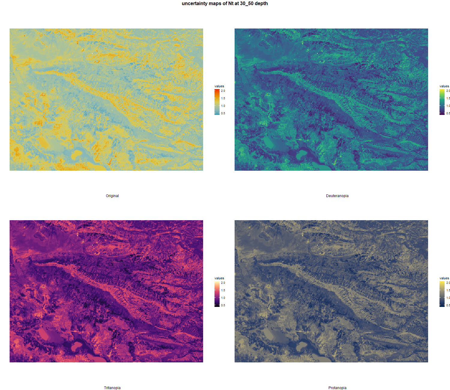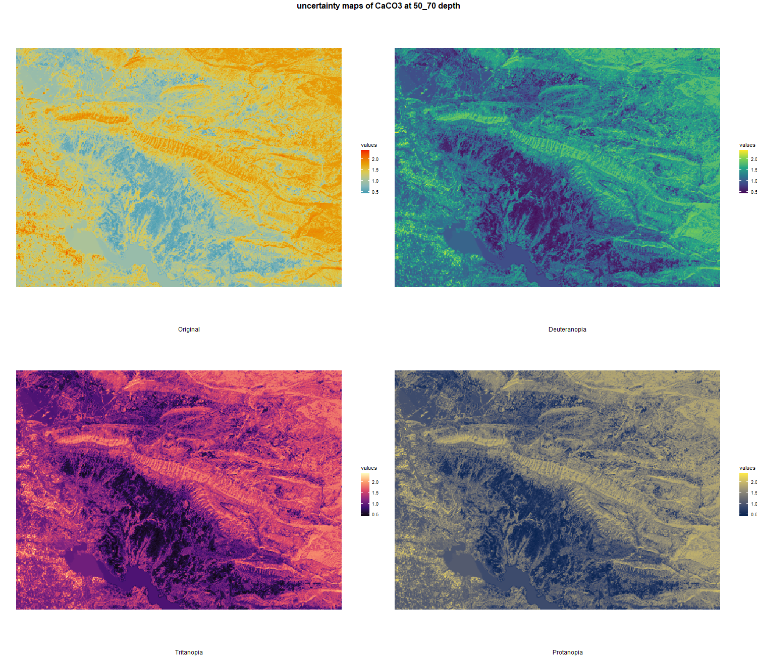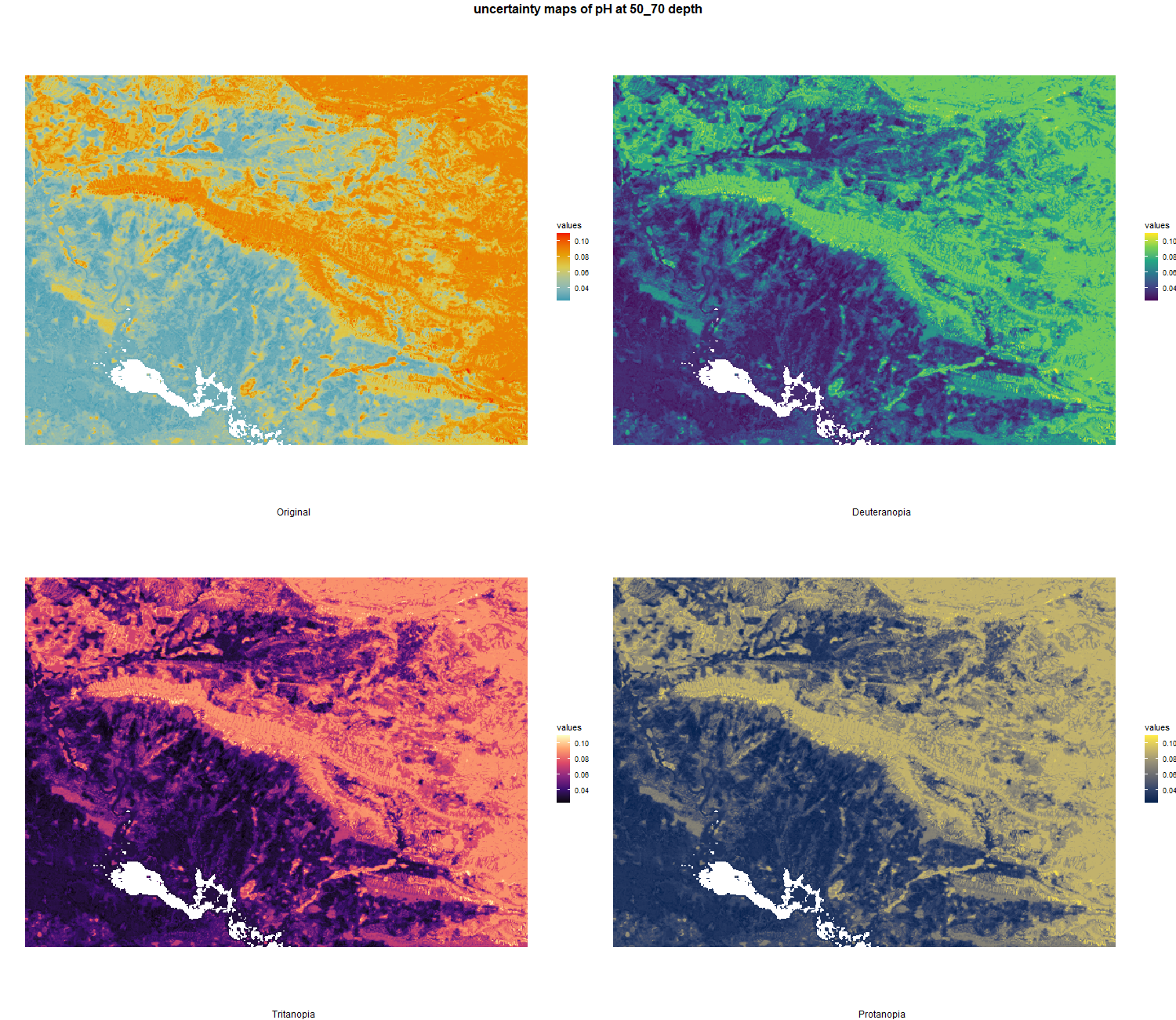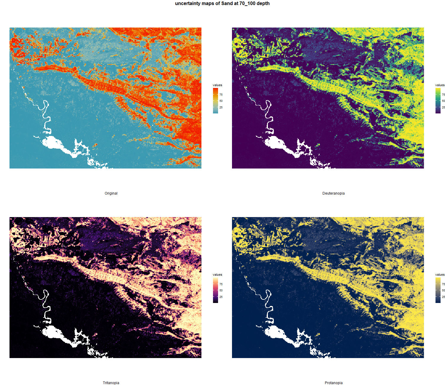 top = textGrob("Bivariate maps of predicted vs. SoilGrid values", gp = gpar(fontsize = 10, fontface = "bold")))