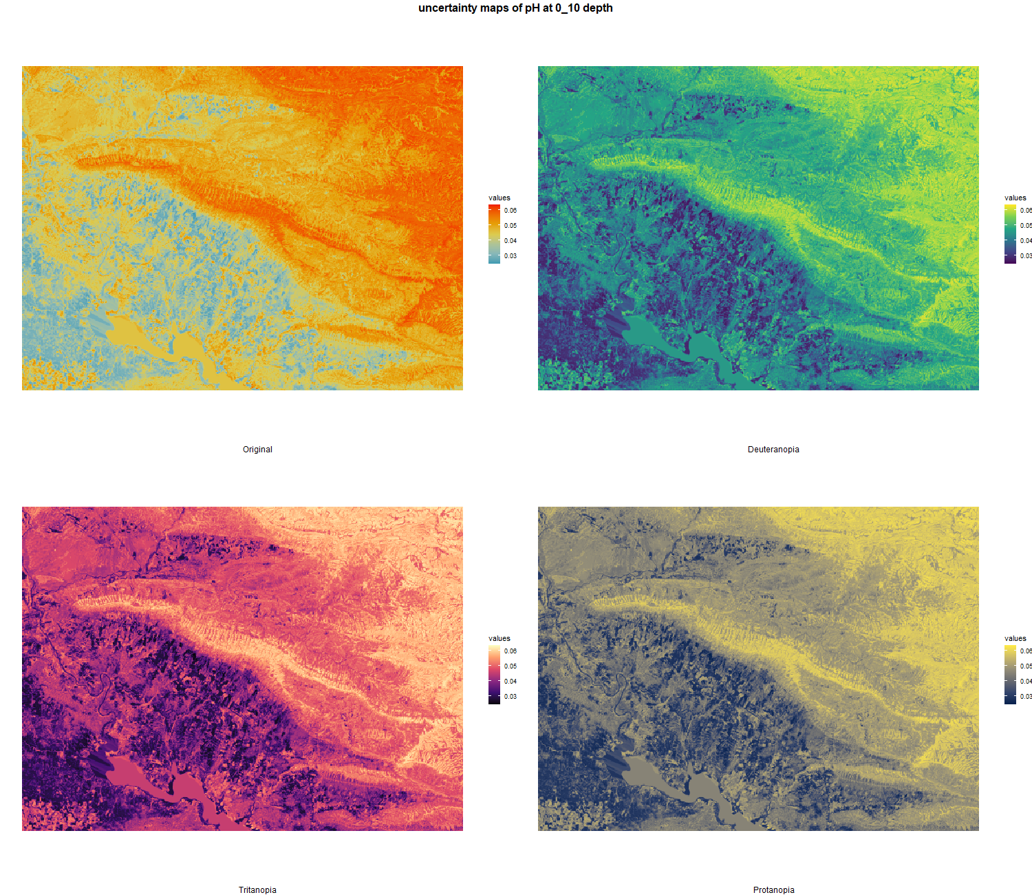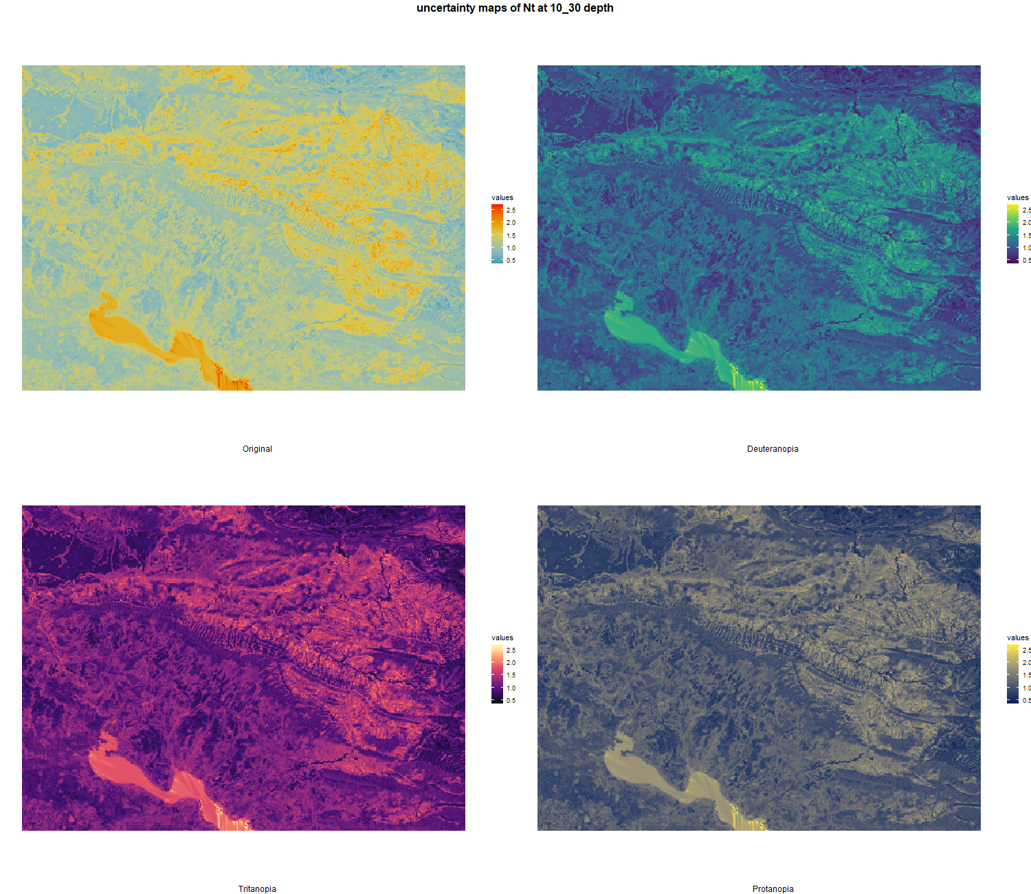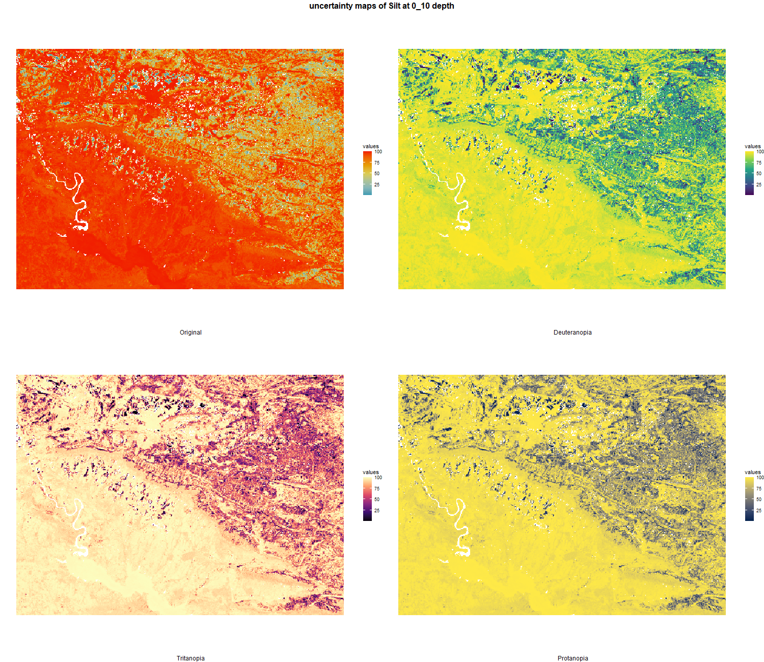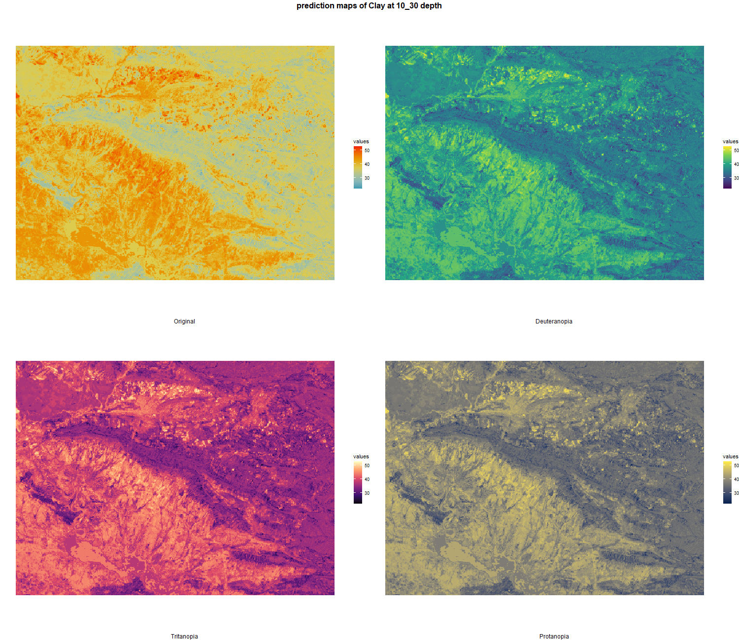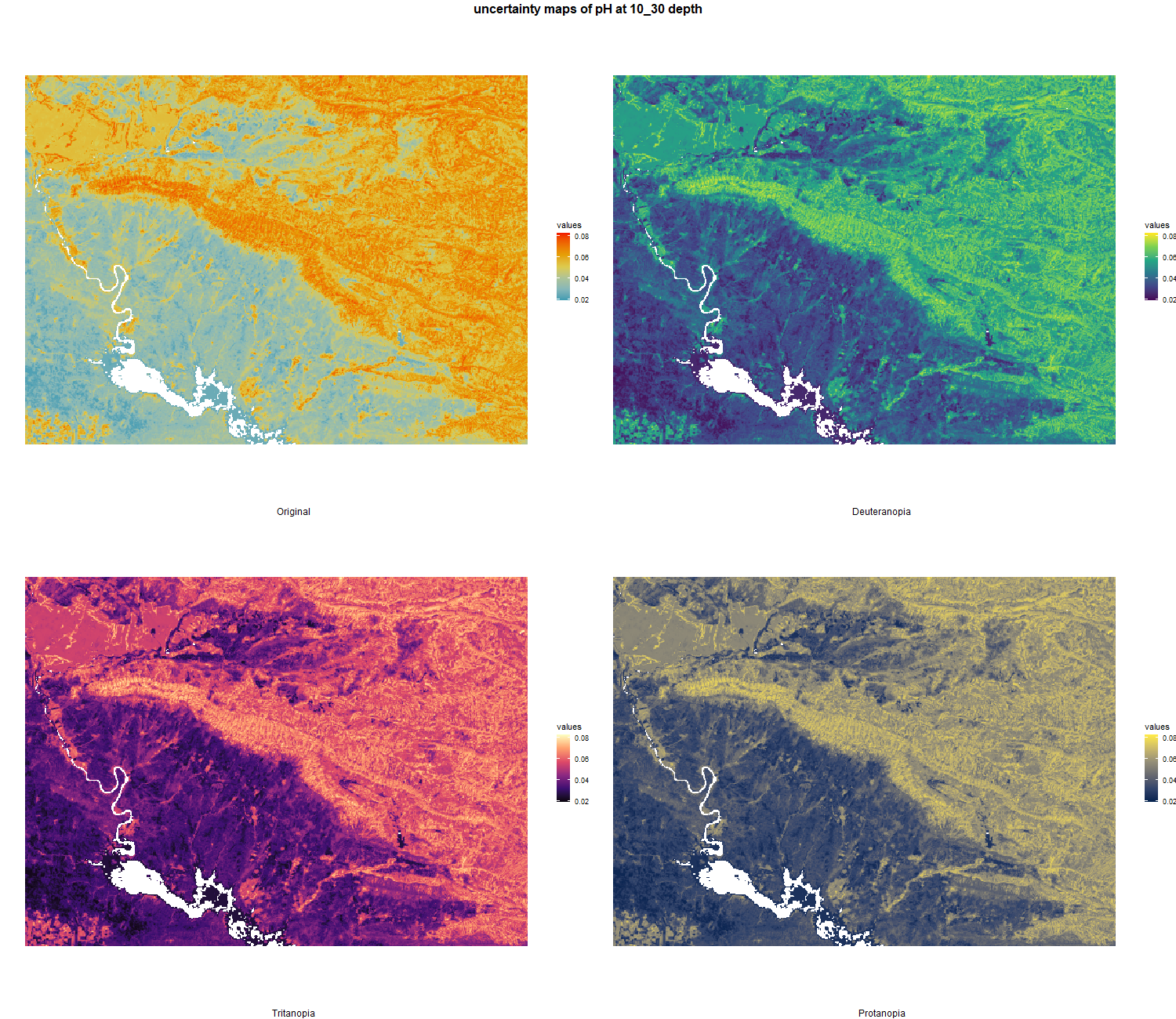 top = textGrob("Bivariate maps of predicted vs. SoilGrid values", gp = gpar(fontsize = 10, fontface = "bold")))