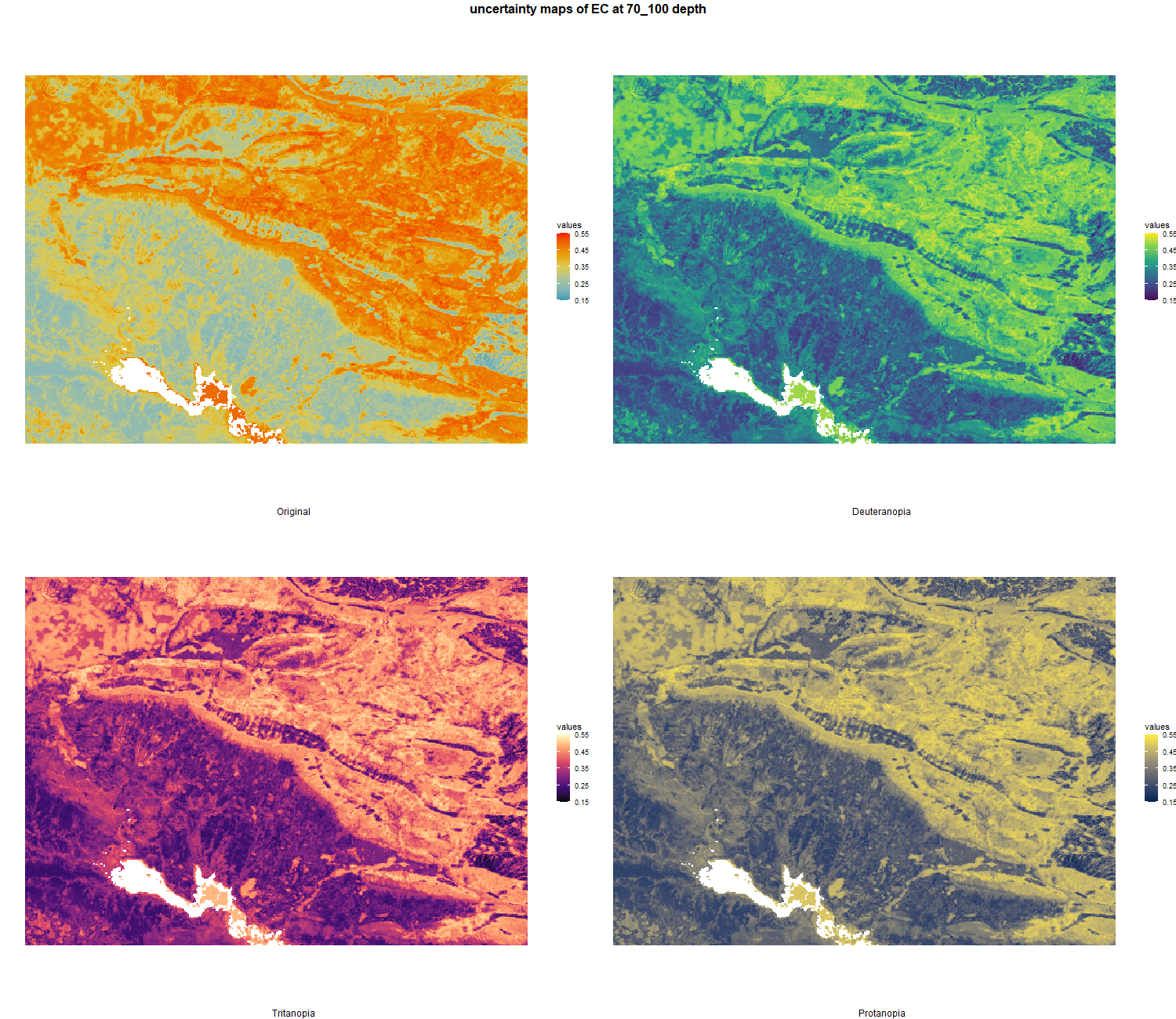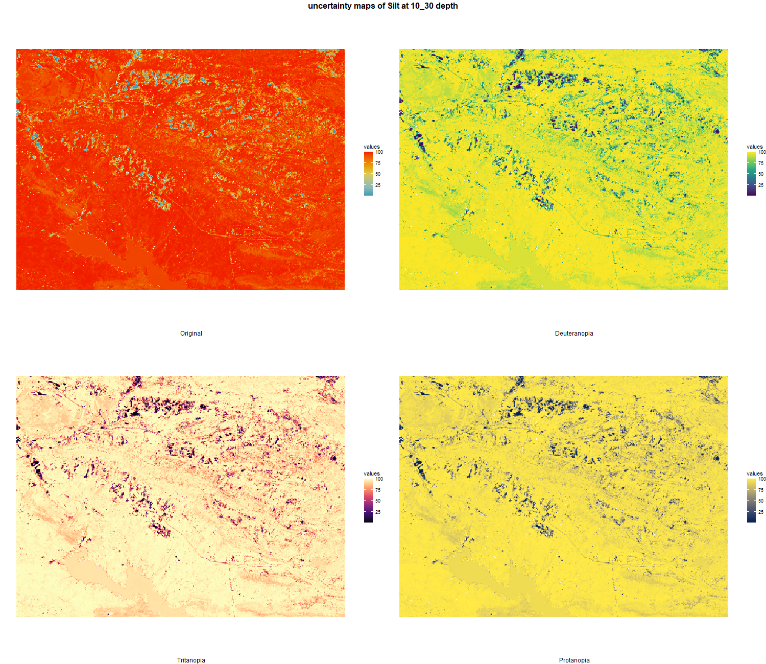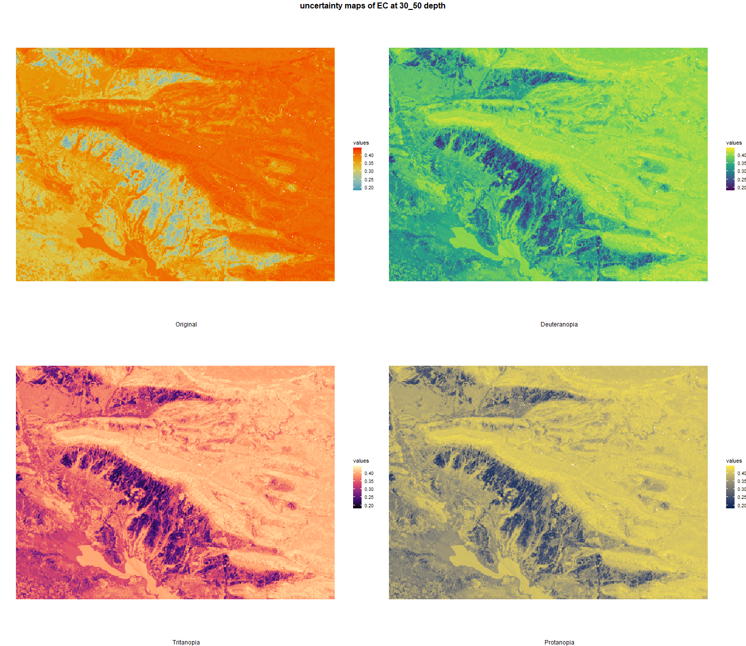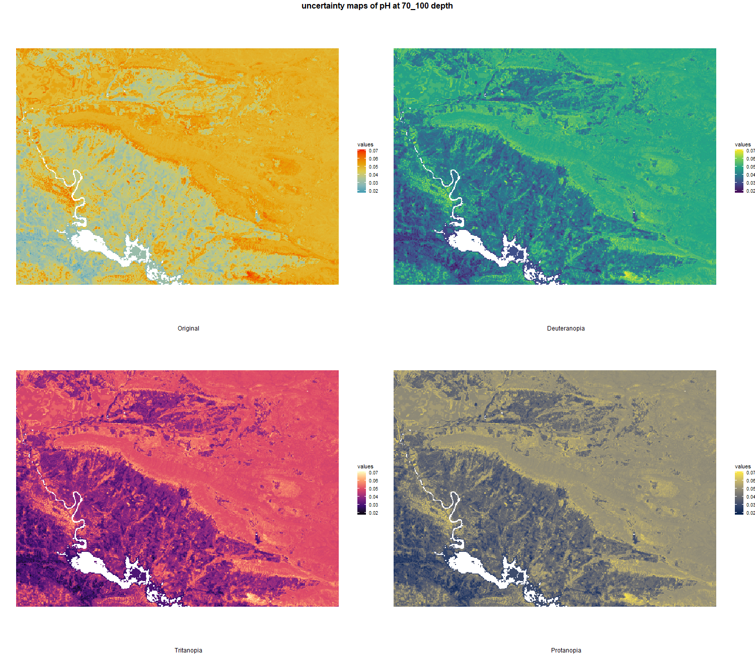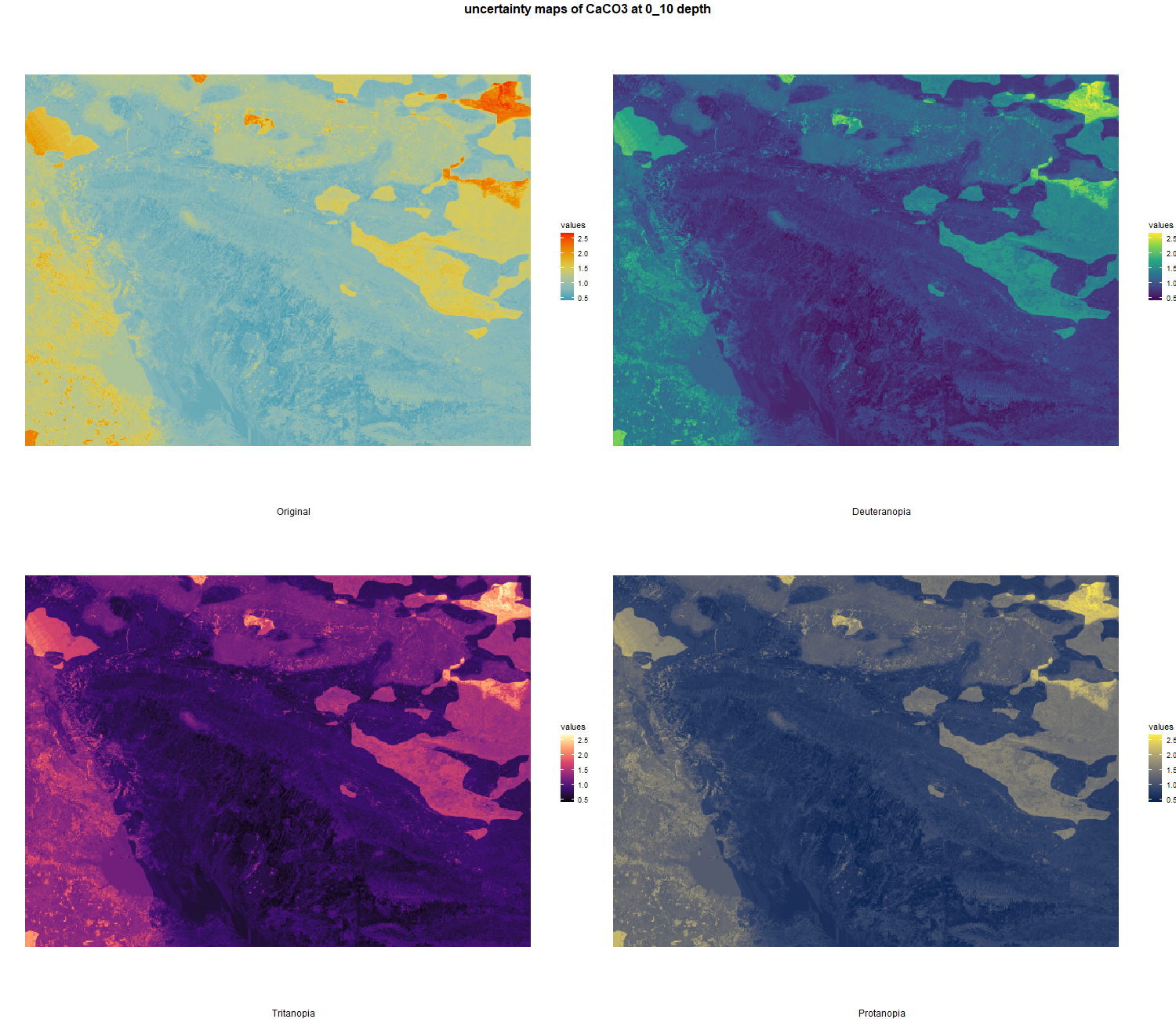 top = textGrob("Bivariate maps of predicted vs. SoilGrid values", gp = gpar(fontsize = 10, fontface = "bold")))