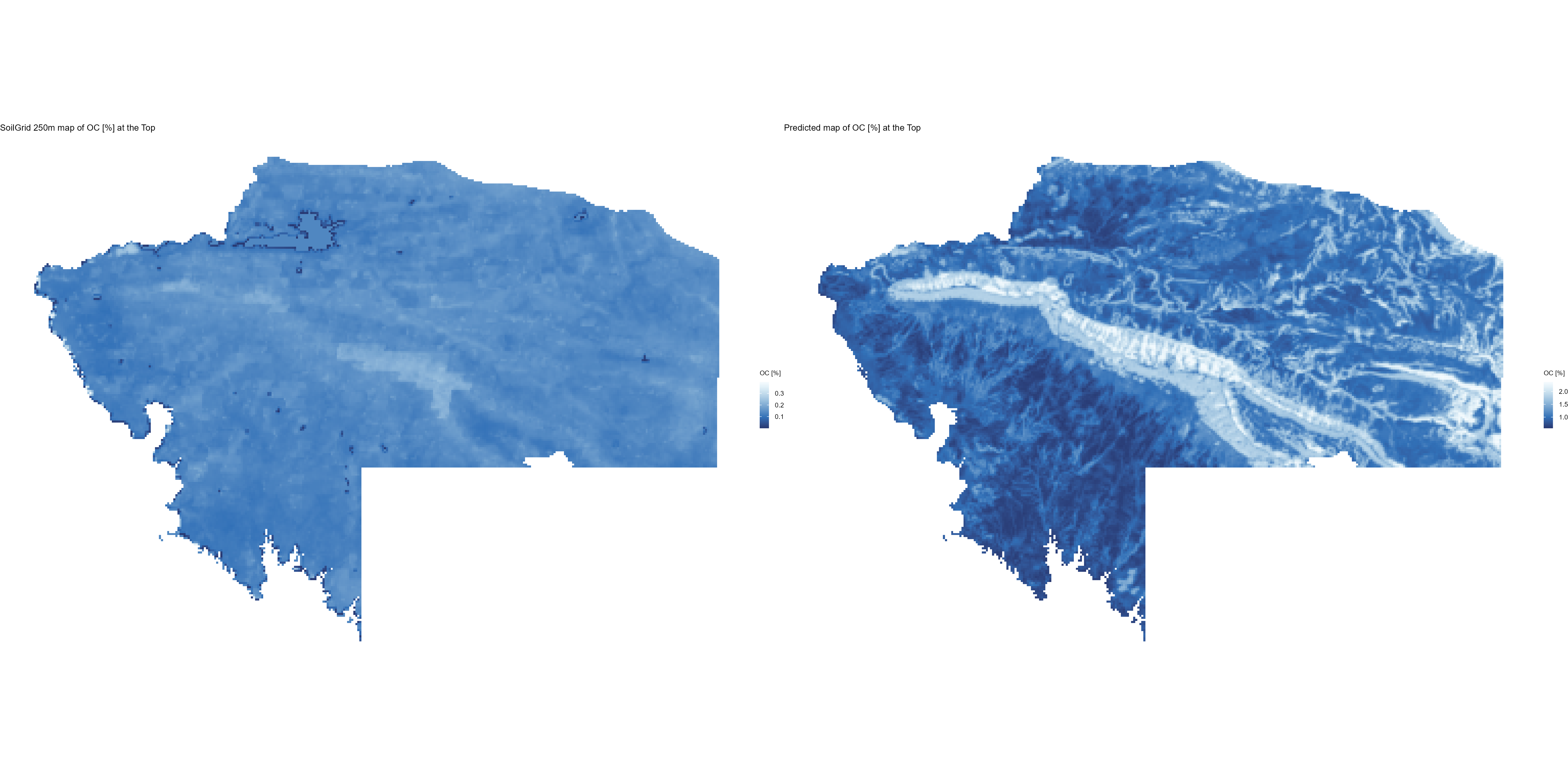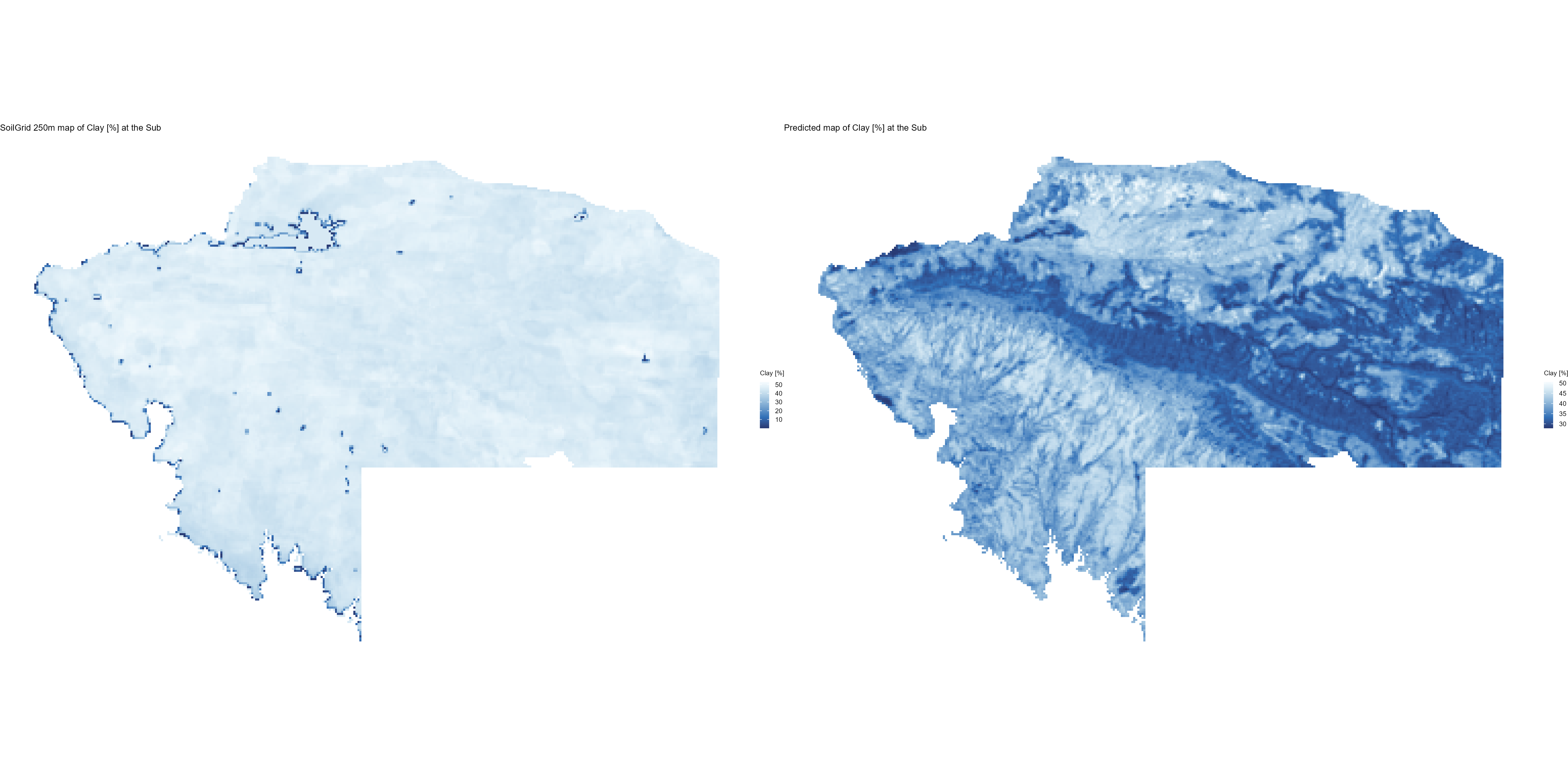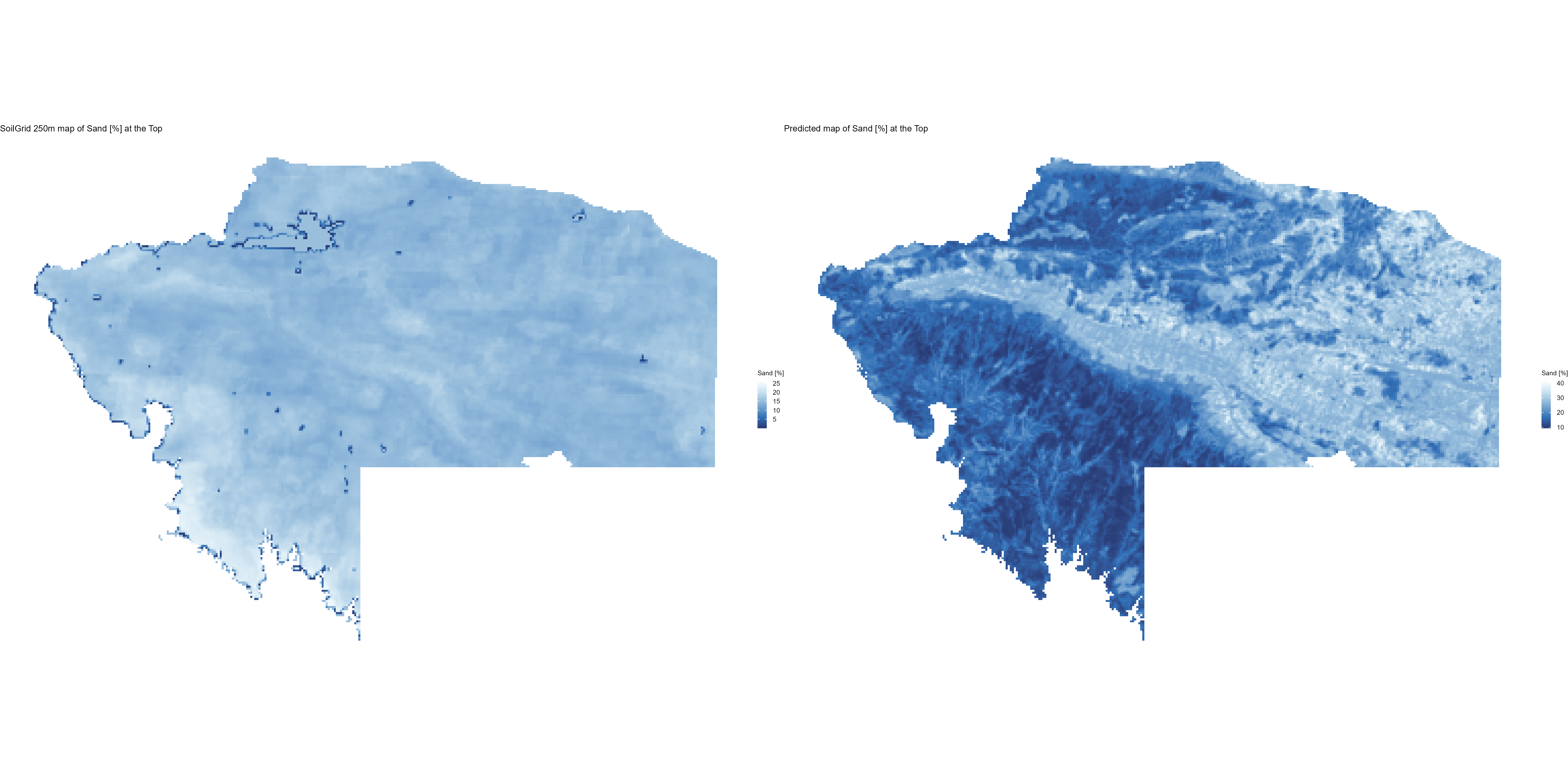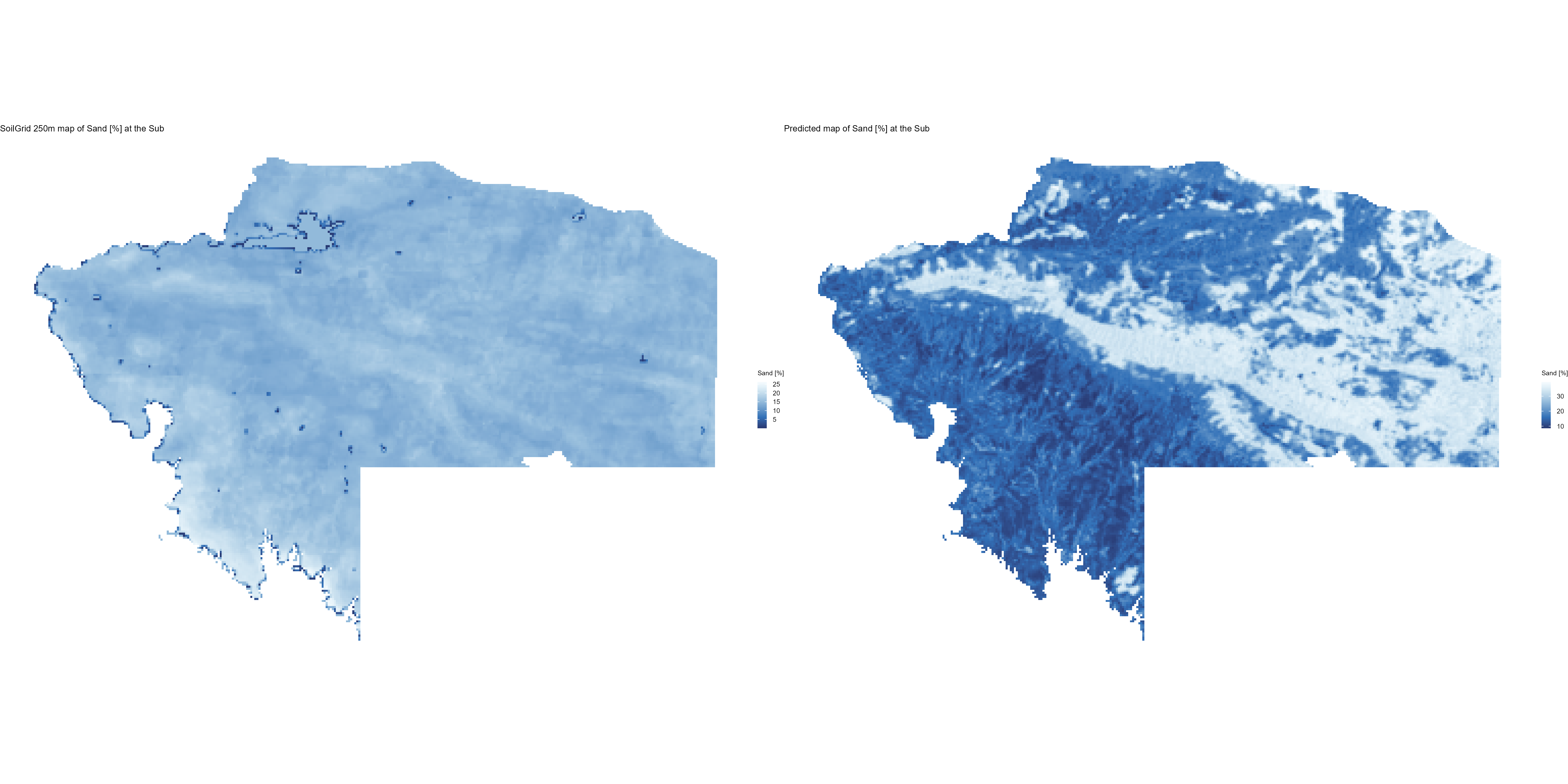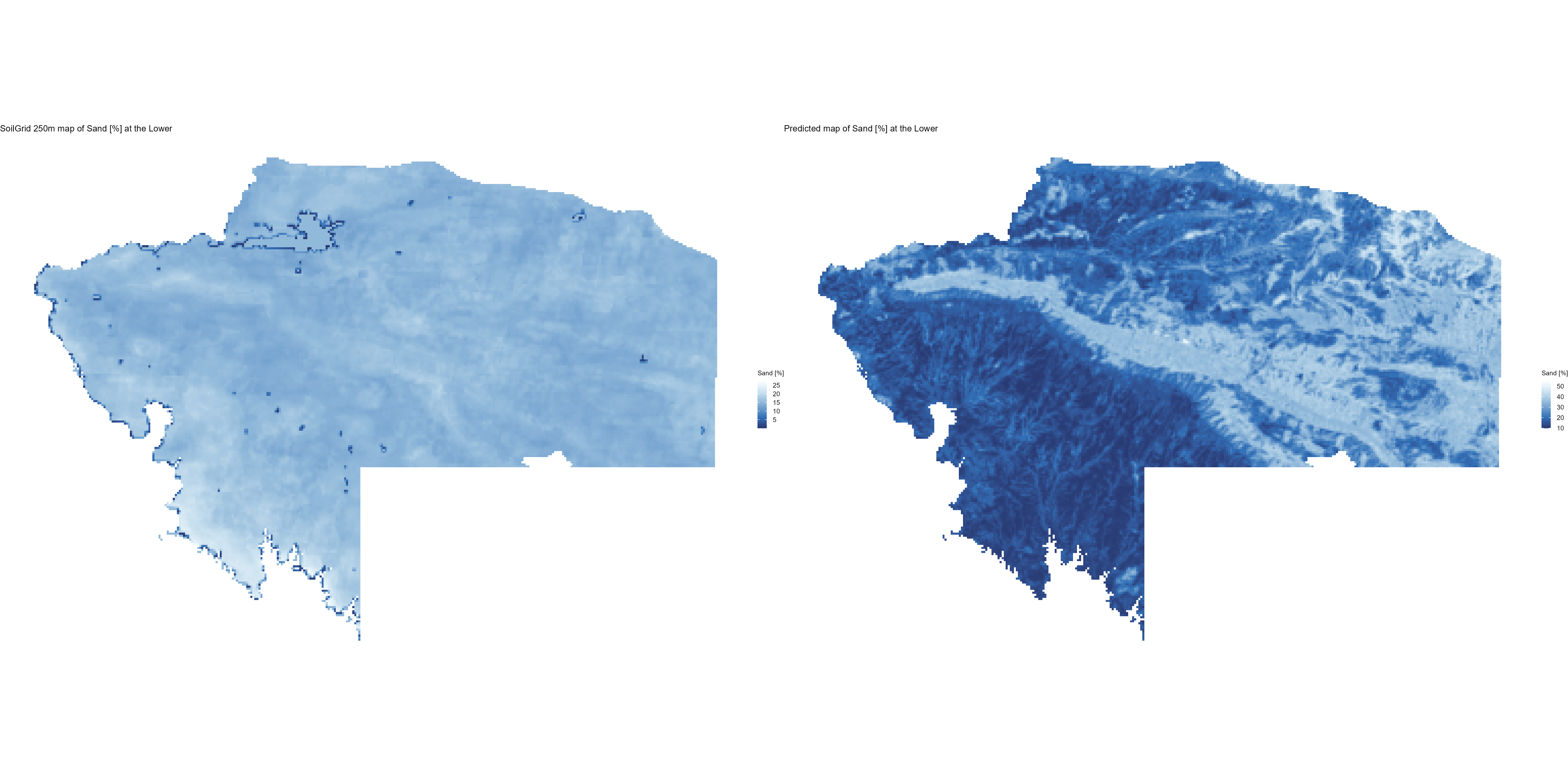 compared_map <- merge(Soil_info[[paste0(depth,"_SoilGrid")]], Soil_info[[paste0(depth,"_pred")]][,c(1:3,5,7,10:12)], by =c("x", "y"))
