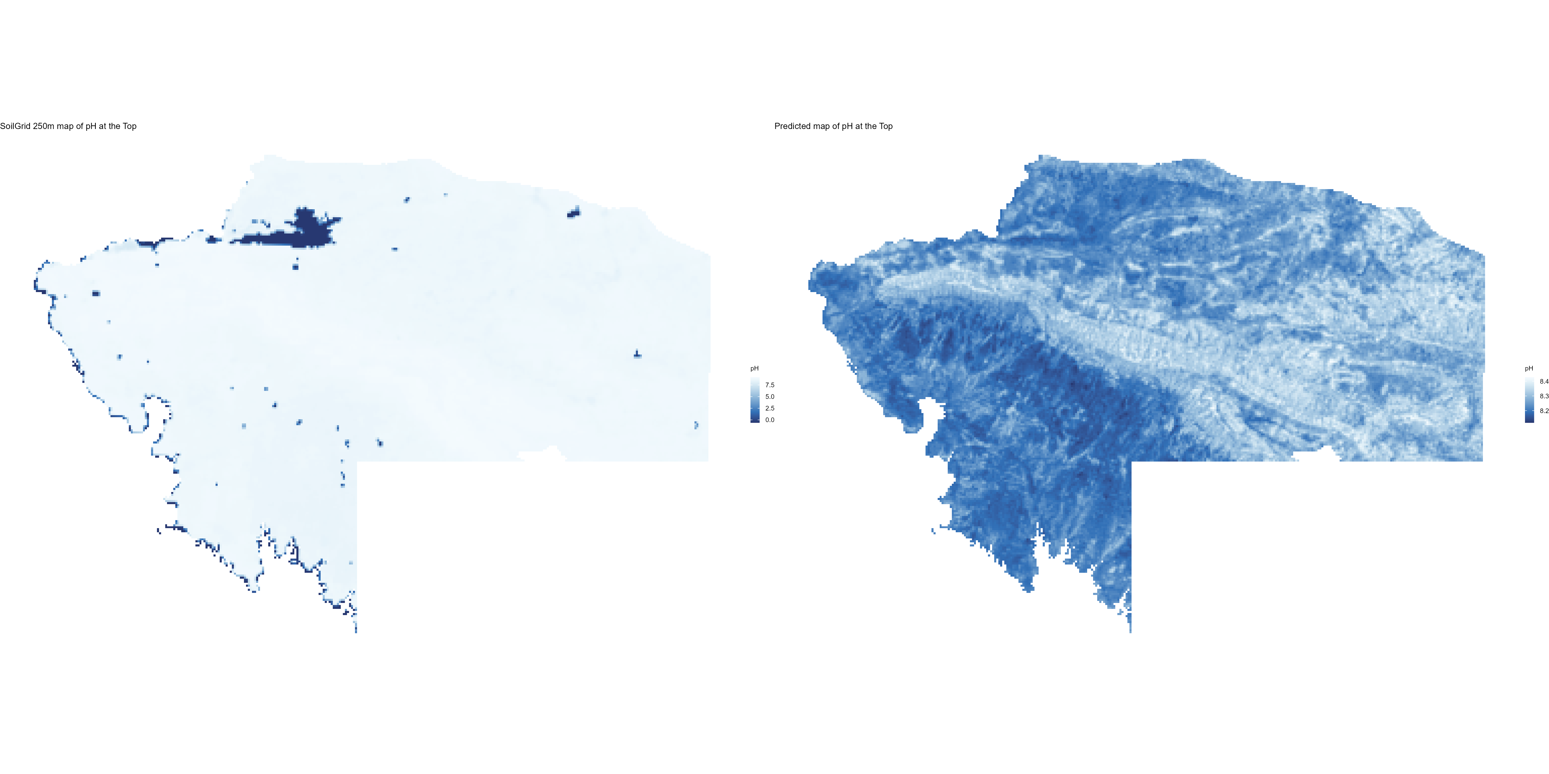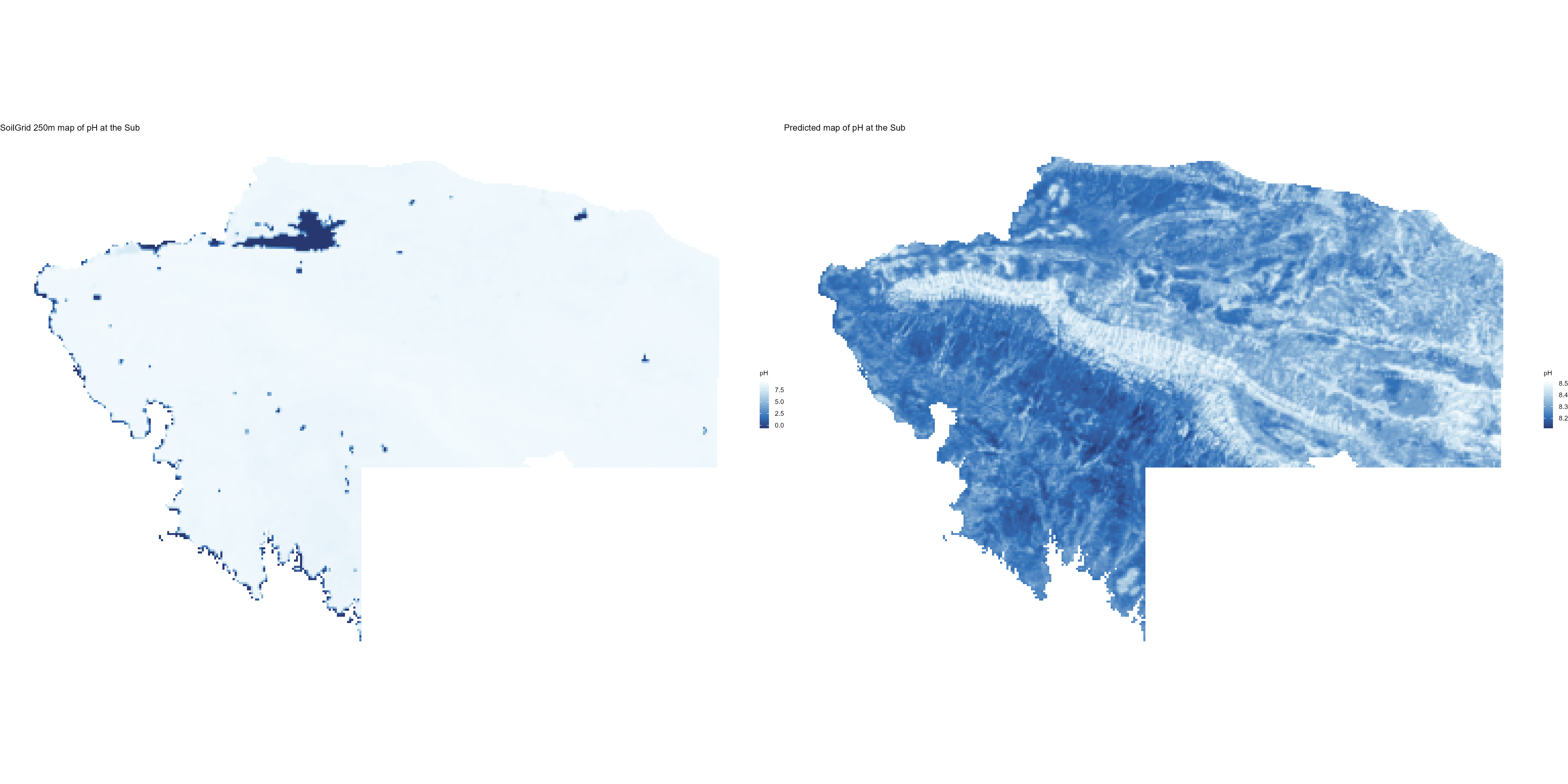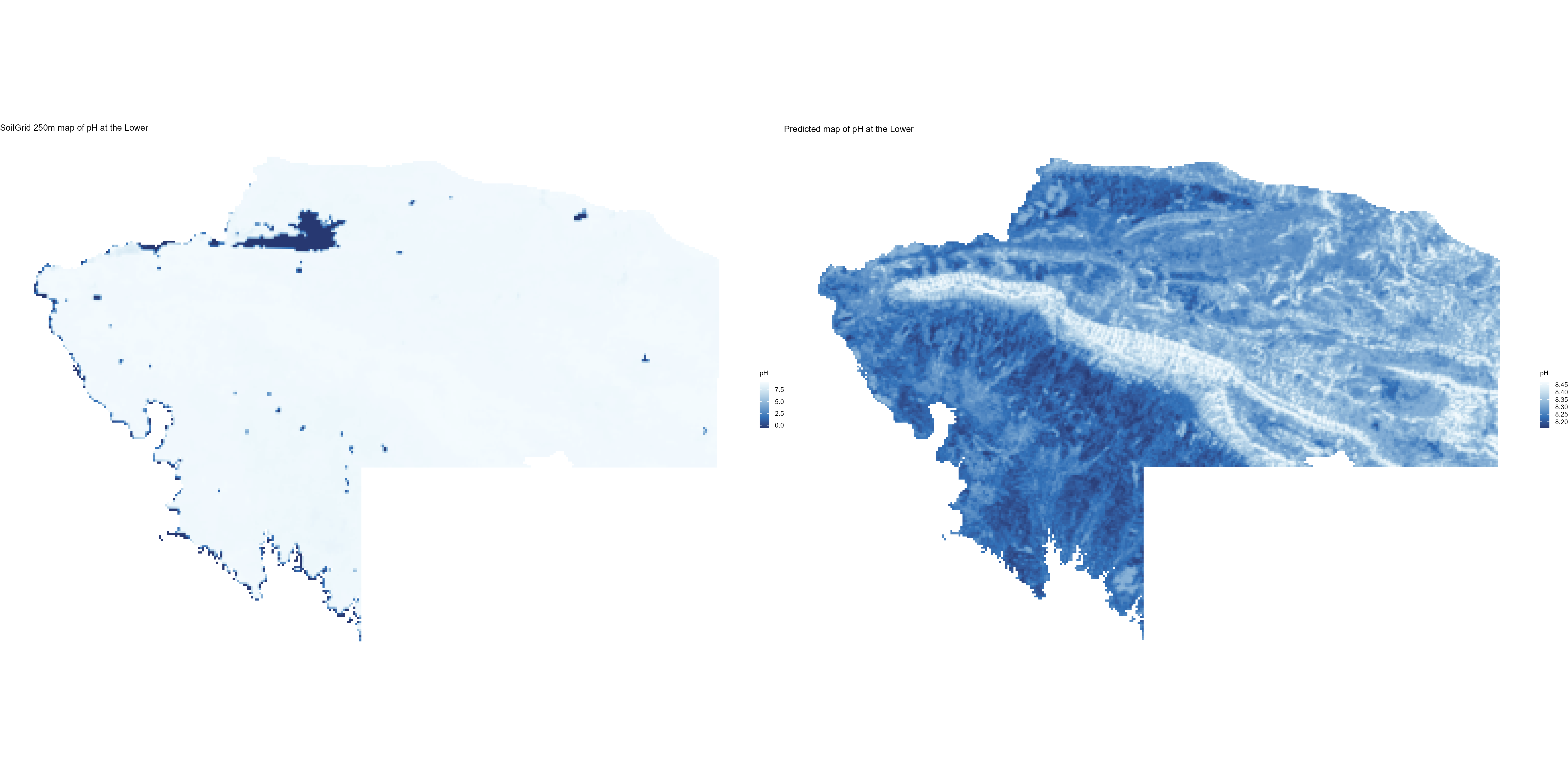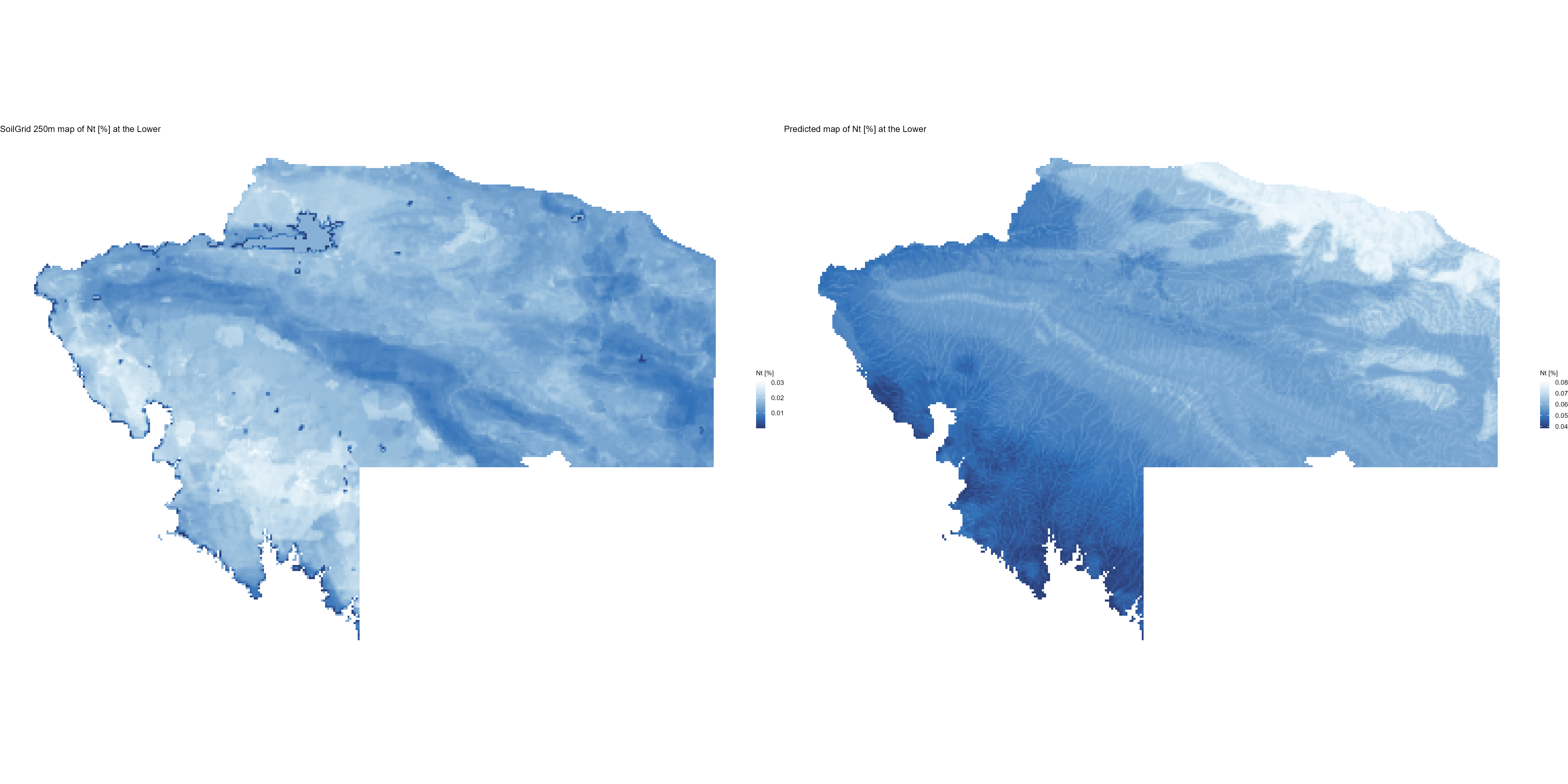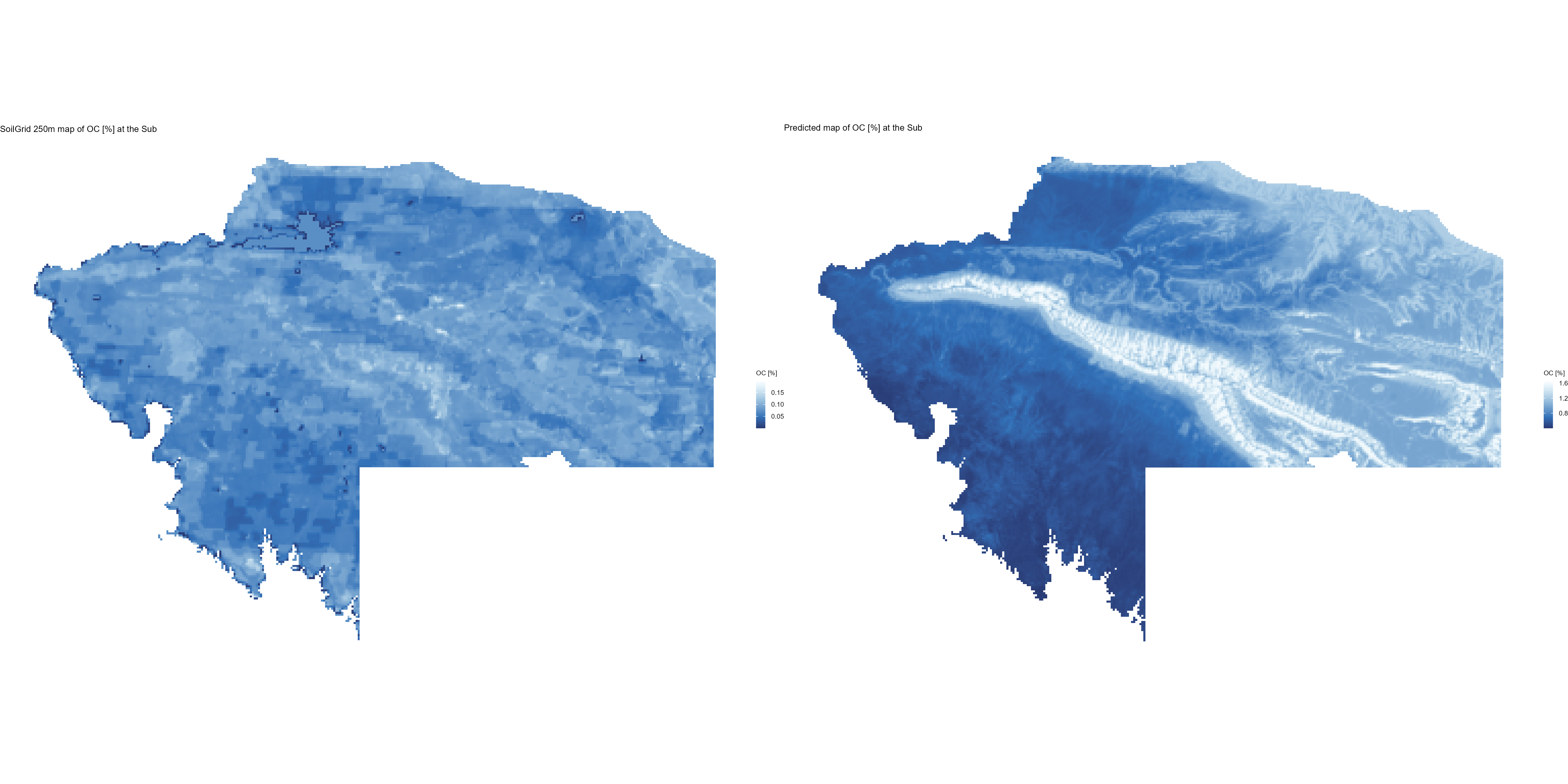 compared_map <- merge(Soil_info[[paste0(depth,"_SoilGrid")]], Soil_info[[paste0(depth,"_pred")]][,c(1:3,5,7,10:12)], by =c("x", "y"))